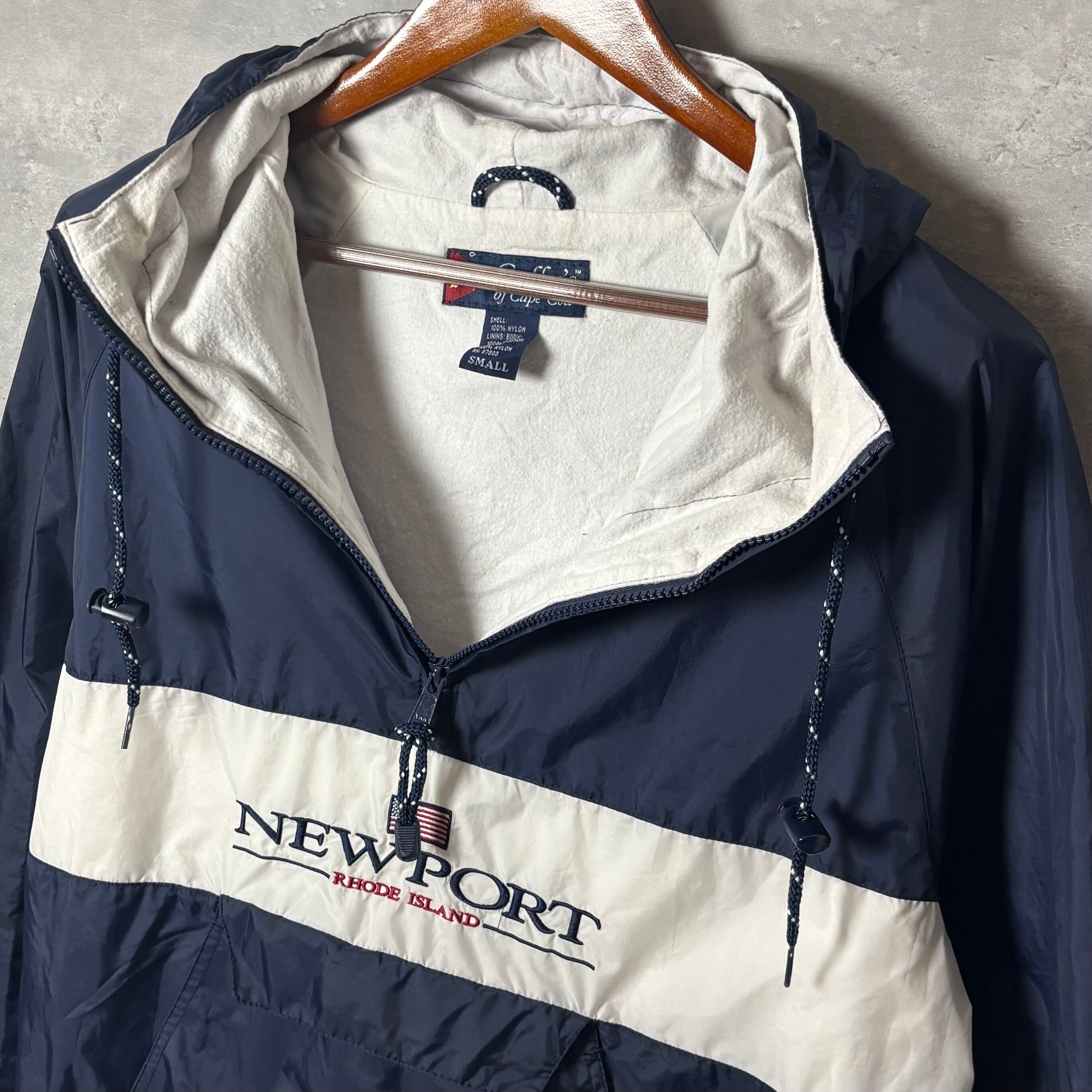 90年代らしさ満点のCuffy's製アノラック。アメリカ東海岸の観光地「NEWPORT RHODE ISLAND」の刺繍が施された好デザイン。裏地はパイル素材で着心地良く、Tシャツの上からさっと羽織れるライトアウターとして重宝します。プレッピーやアメカジ、アウトドア系ファッションとも好相性の1着です。