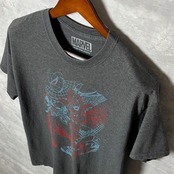 スパイダーマンのグラフィックが前面にデザインされたMARVEL公式Tシャツです。古着らしい風合いのあるチャコールグレーのボディに、ブルーとレッドのプリントが映えるデザイン。カジュアルコーデのアクセントにぴったりのアイテムです。
