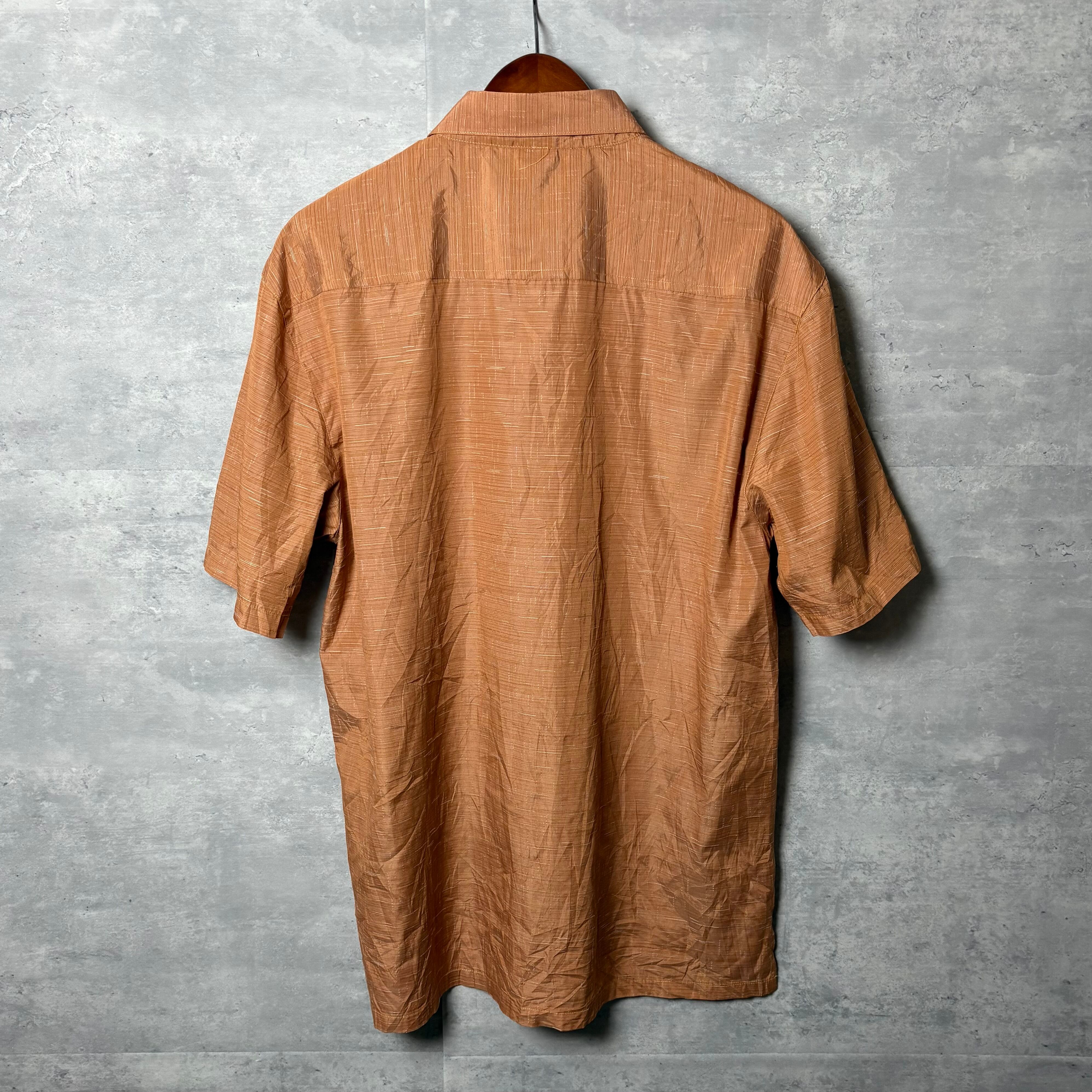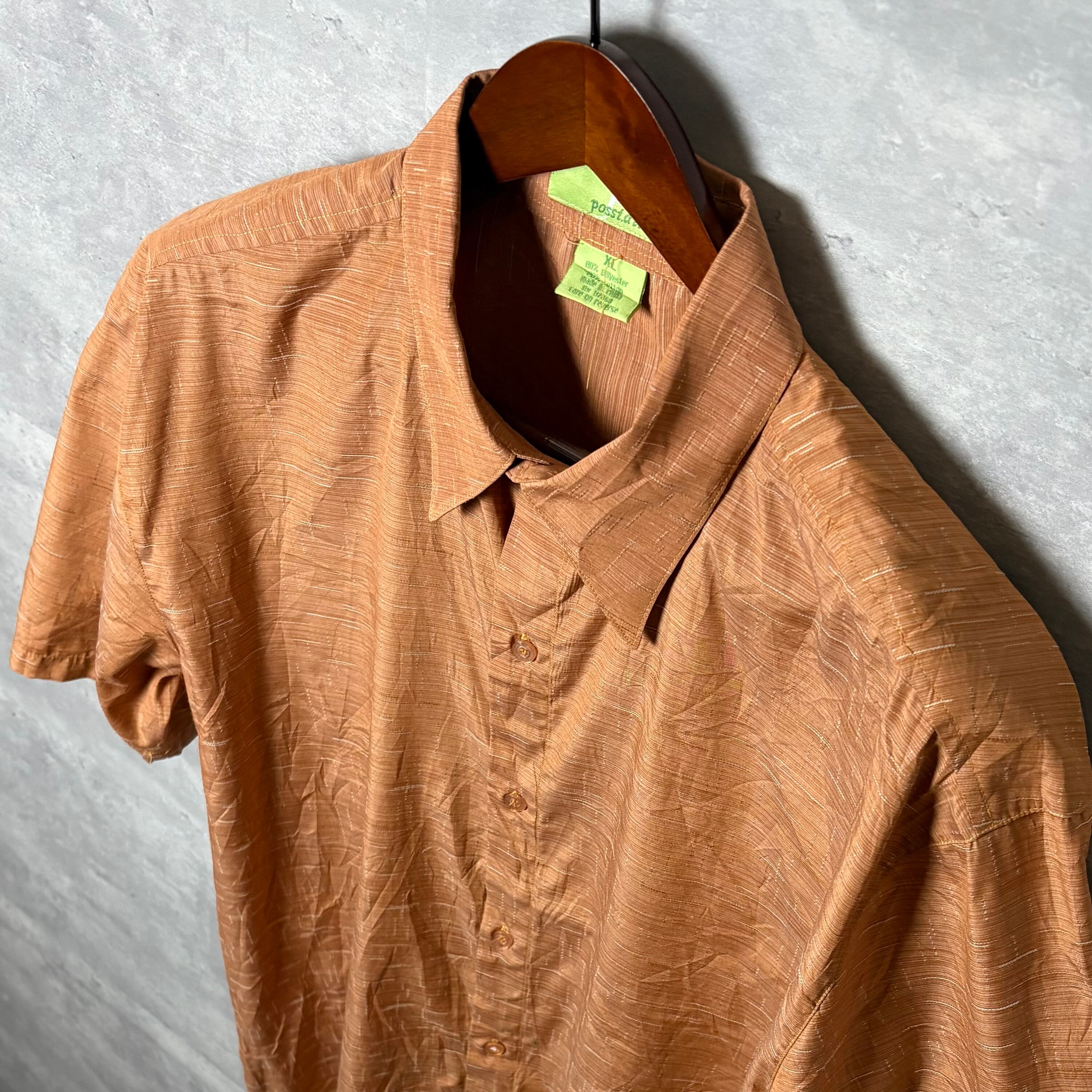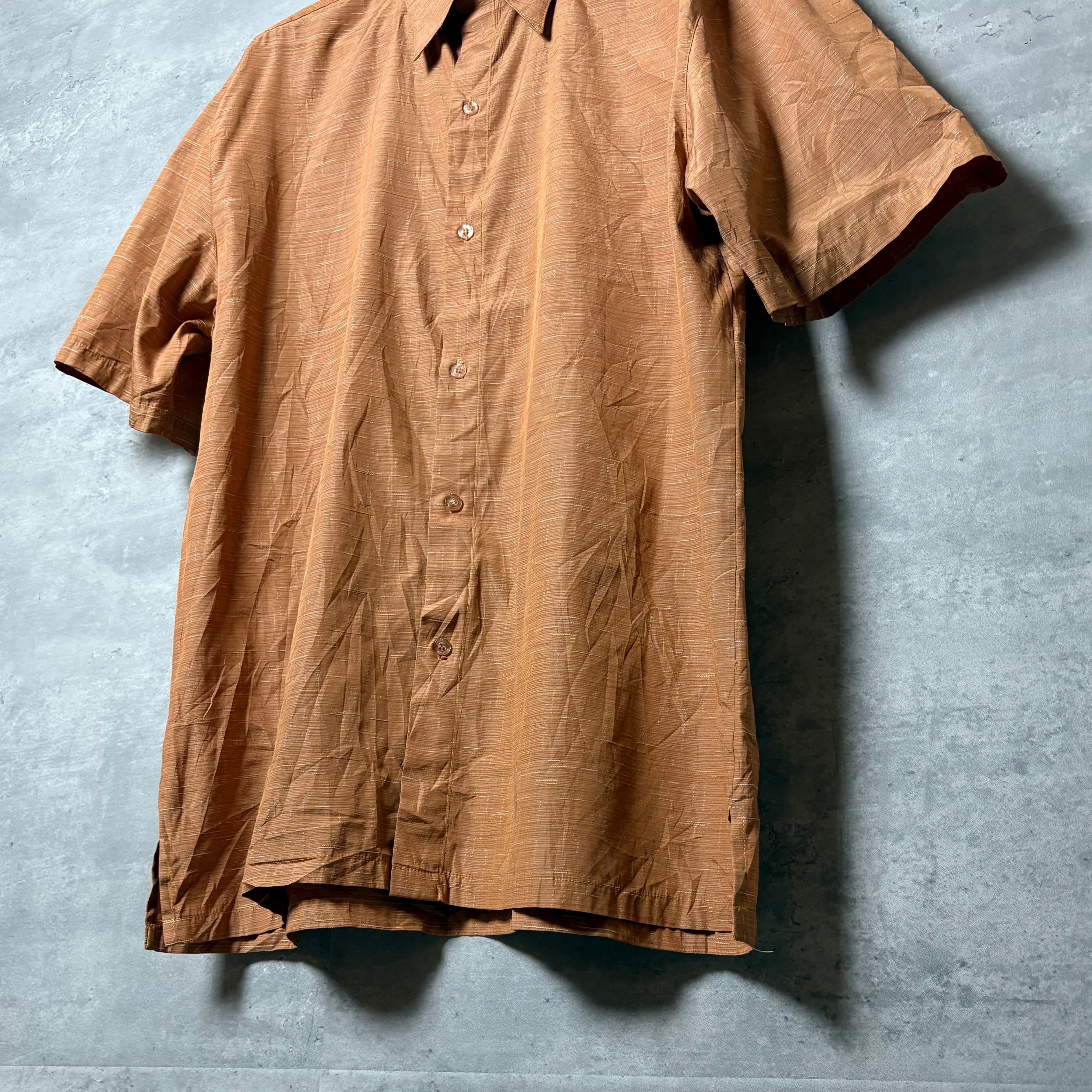 半袖シャツ, シャドーストライプ, ポリシャツ, ブラウン, XL, 古着コーデ
