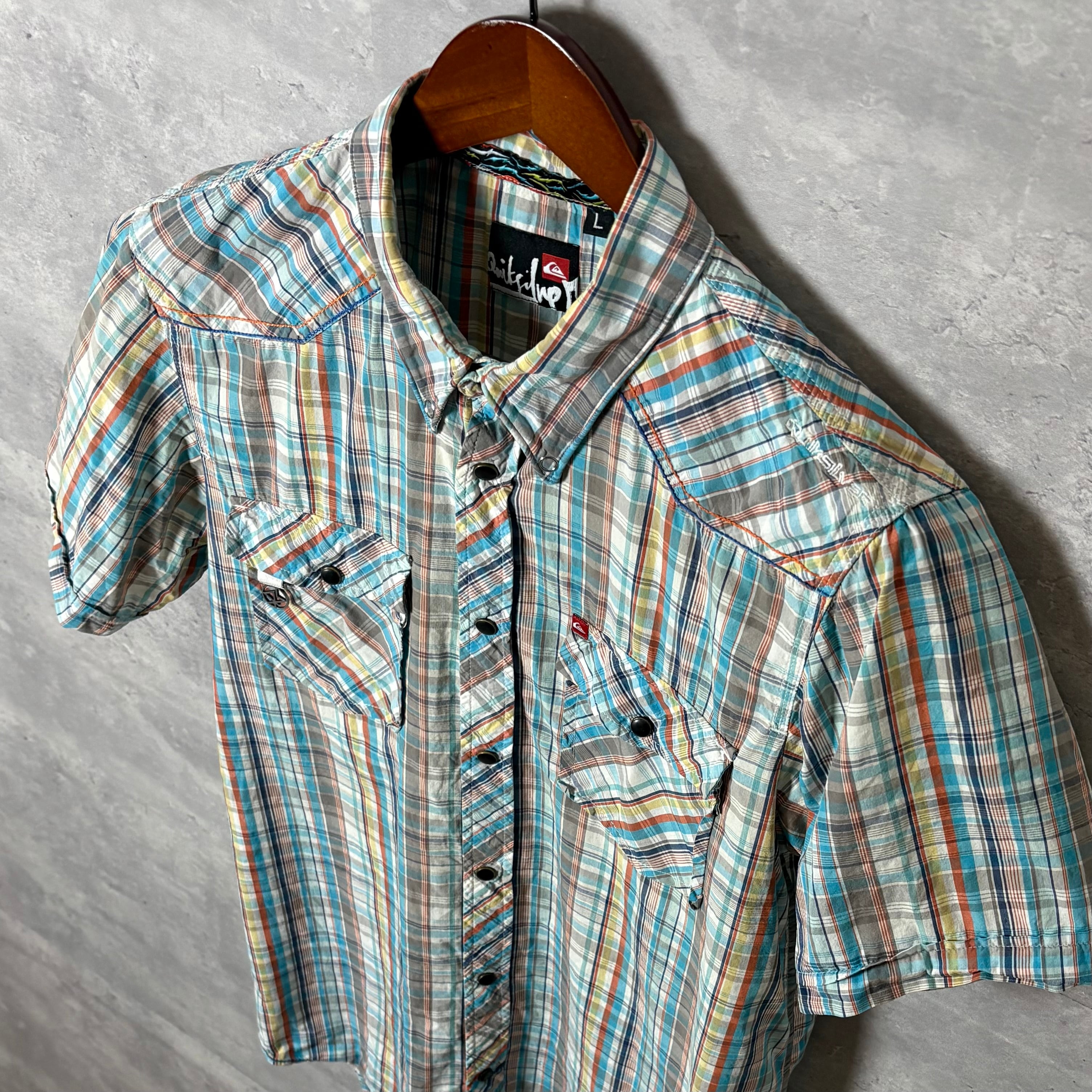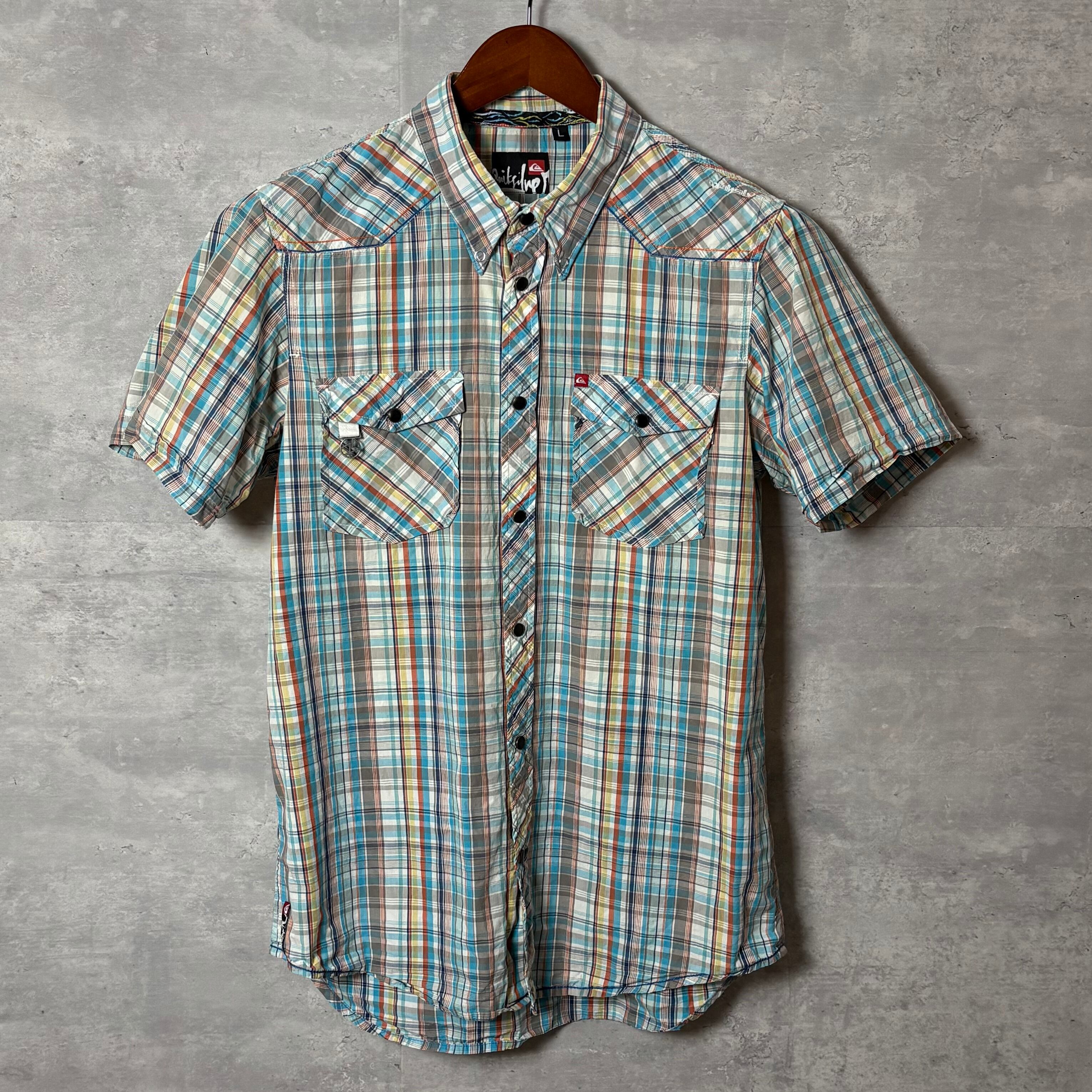 Quiksilver チェック柄 半袖シャツ Lサイズ カラフル 夏シャツ