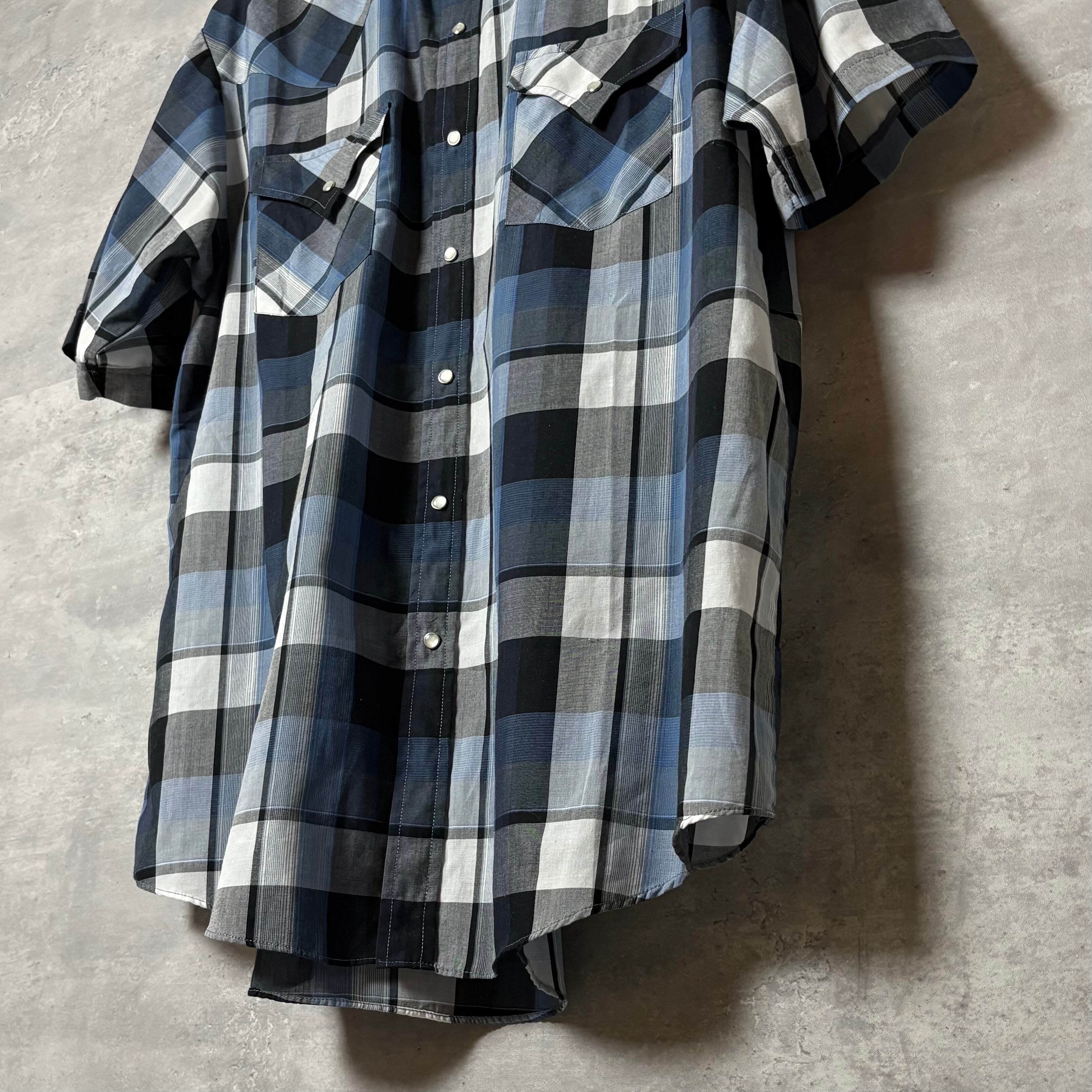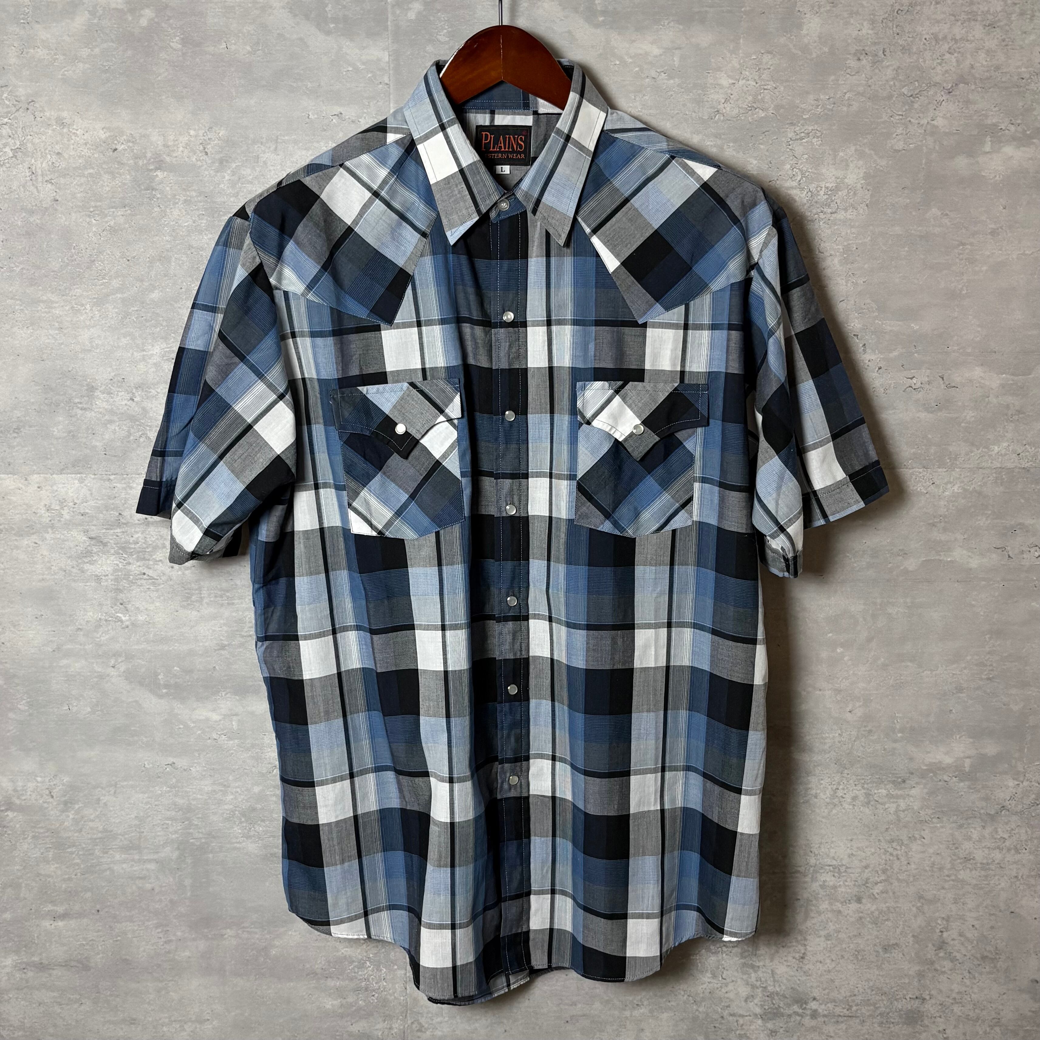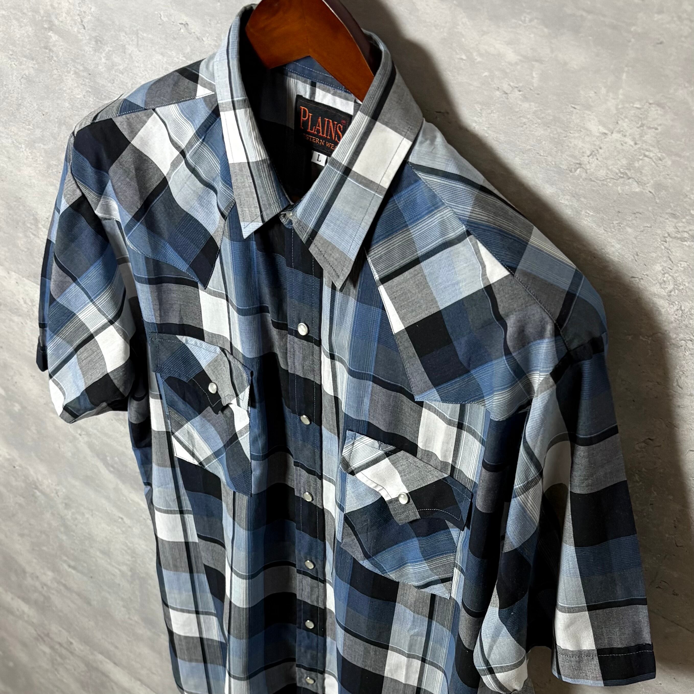 PLAiNS ウエスタンシャツ チェック柄 スナップボタン 半袖 L