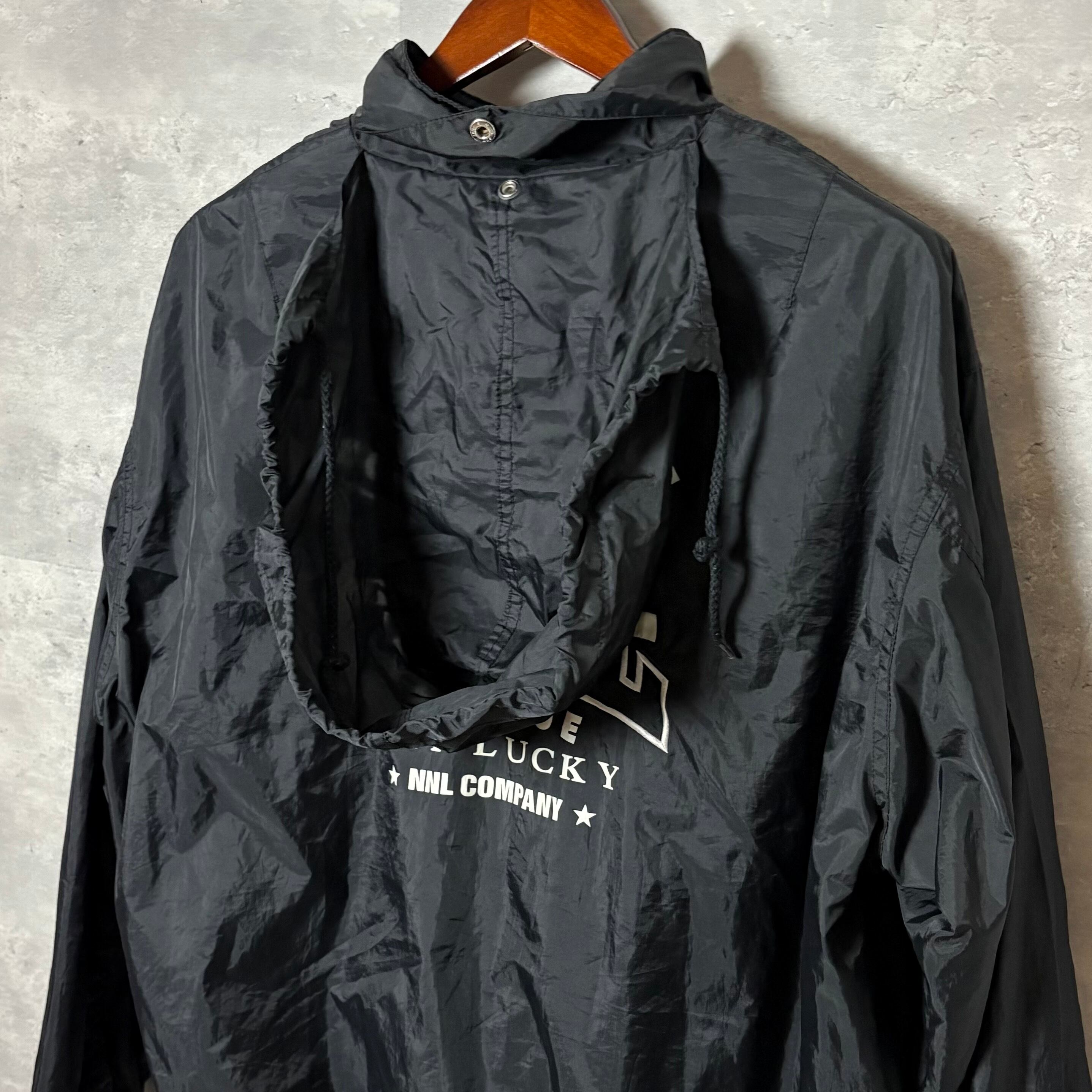 スポーティーなデザインに大きめのプリントロゴが映える、90年代テイストのナイロンジャケット。収納式のフードやドローコード仕様で、アウトドア・ストリートのどちらにもマッチする万能アイテムです。ゆったりとしたシルエットなので、オーバーサイズでの着用にもおすすめ。