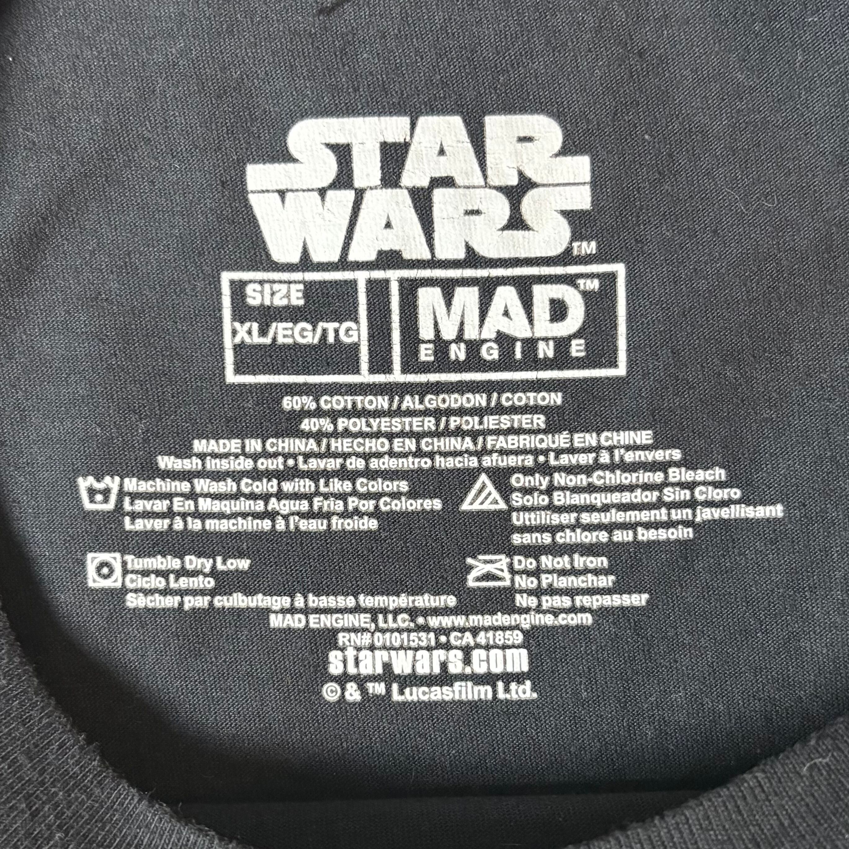 スター・ウォーズファン必見のインパクトある1枚。フロント全面にダース・ベイダーの装置風デザインがプリントされており、Tシャツとしてはもちろん、イベントやコスプレにも活用できます。ゆったり着られるXLサイズでユニセックスにおすすめです。