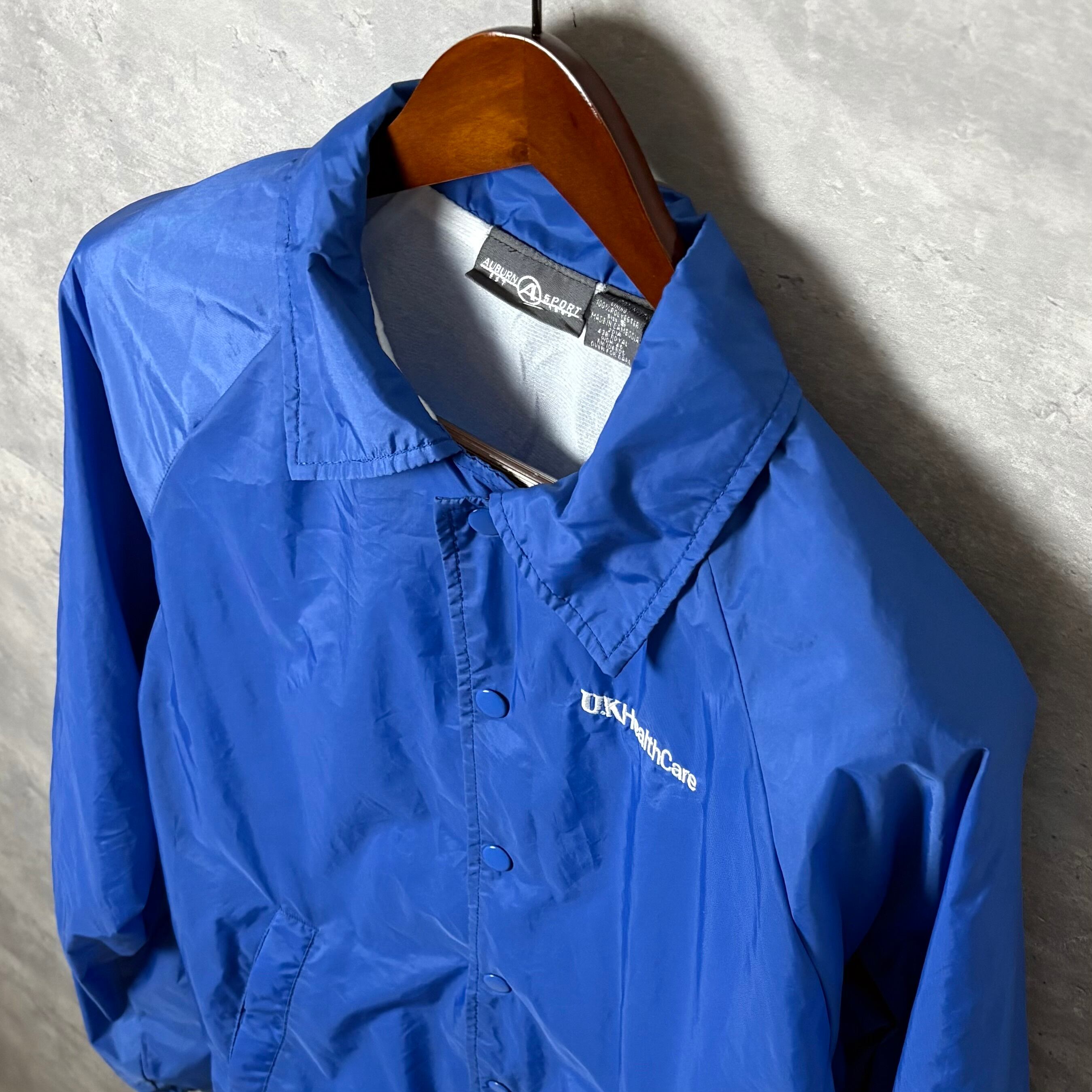 AUBURN ナイロンコーチジャケット USA医療系 刺繍ロゴ S 青