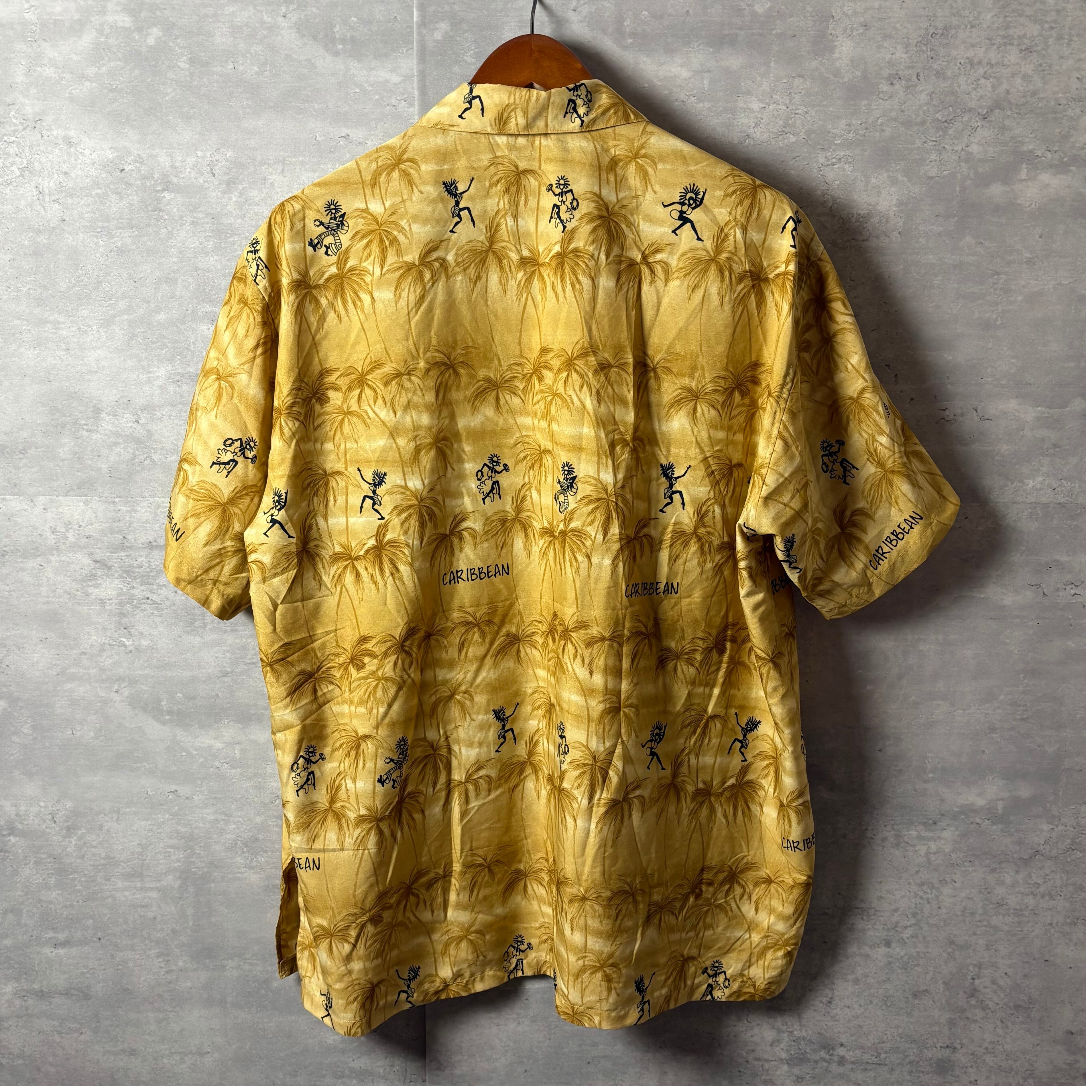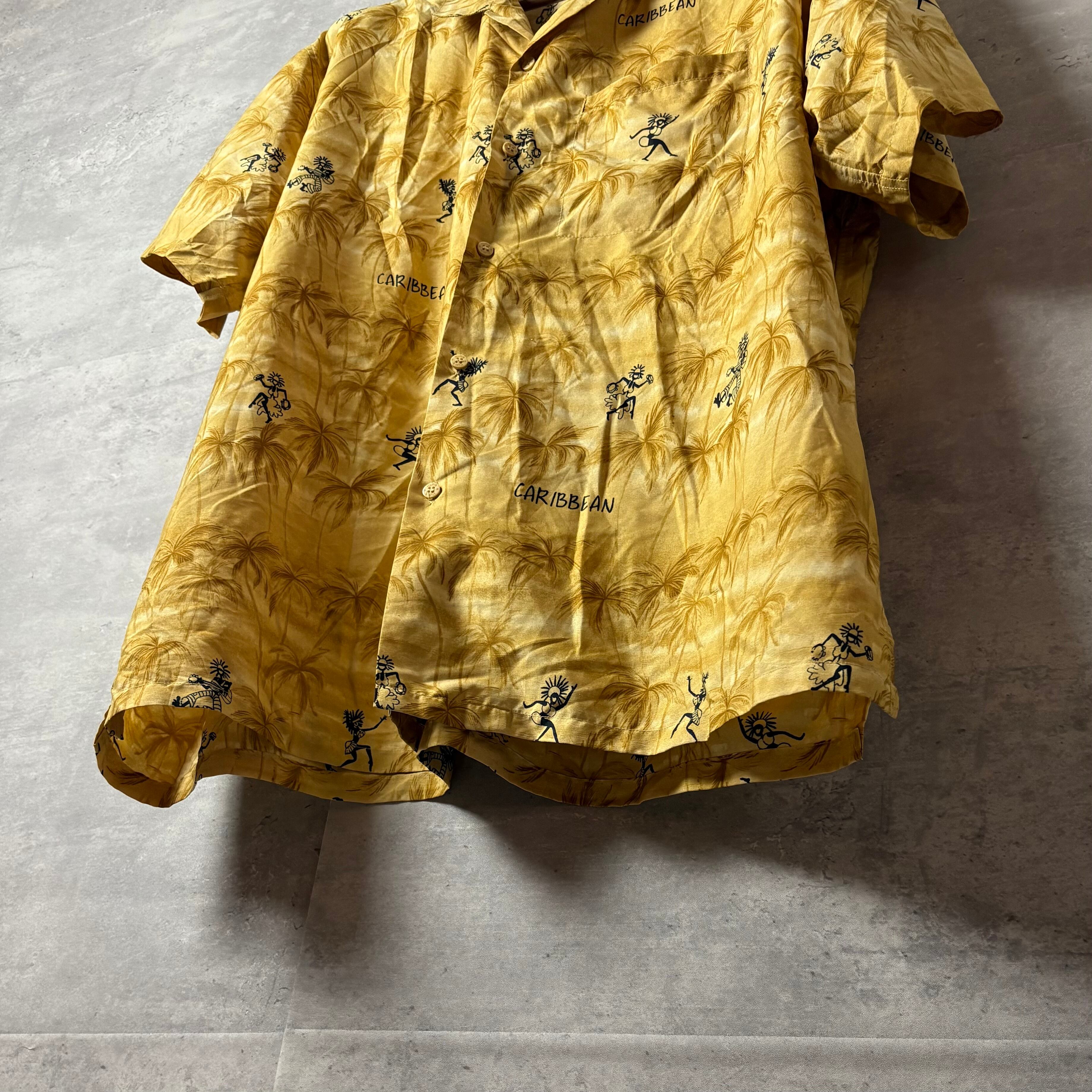 Rima アロハシャツ カリビアン柄 ヤシの木 ダンサー XL 黄色