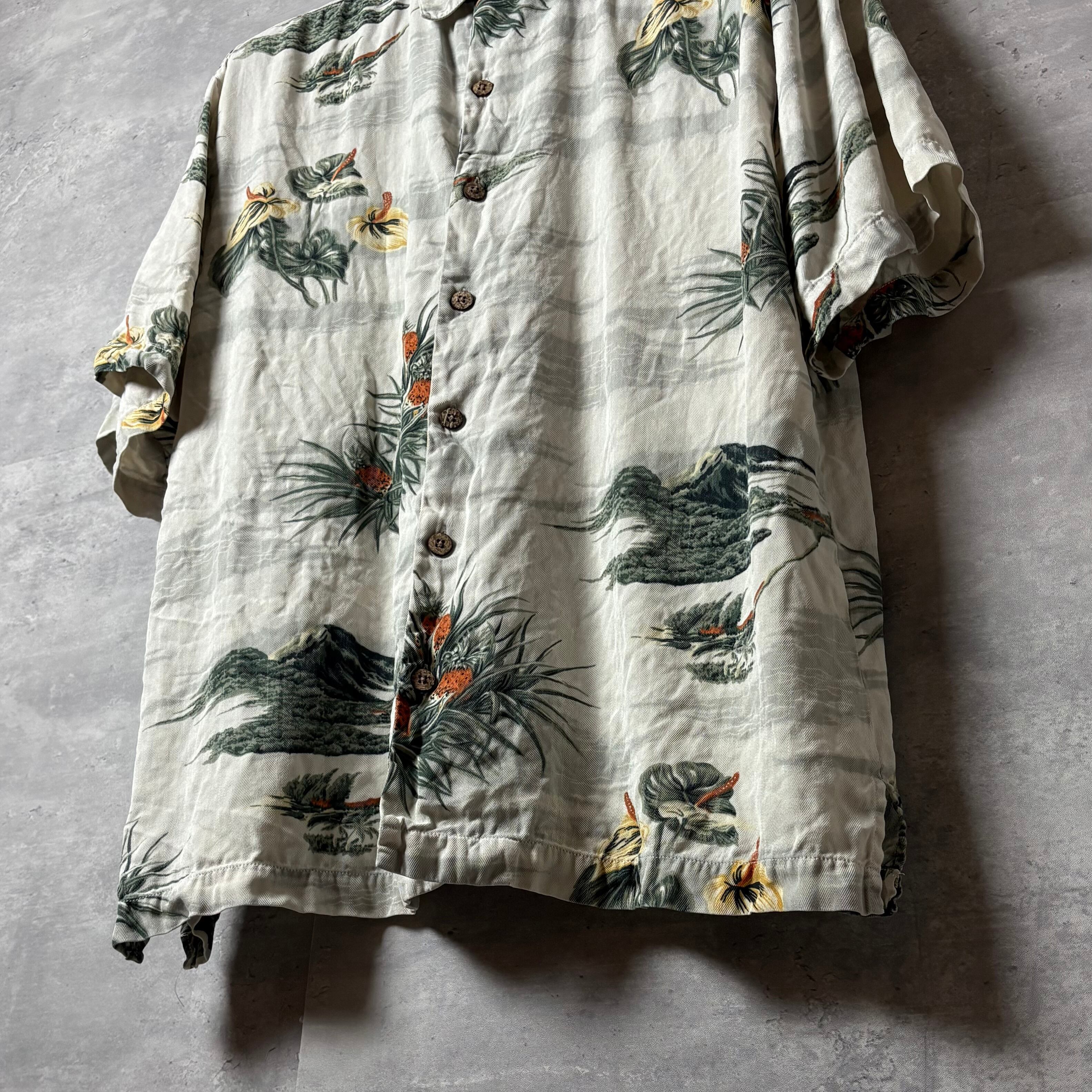 Tommy Bahama, シルクシャツ, アロハシャツ, リーフ柄, 花柄, リゾート, 総柄, 古着, M