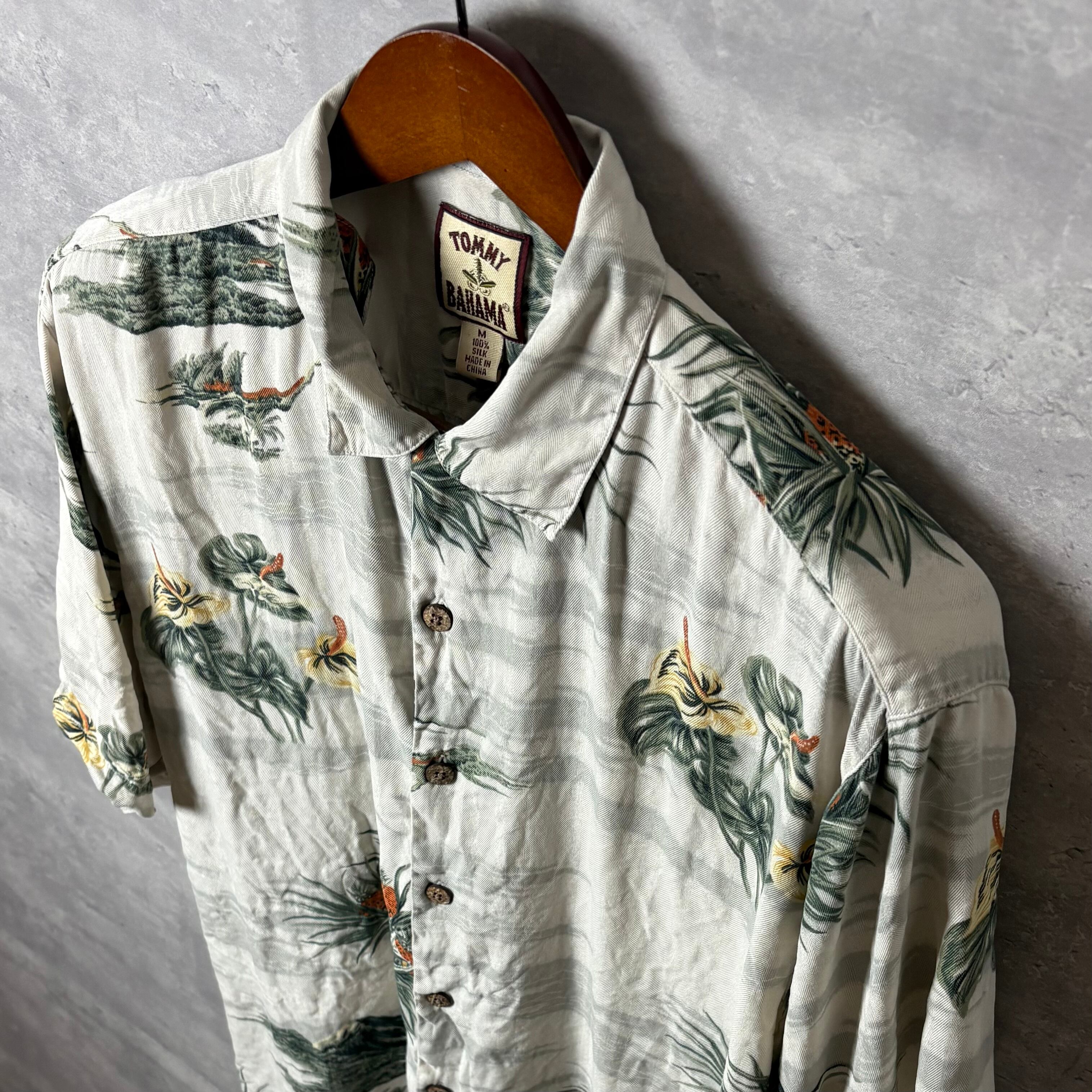 Tommy Bahama シルク アロハシャツ リーフ柄 花 Mサイズ 総柄