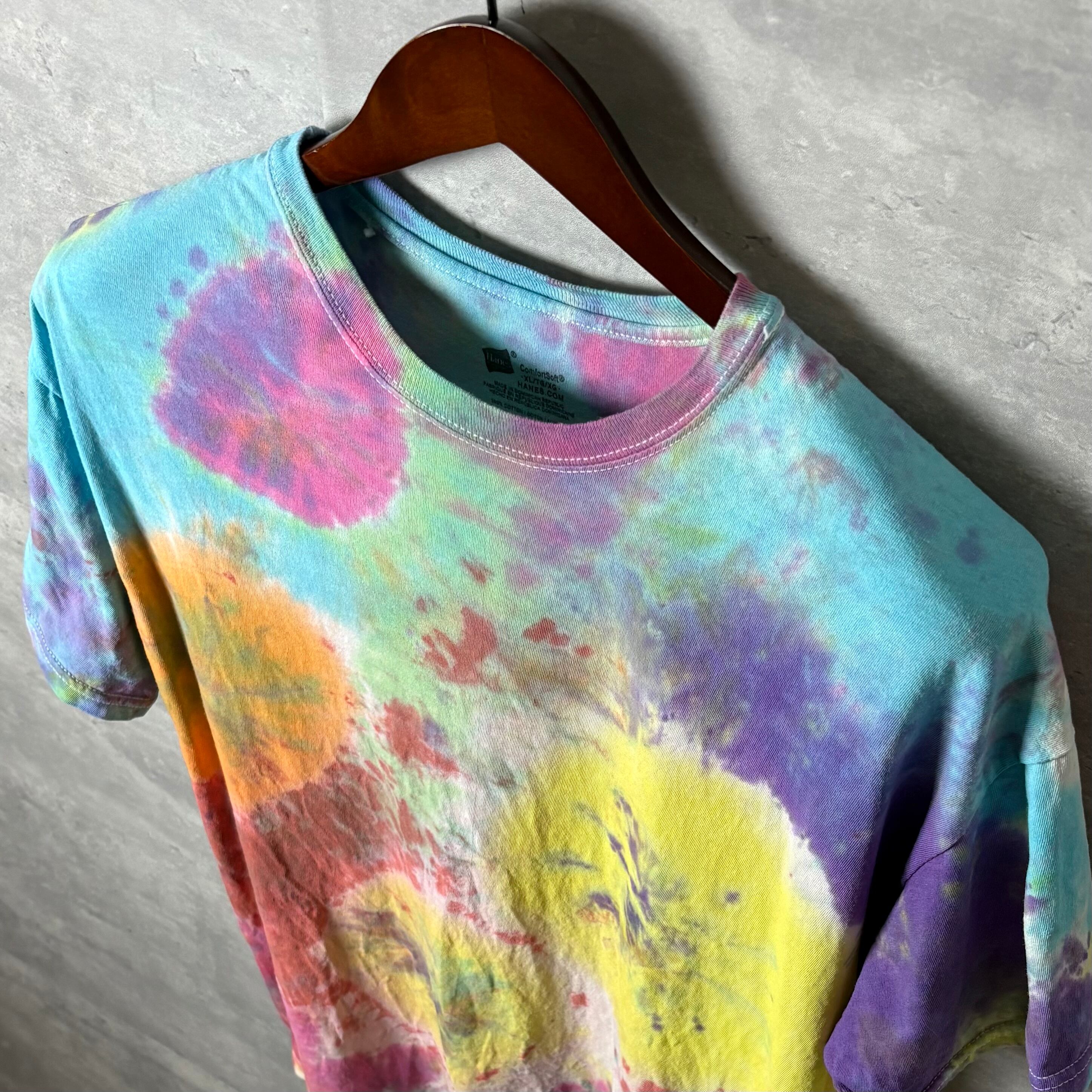 Hanes タイダイ Tシャツ XL ドーナツ柄 マルチカラー 半袖 古着