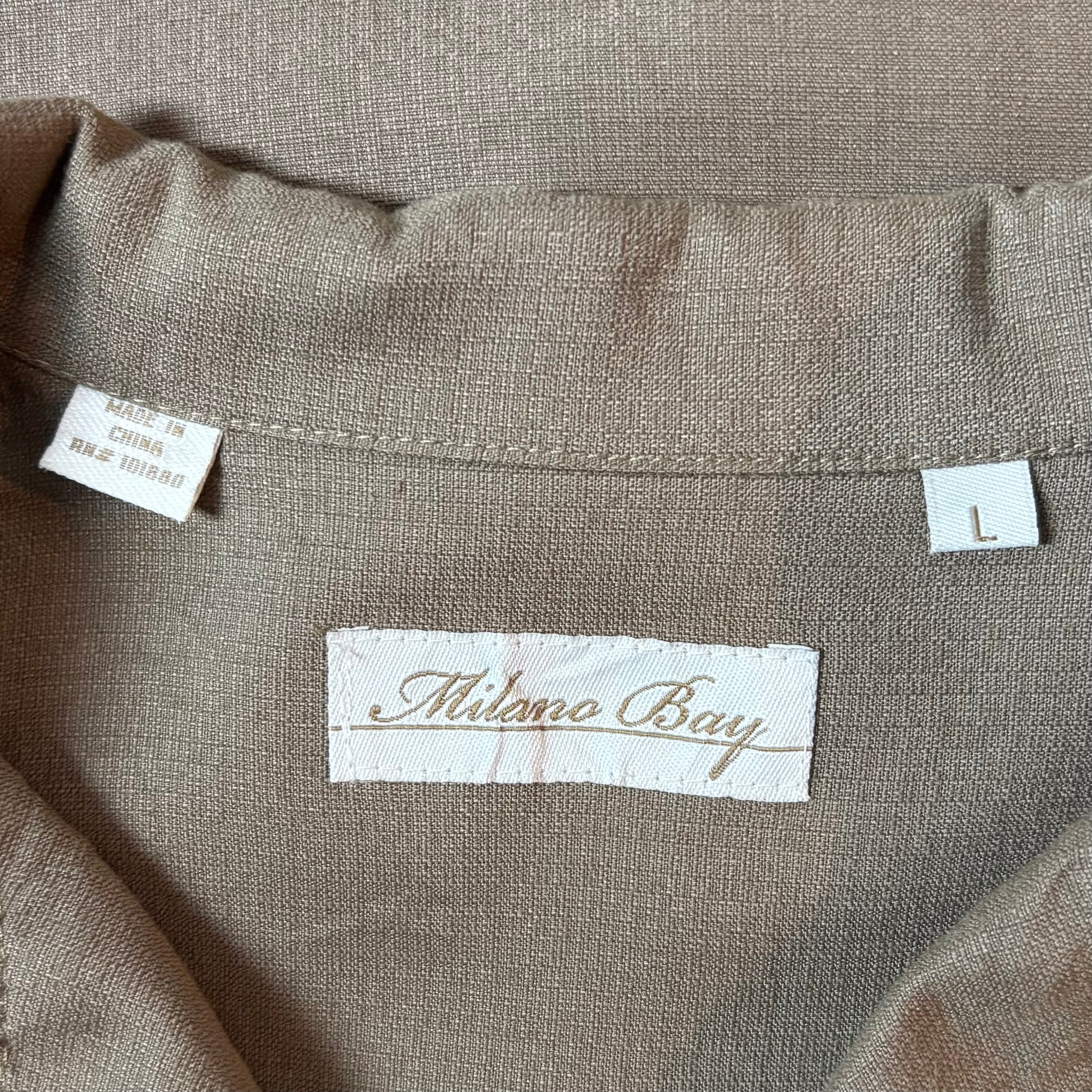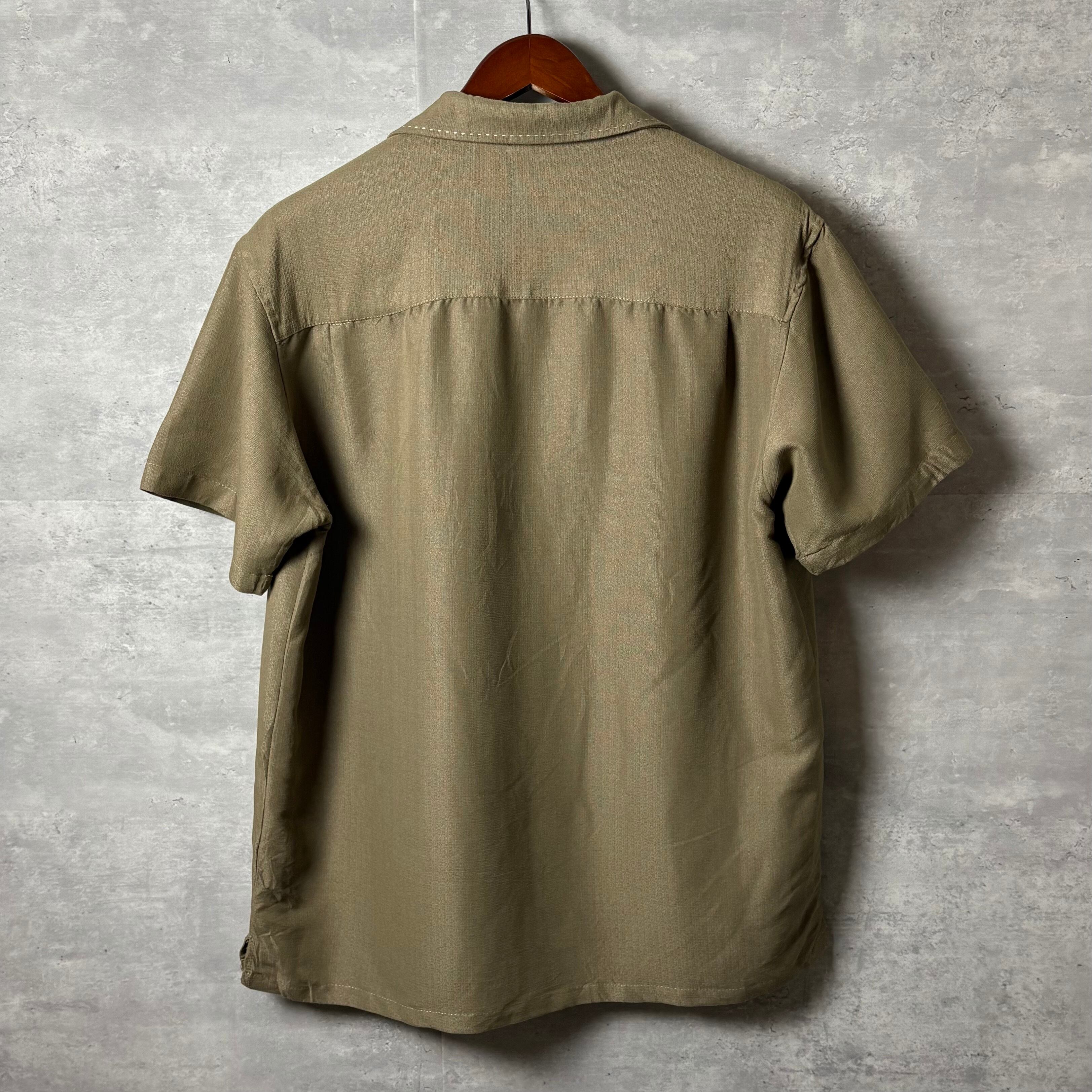MilanoBay, 開襟シャツ, 半袖, バイカラー, レーヨン, 古着, メンズ, ベージュ, Lサイズ