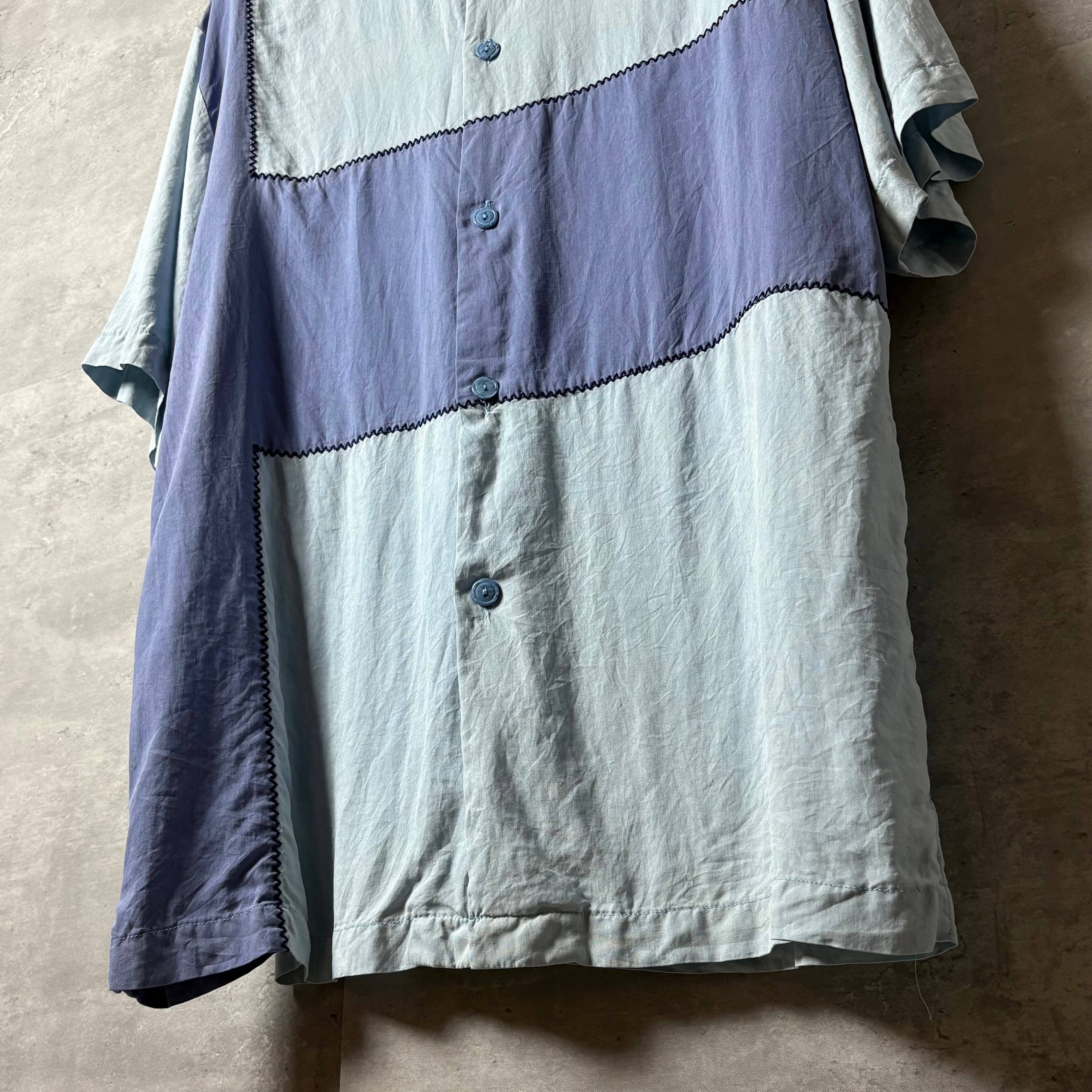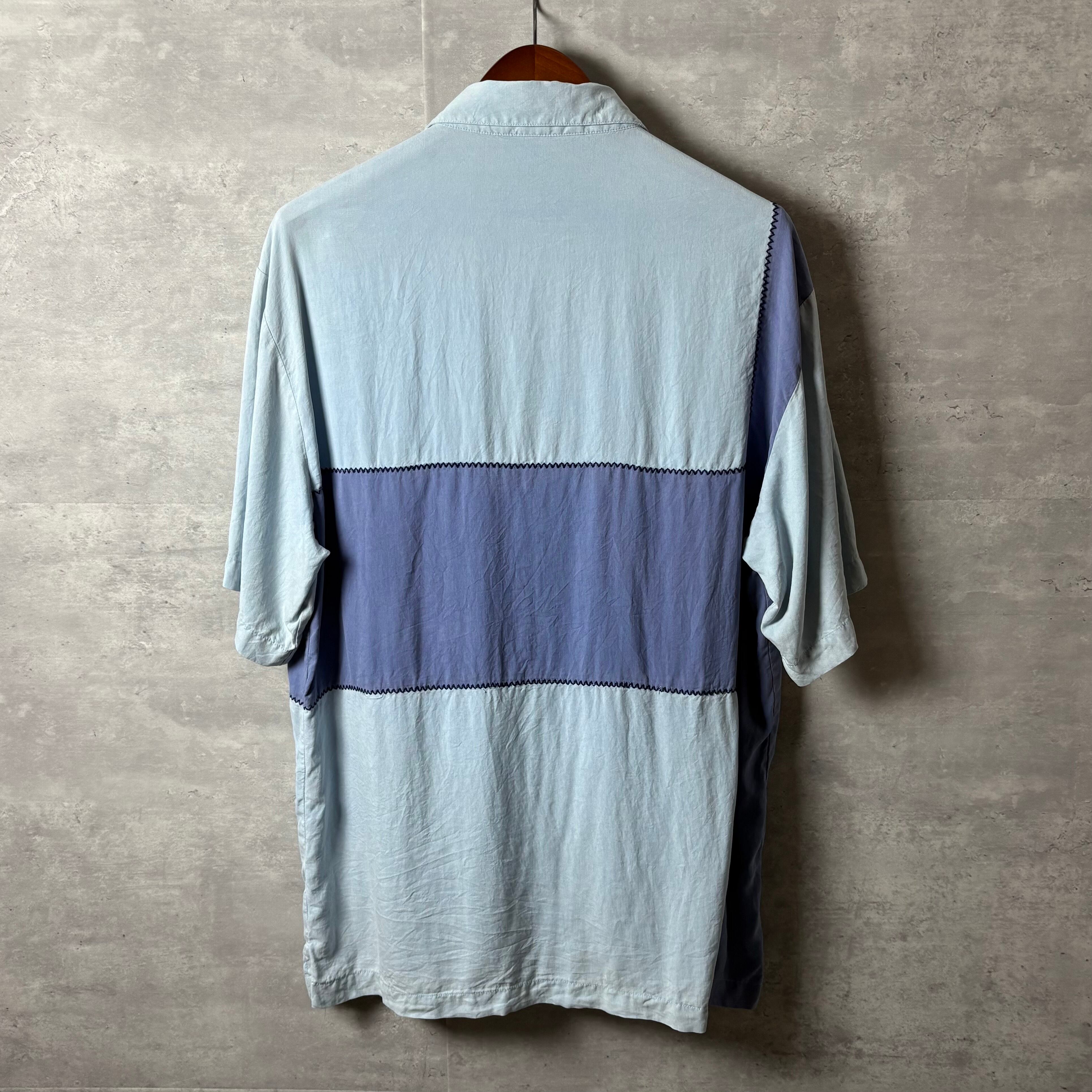 シルクシャツ, オープンカラー, 切替デザイン, 古着, 夏服, メンズL
