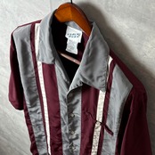 クラシックなボウリングシャツスタイルに、落ち着いたバーガンディとグレーのカラーリングが映える一着。ゆったりとしたシルエットで、ストリートコーデやヴィンテージミックスにも好相性です。オーバーサイズ気味に着ても雰囲気が出ます。