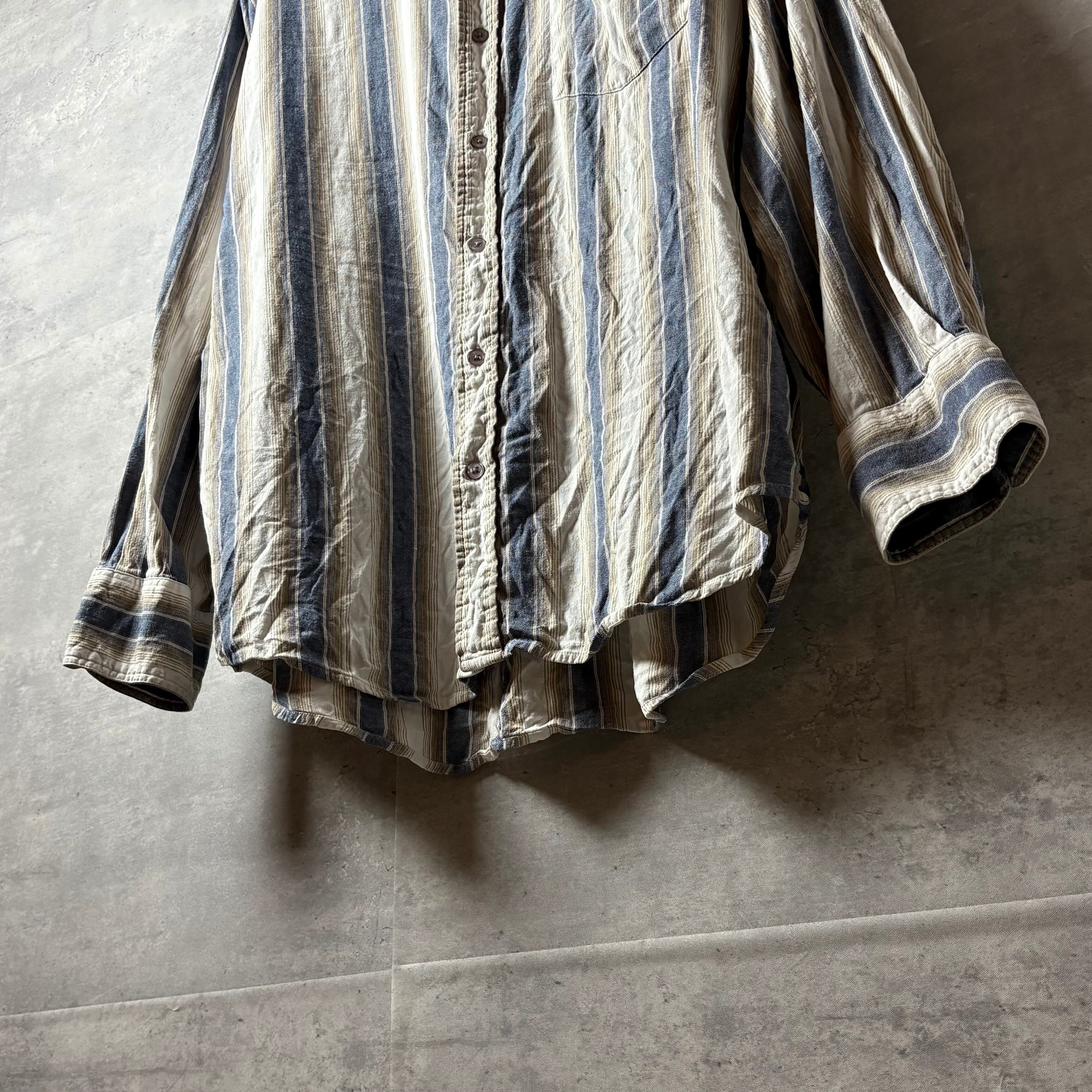 ヴィンテージ, 90s, ストライプシャツ, インド綿, 古着, オーバーサイズ