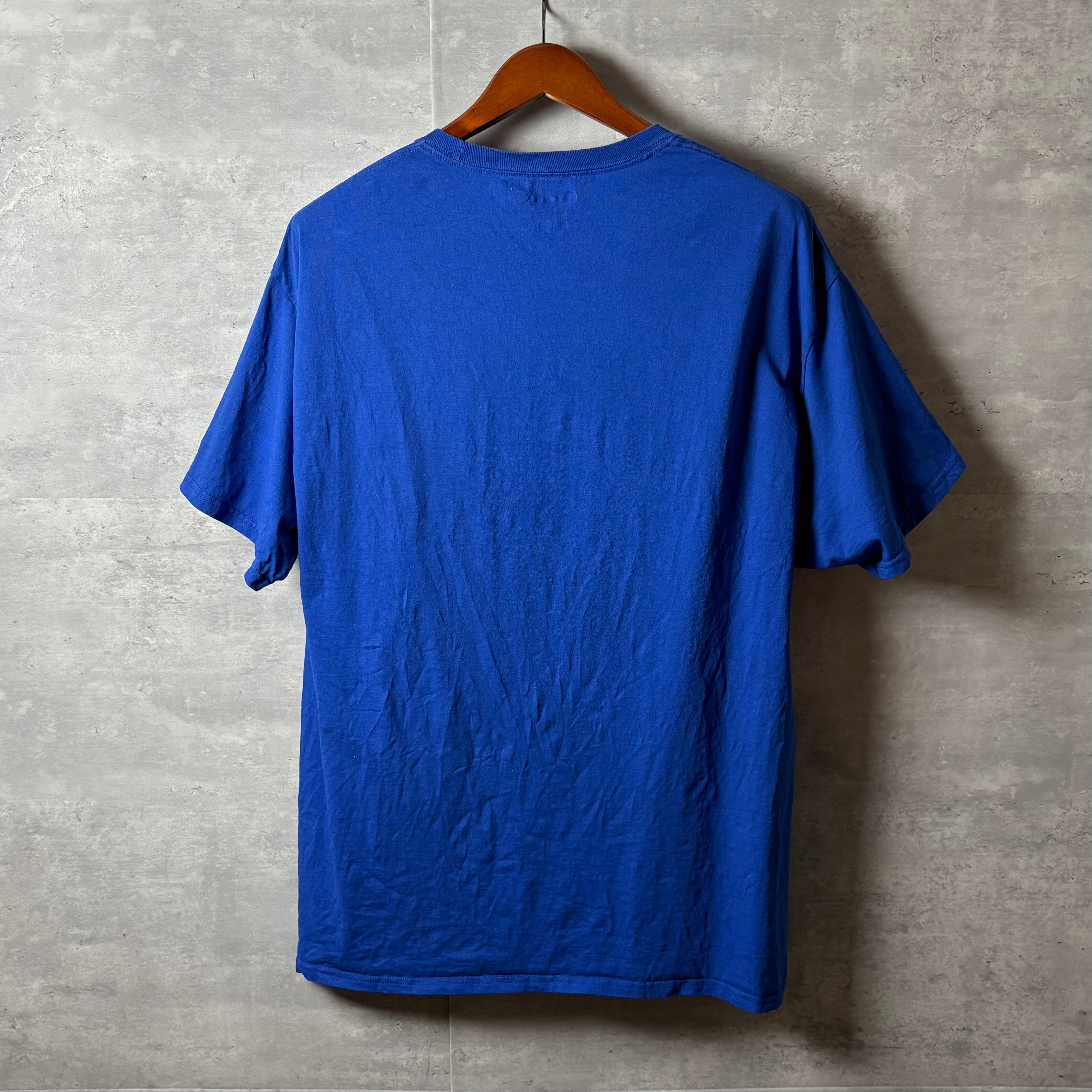 カンザス大学(The University of Kansas)の工学部をモチーフにしたカレッジTシャツ。発色の良いロイヤルブルーに、白のプリントが映えるアイテムです。シンプルながらアメリカらしい存在感があり、チノパンやデニムと合わせた定番の古着コーデにぴったり。Champion製なので品質も安心です。
