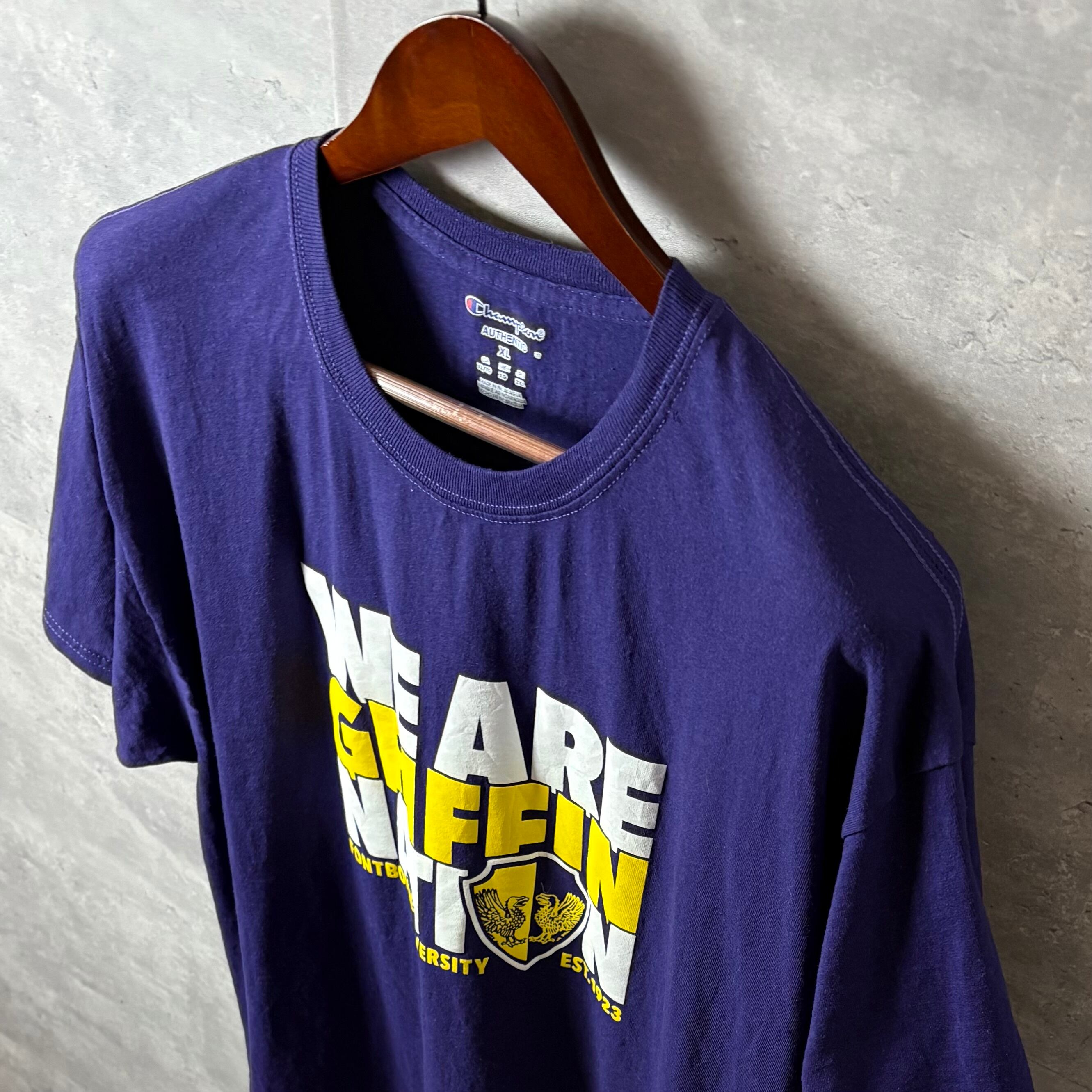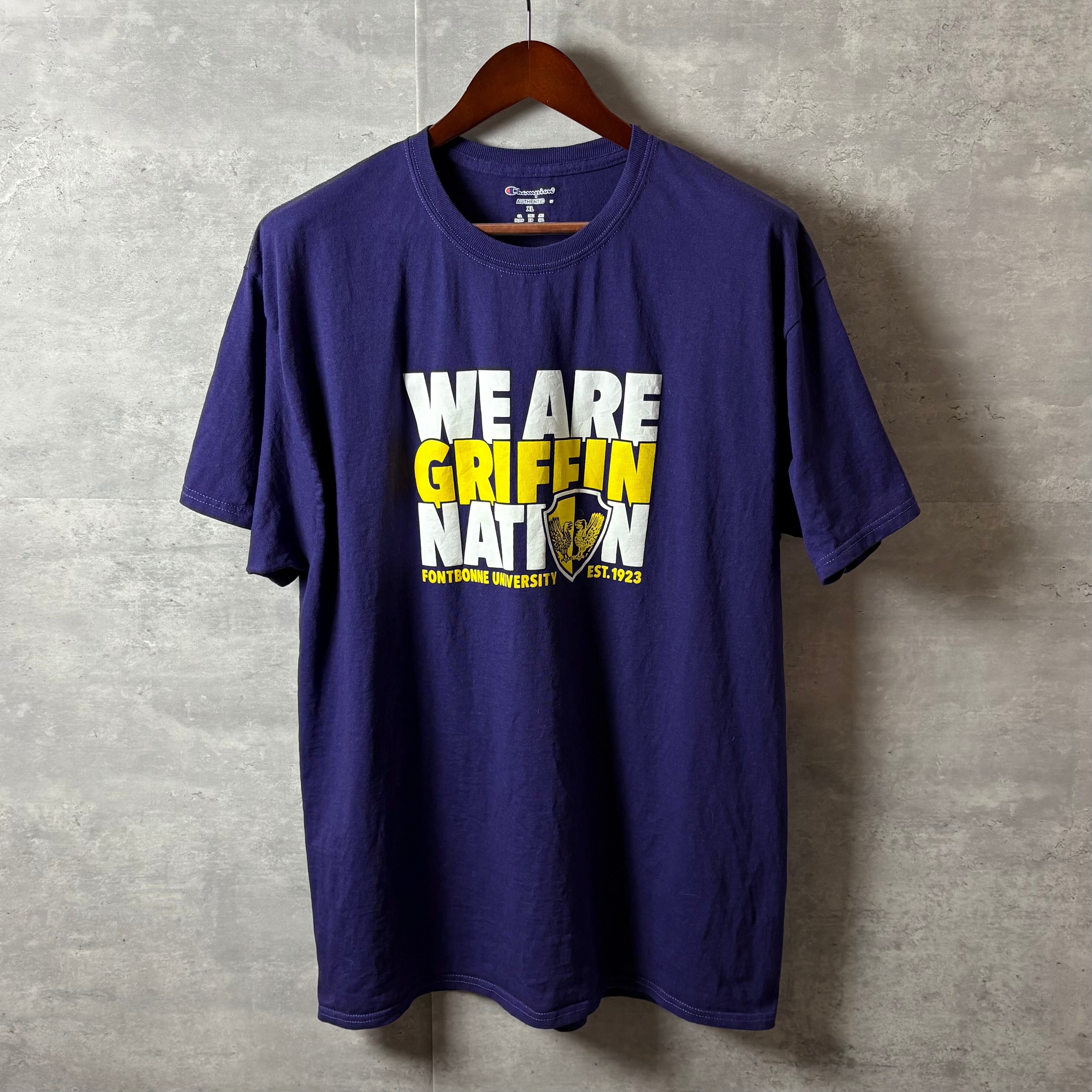 - 【特徴】: フロントに「WE ARE GRIFFIN NATION」プリント、FONTBONNE UNIVERSITYロゴ入り、チャンピオン定番のAUTHENTICボディ使用