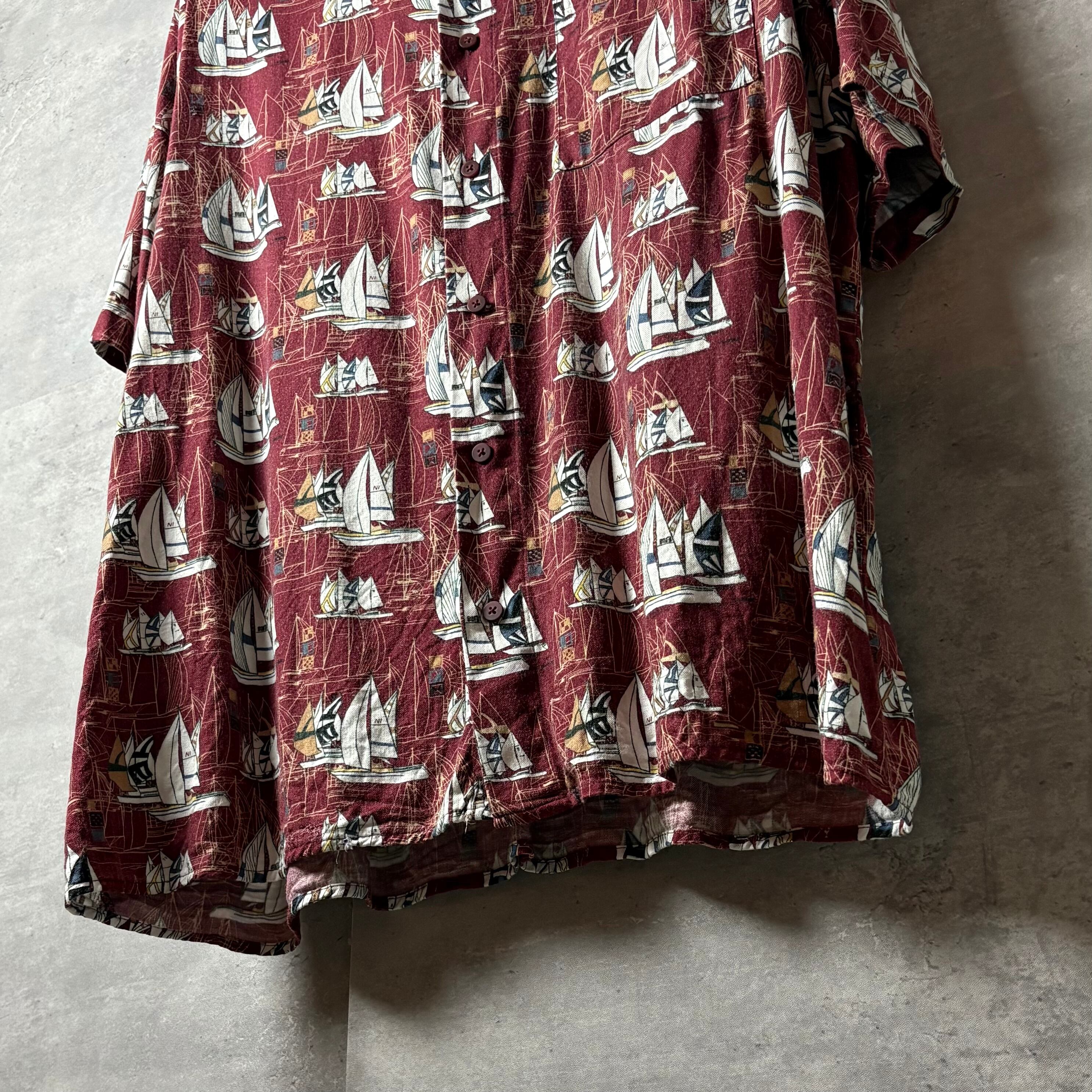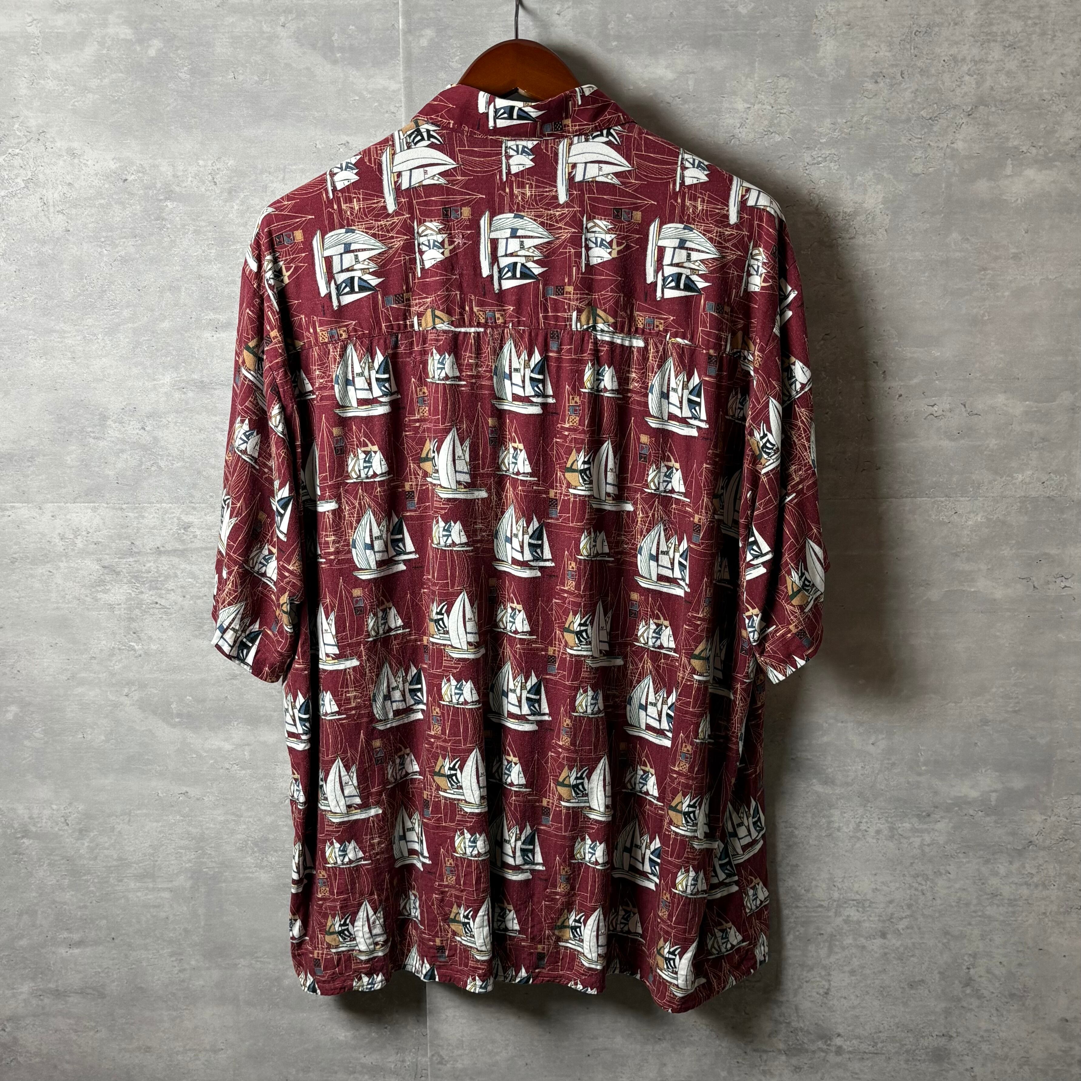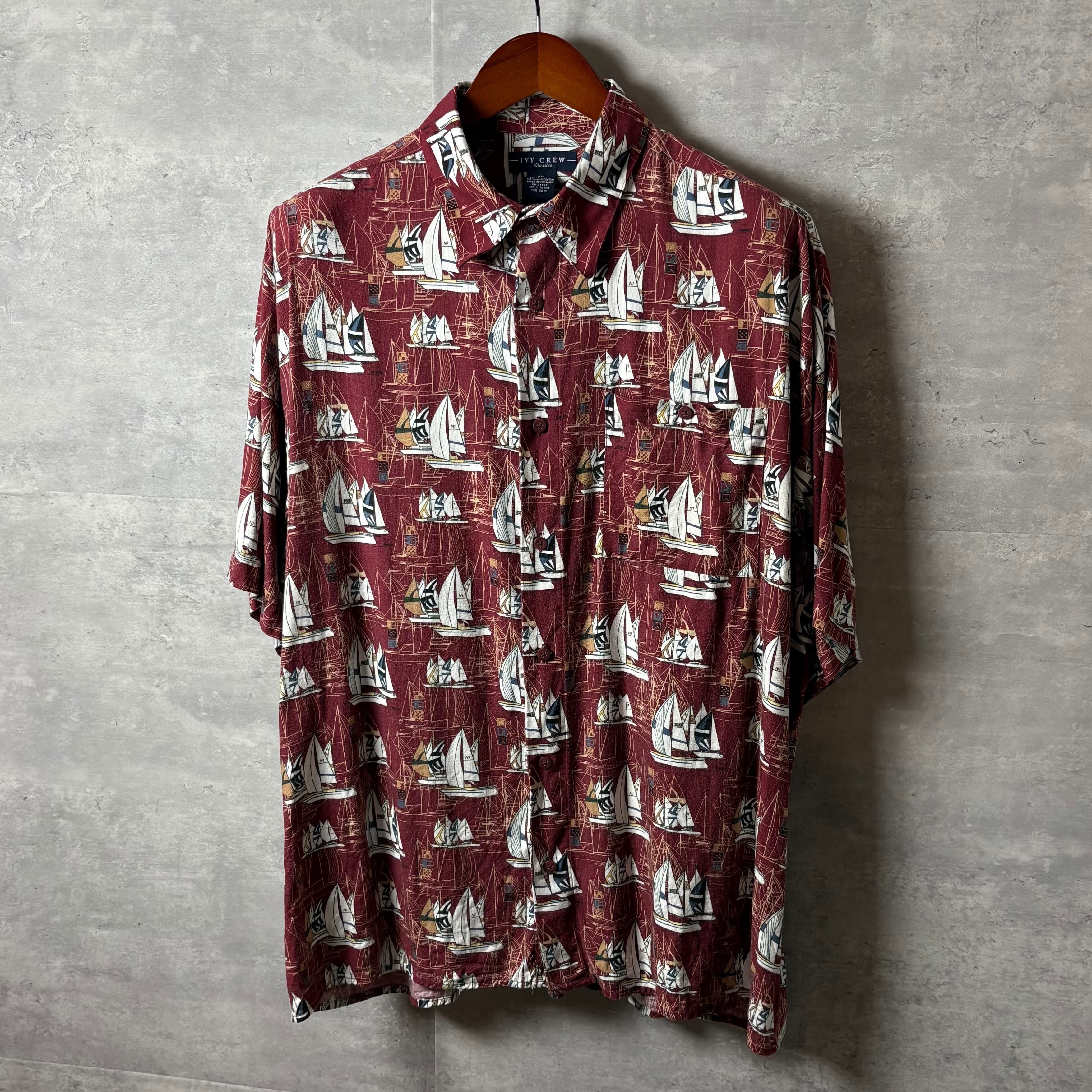 IVY CREW アロハシャツ ヨット柄 レーヨン100% XL ボルドー