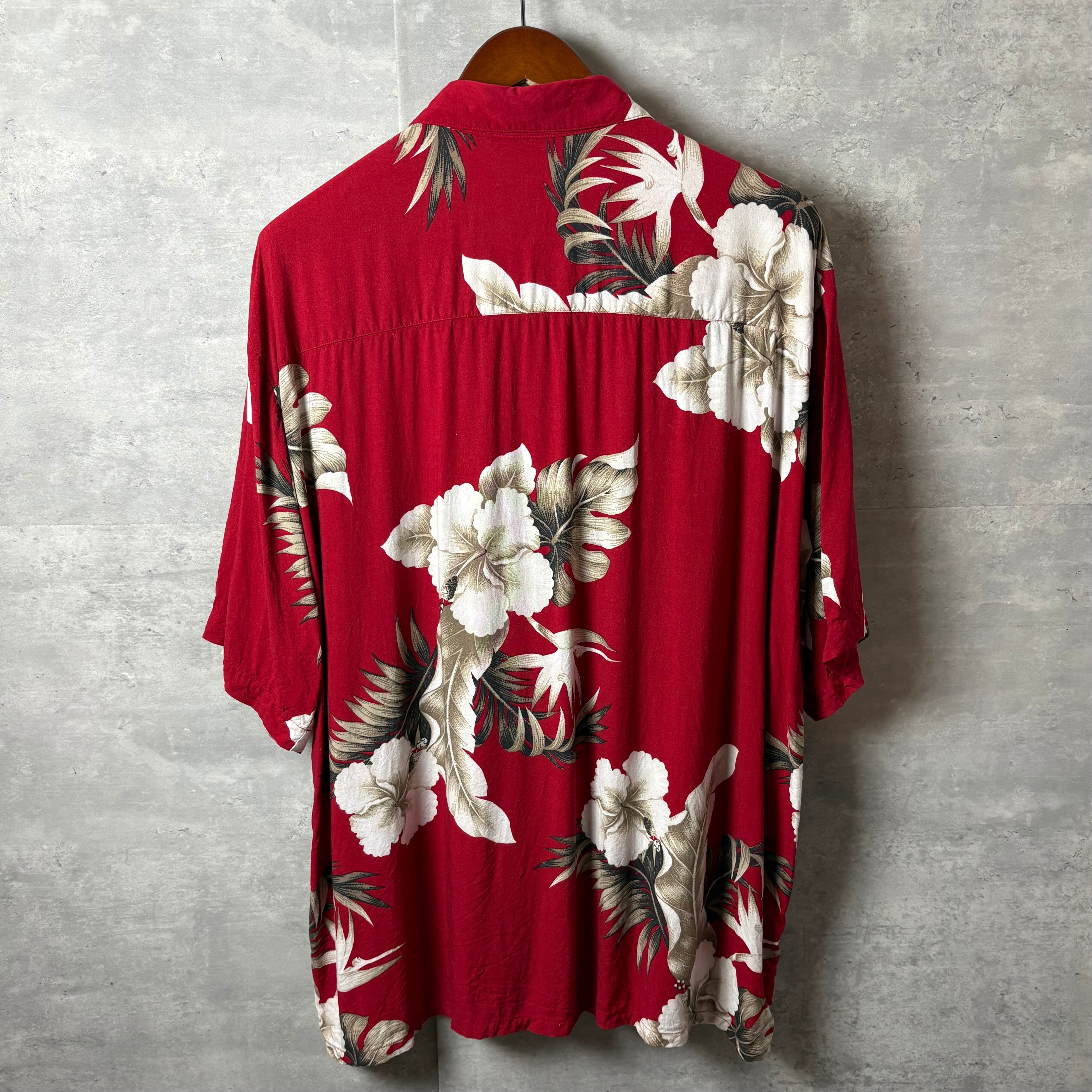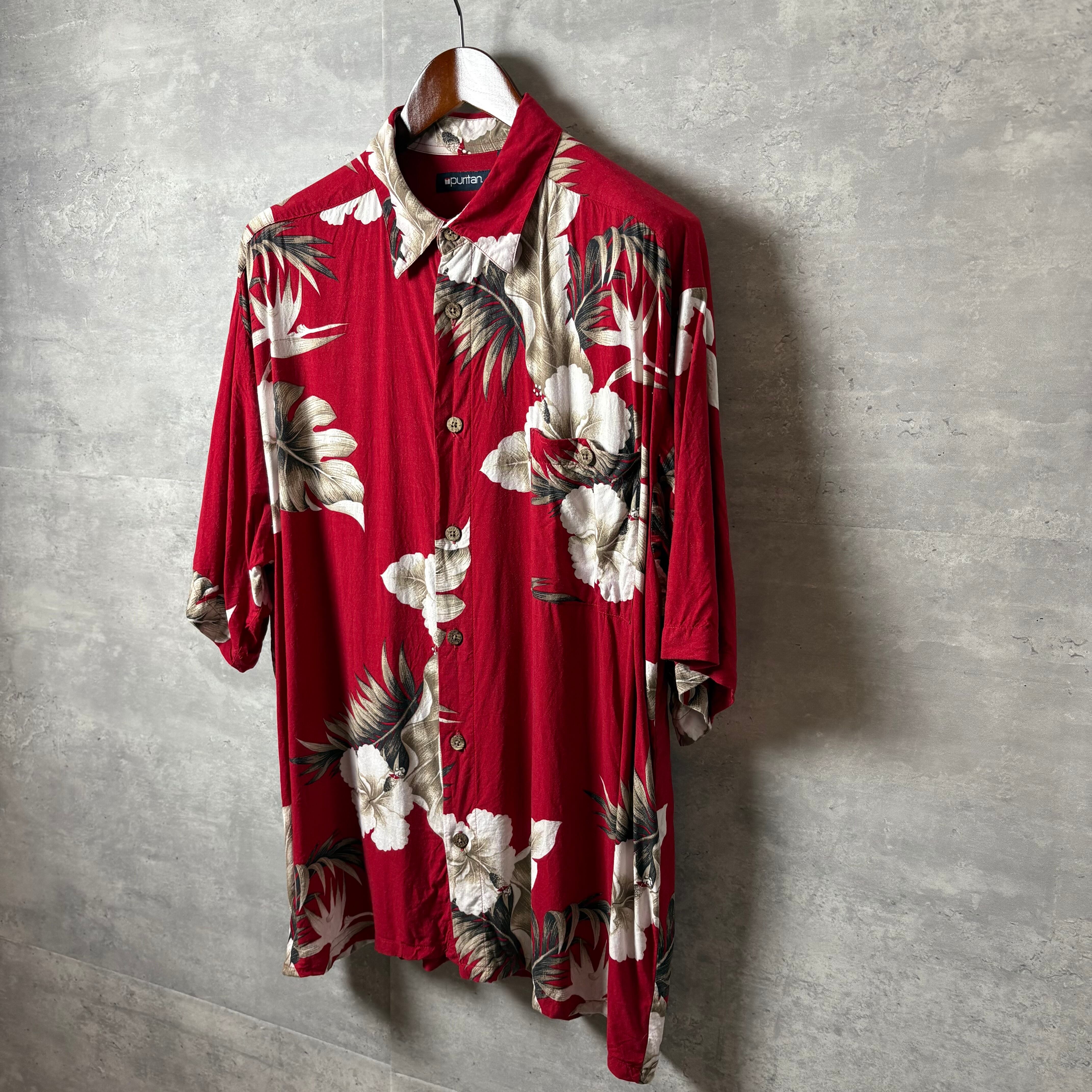 アロハシャツ, ハワイアン, レーヨン, 赤, 花柄, 古着コーデ