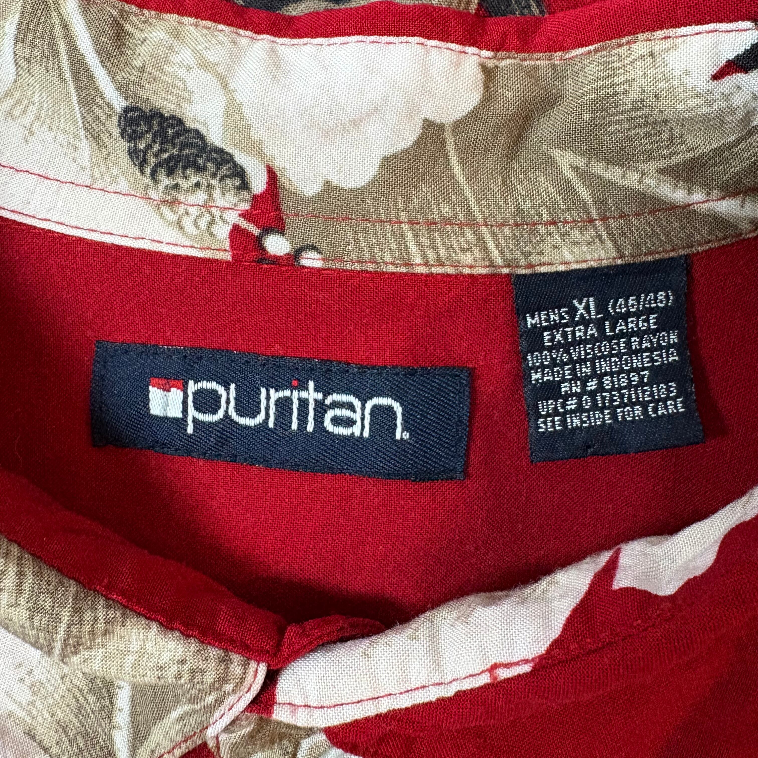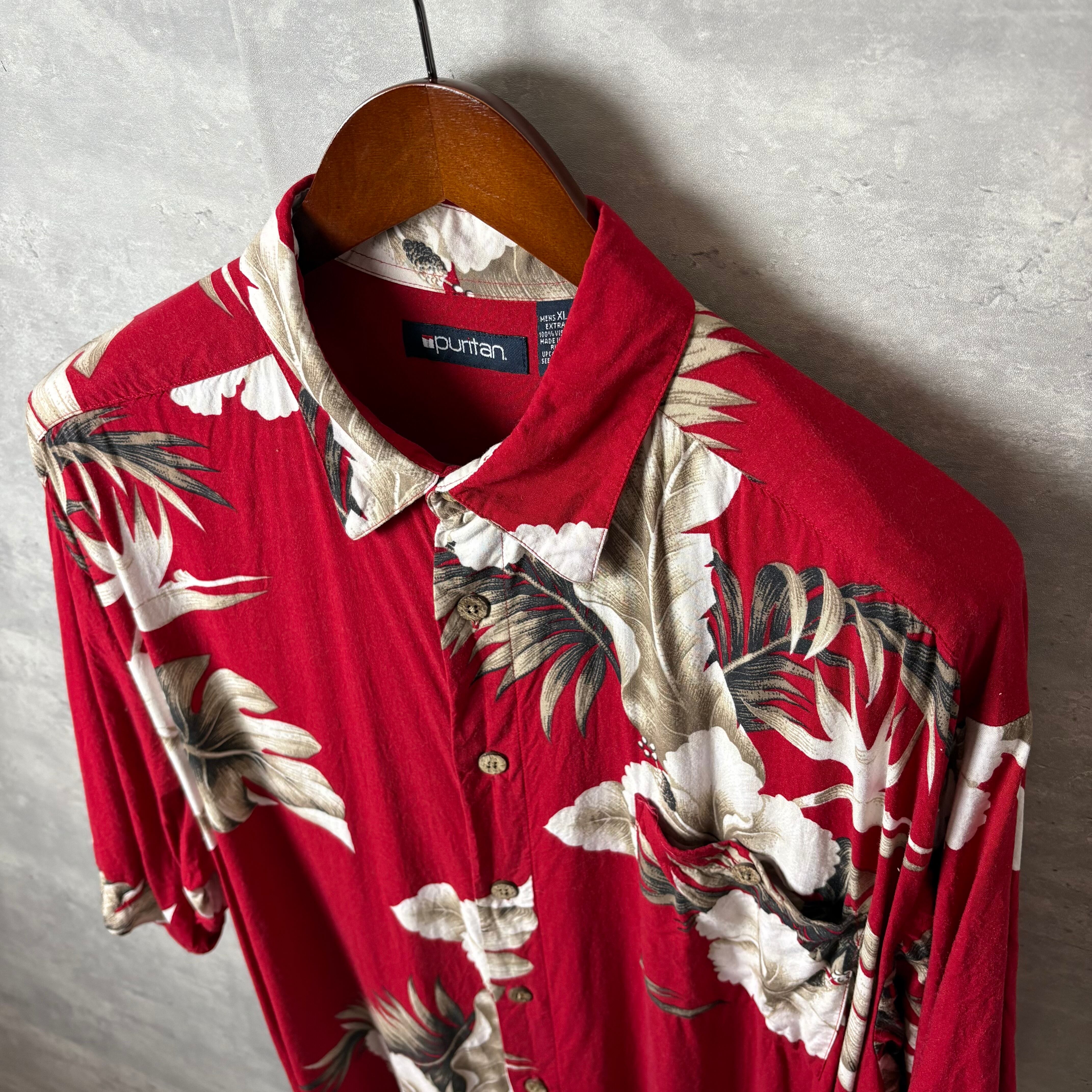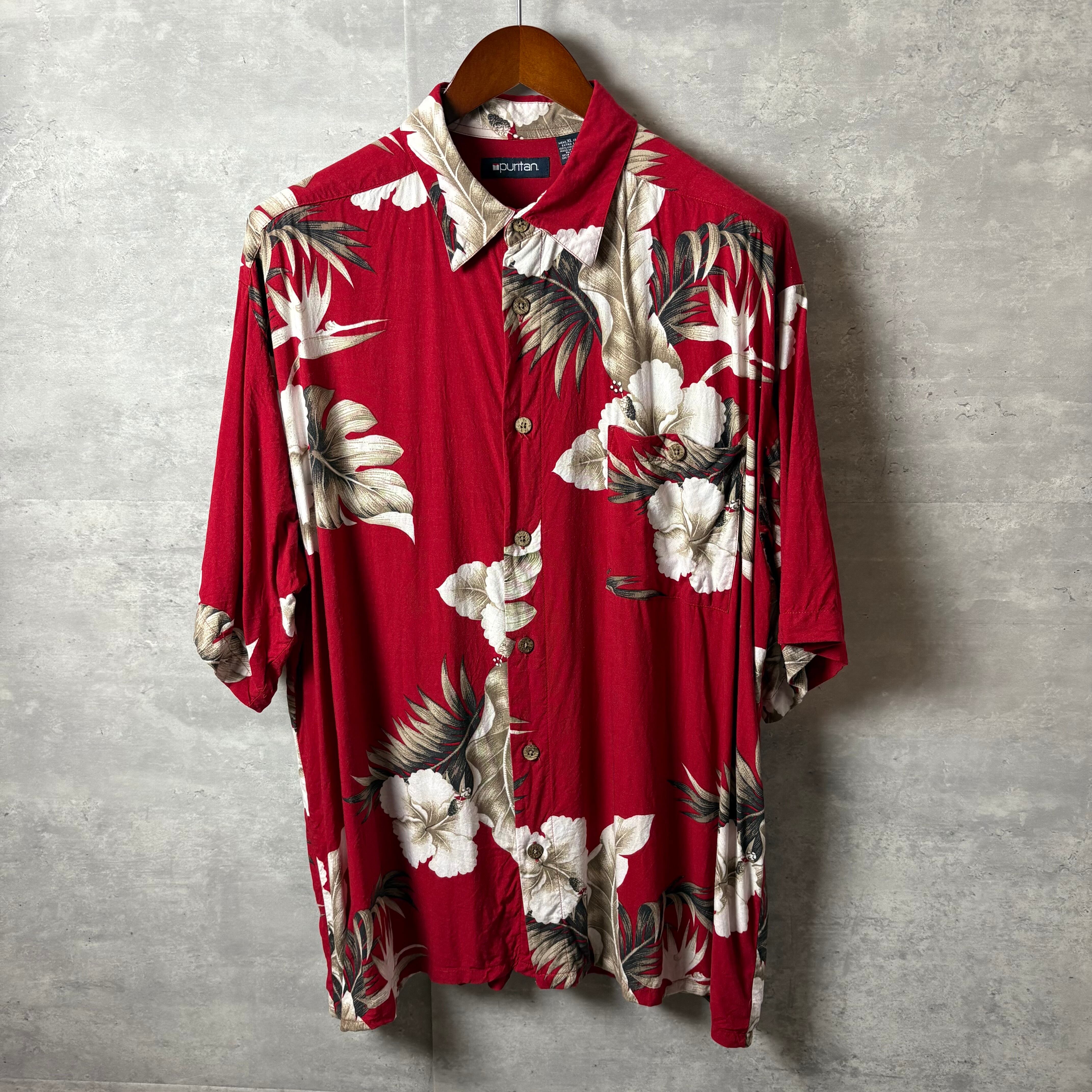 Puritan アロハシャツ 半袖 花柄 レーヨン XL レッド