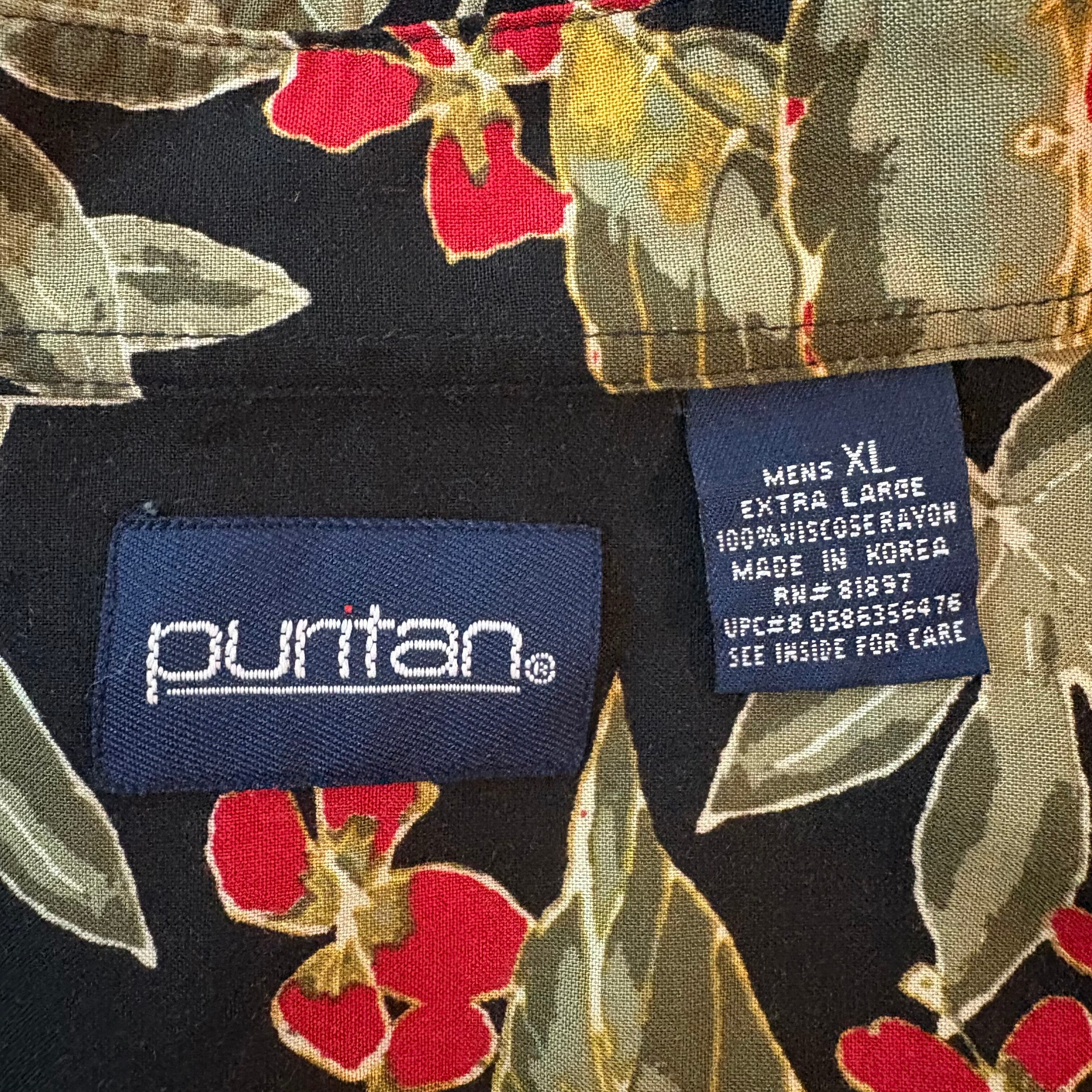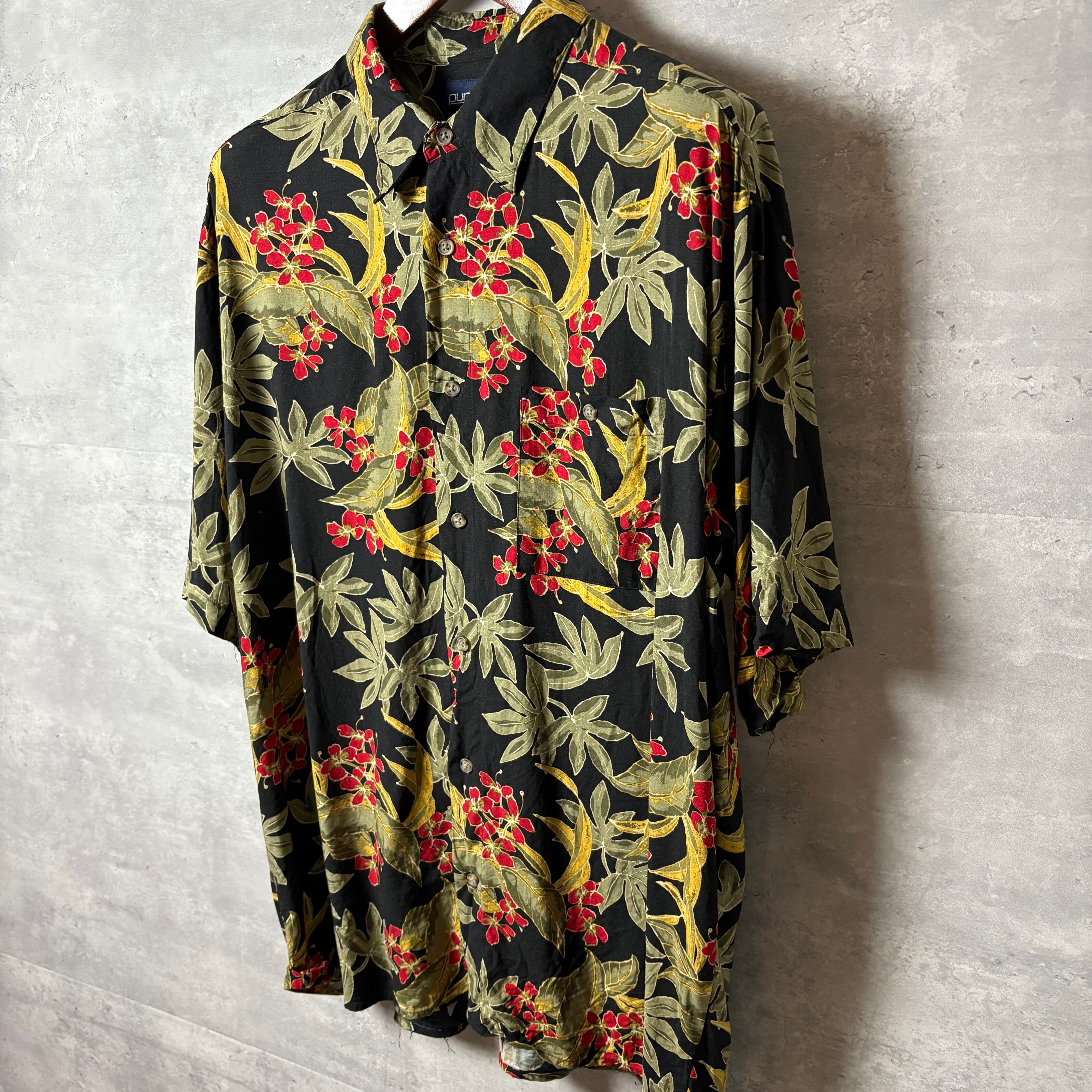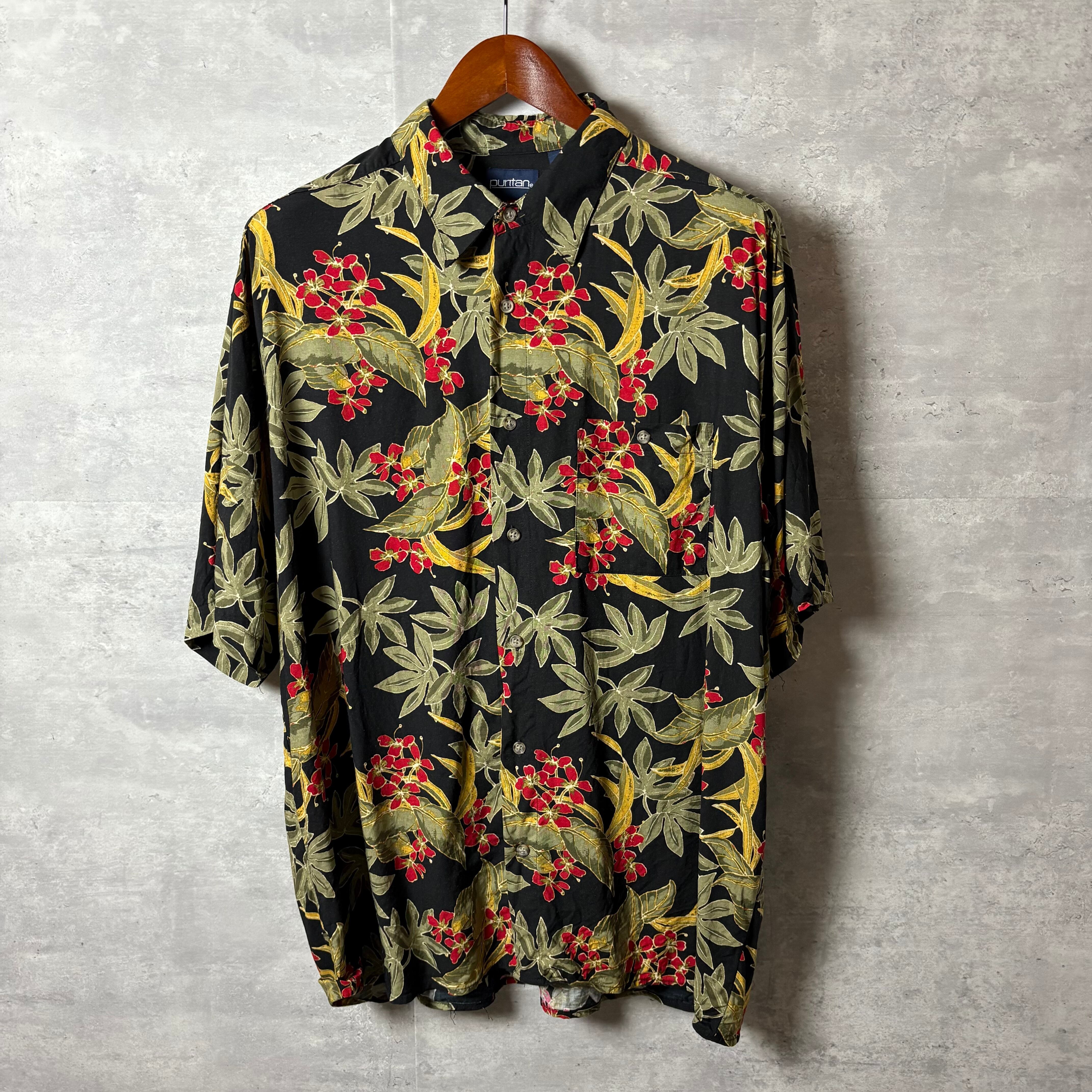 Puritan 90s ヴィンテージ レーヨン アロハシャツ XL 黒×緑×赤