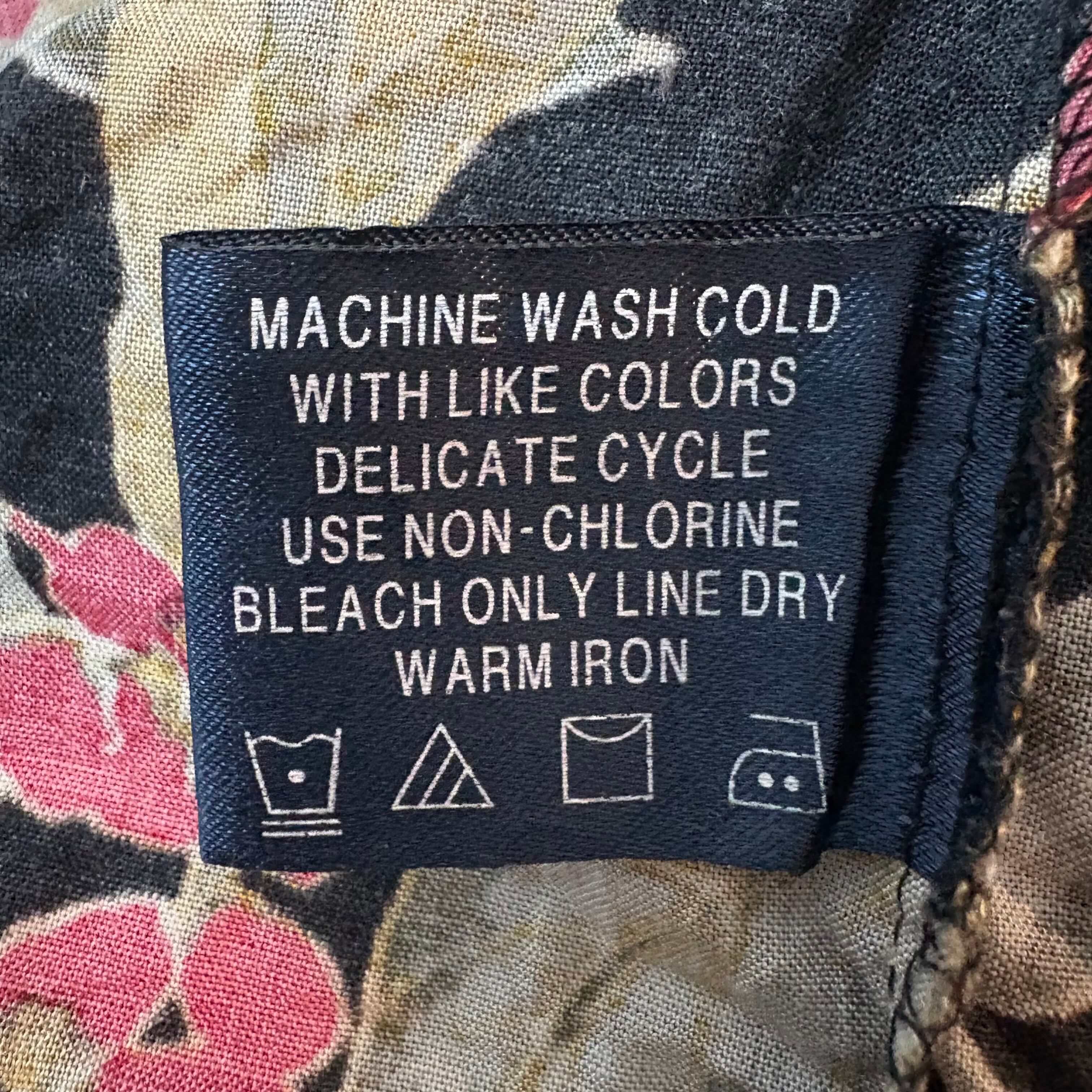 - 【特徴】: レーヨン素材の柔らかい着心地。赤い花と緑葉のトロピカルパターンが特徴的。
