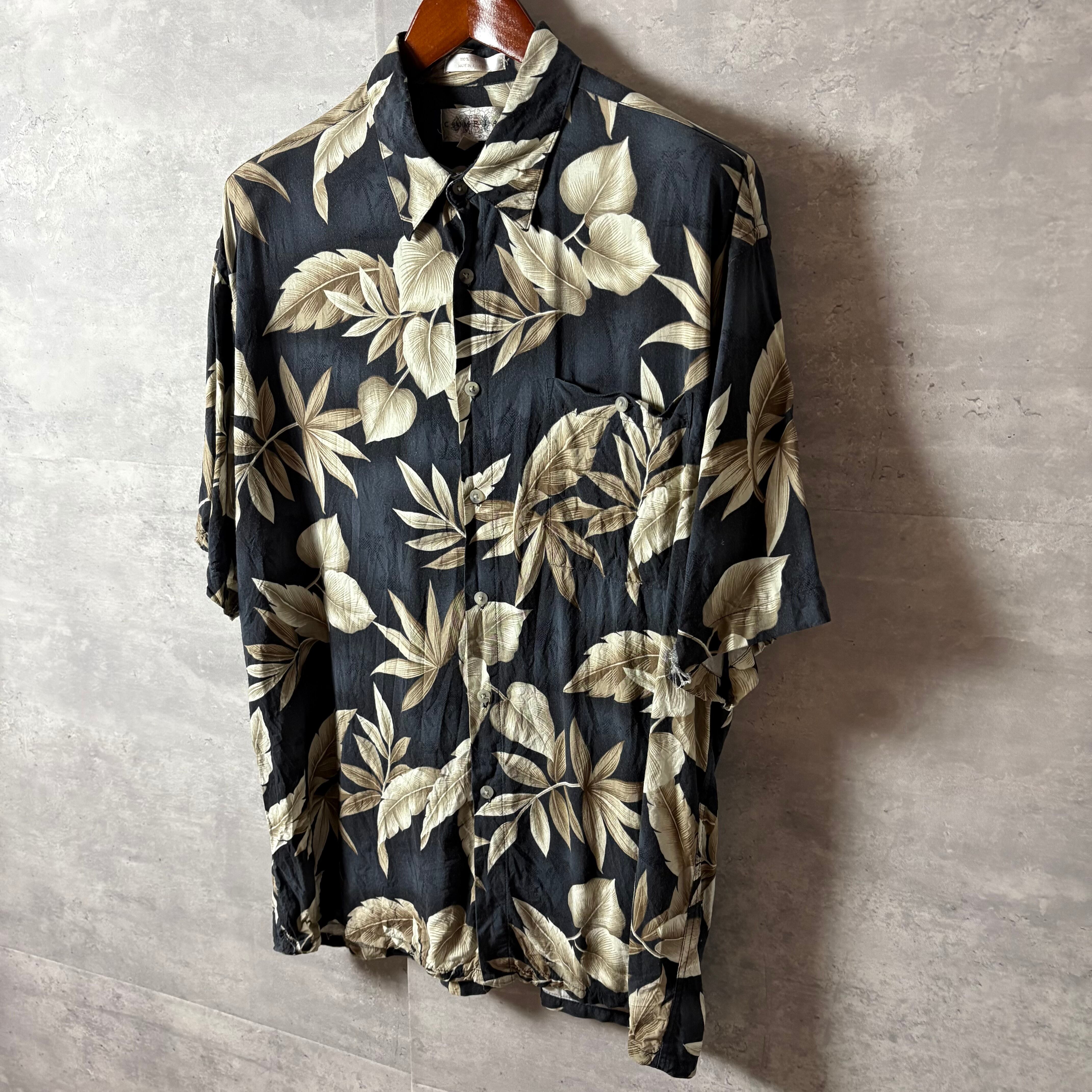 - 【特徴】: リーフ柄総柄、レーヨンの落ち感、胸ポケット、ゆったりXL、90s〜00s前半相当
