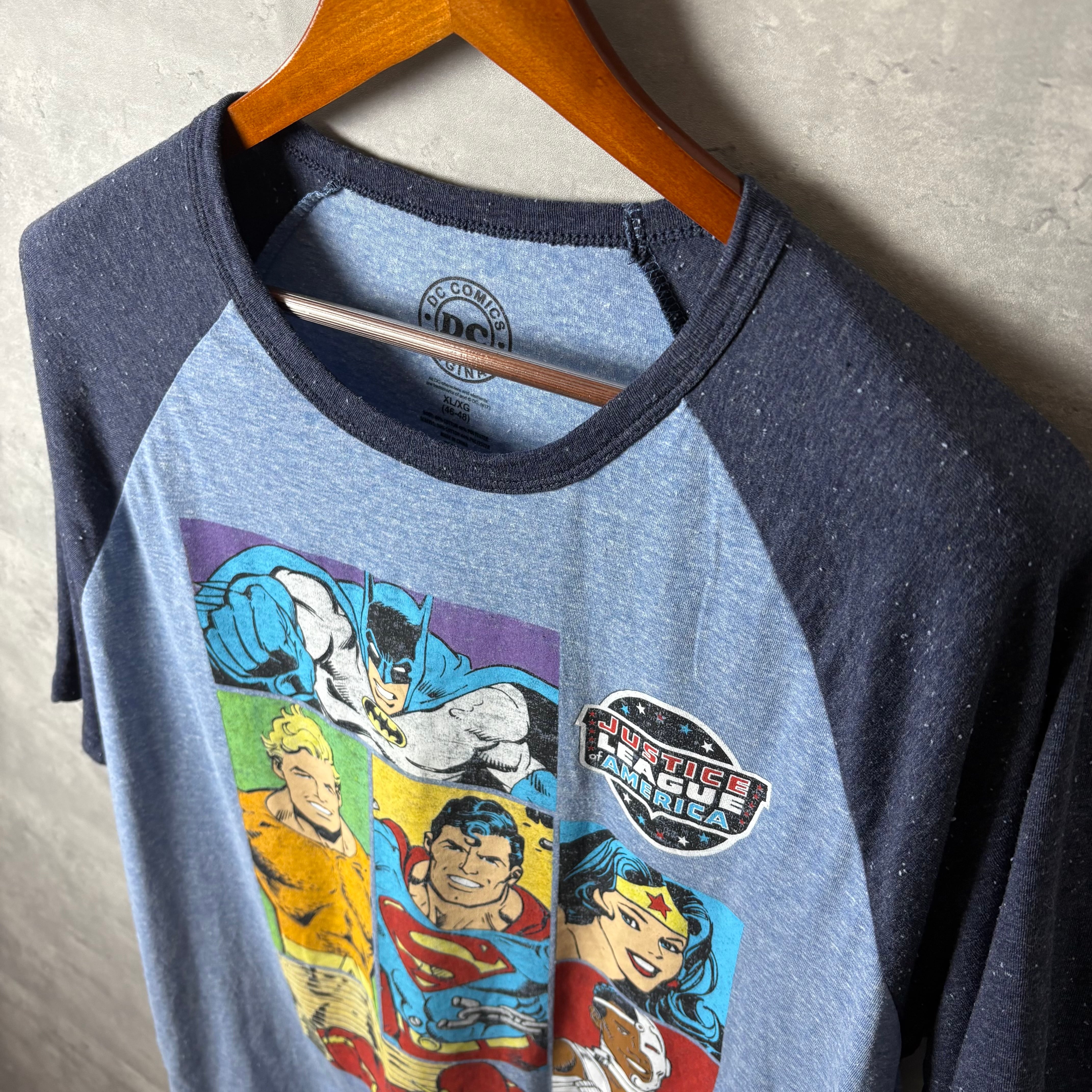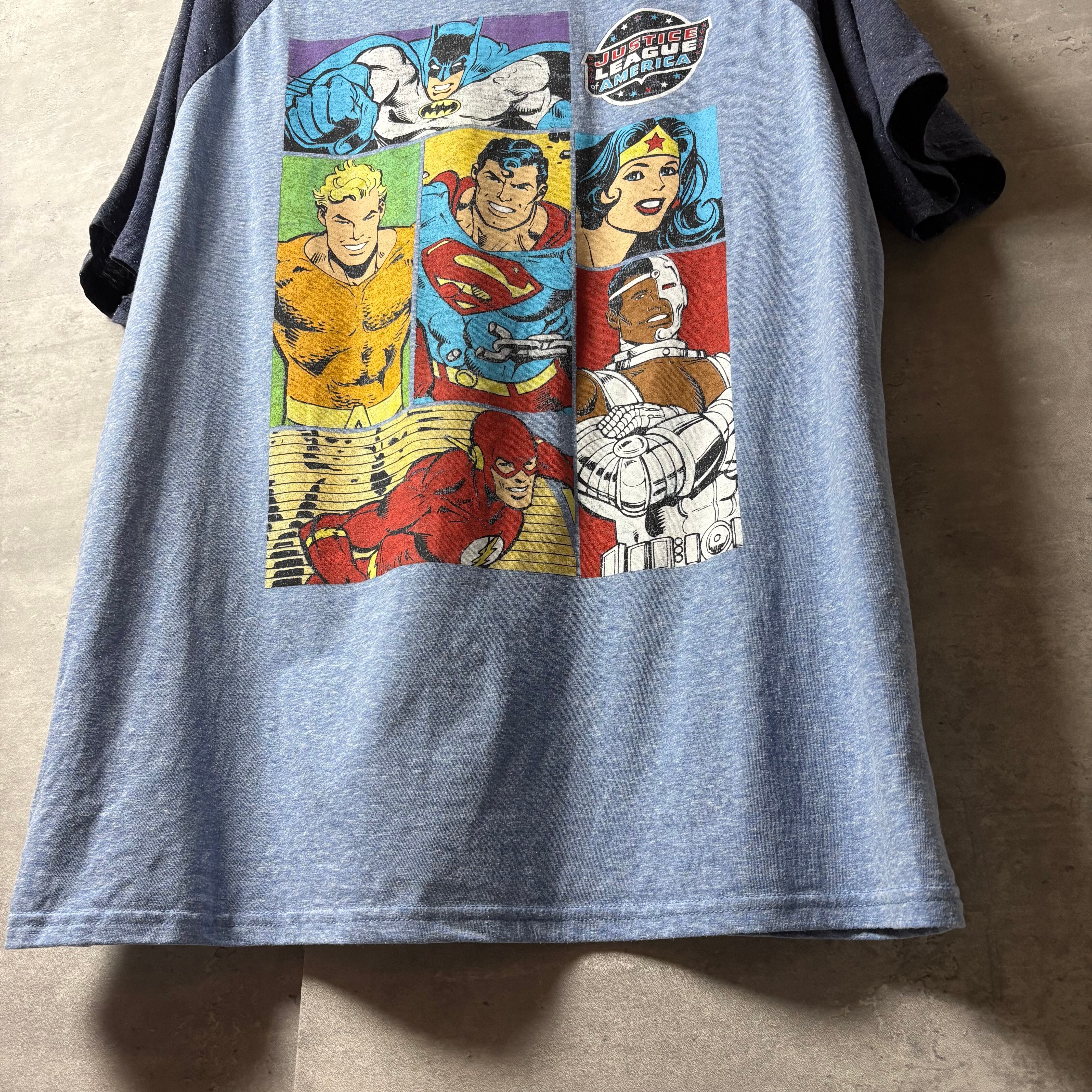 DC, DC COMICS, ジャスティスリーグ, バットマン, スーパーマン, ワンダーウーマン, フラッシュ, サイボーグ, アクアマン, キャラT, アメコミT, ラグラン, XL, 古着コーデ