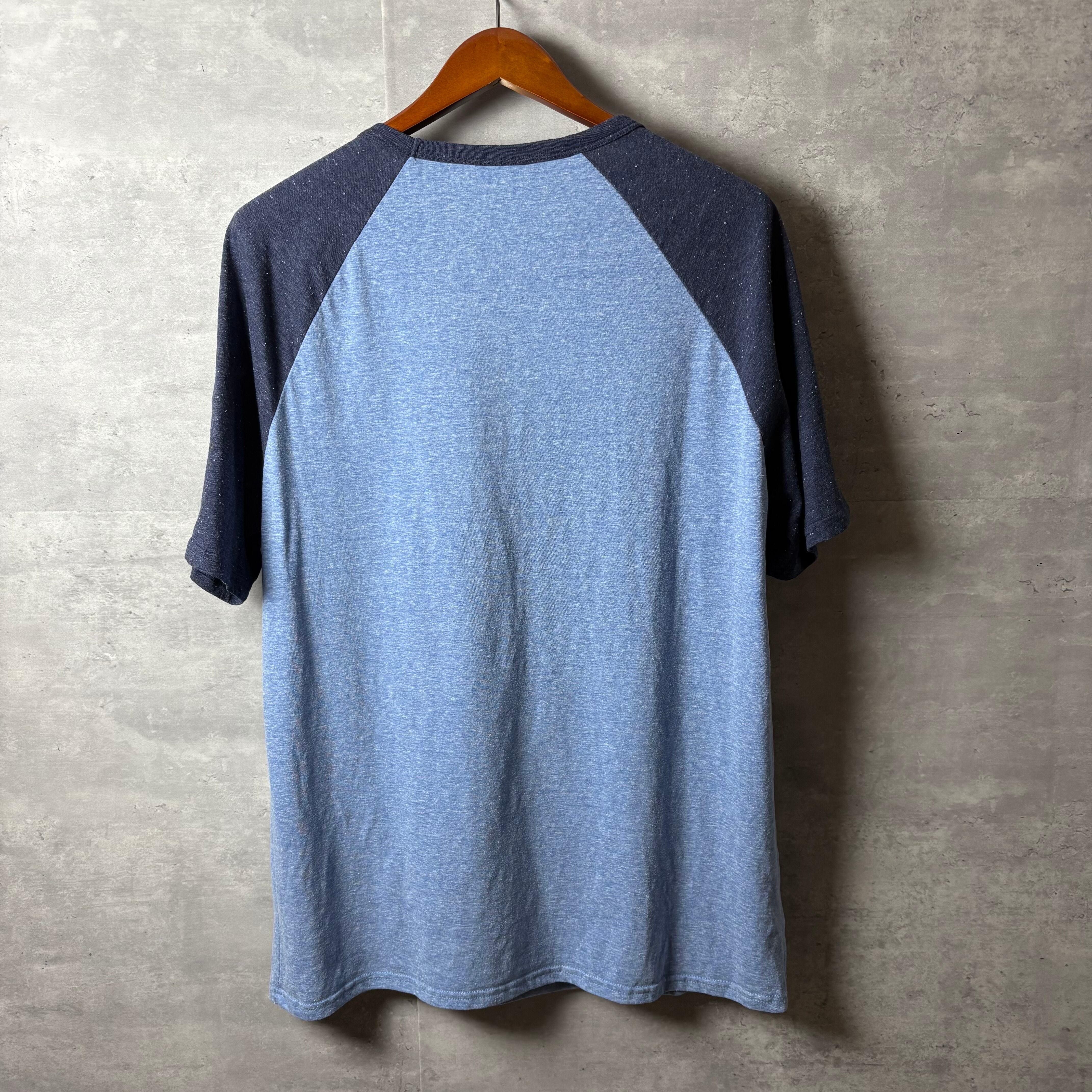 人気ヒーローが揃うマルチキャラ絵柄に、配色ラグランが映える一枚。デニムやチノ、黒スラックスまで幅広く合わせやすいです。軽いフェードは古着らしい雰囲気として楽しめます。気になる部分は当て布補強で長くご着用いただけます。