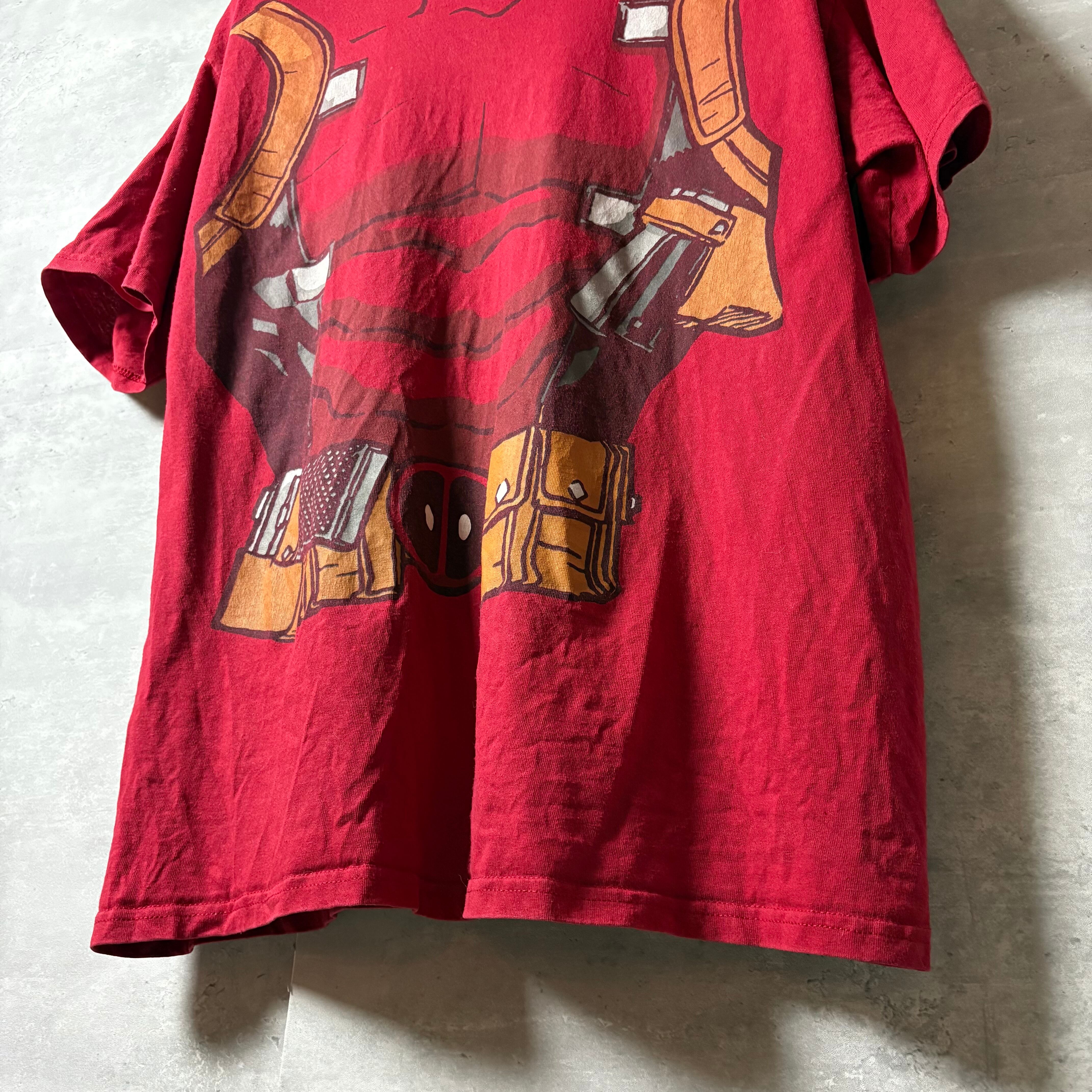 MARVEL, デッドプール, グラフィックT, アメコミ, 映画Tシャツ, 半袖, XL, レッド, ロゴT, 古着