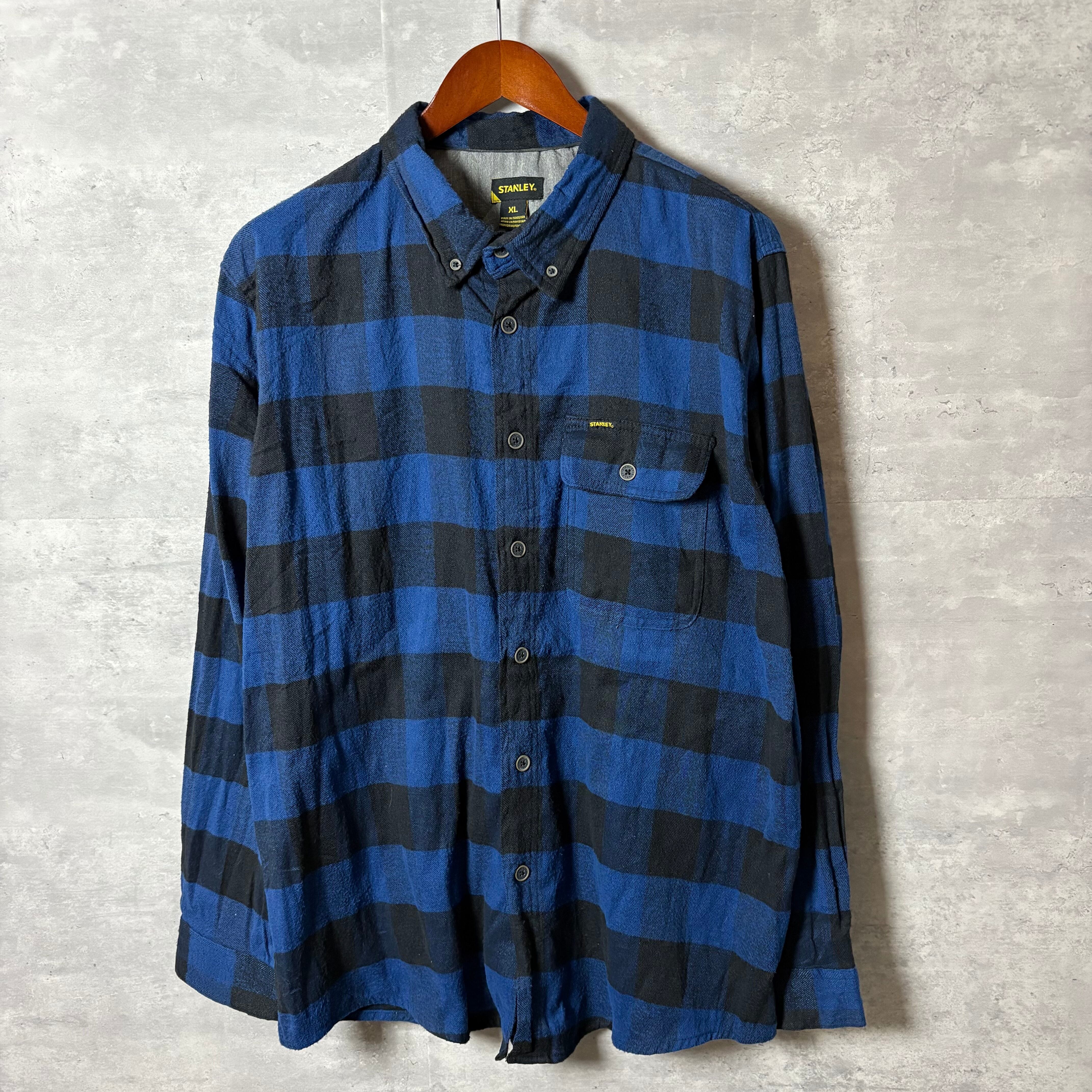 STANLEY フランネル長袖シャツ 大柄チェック XL 青黒