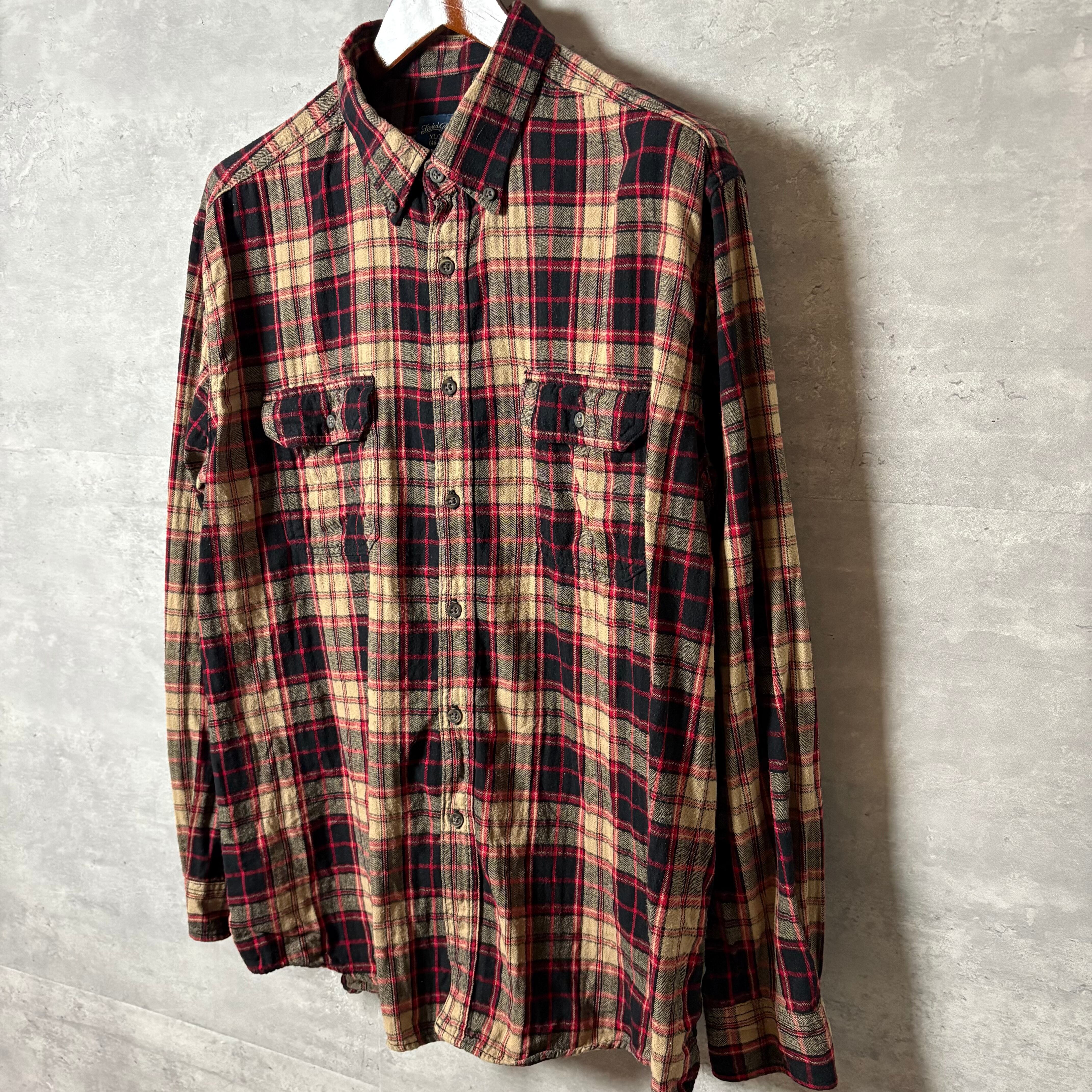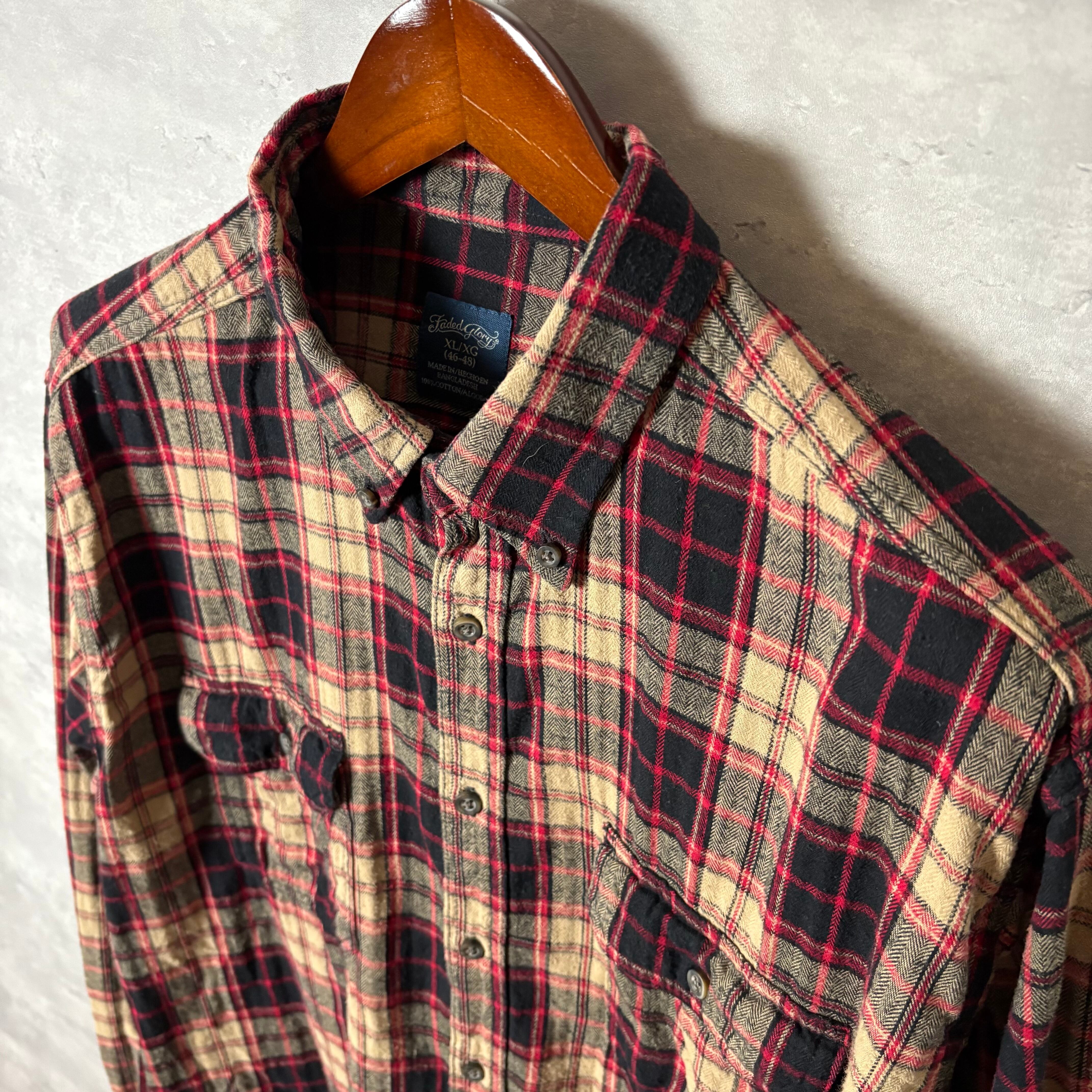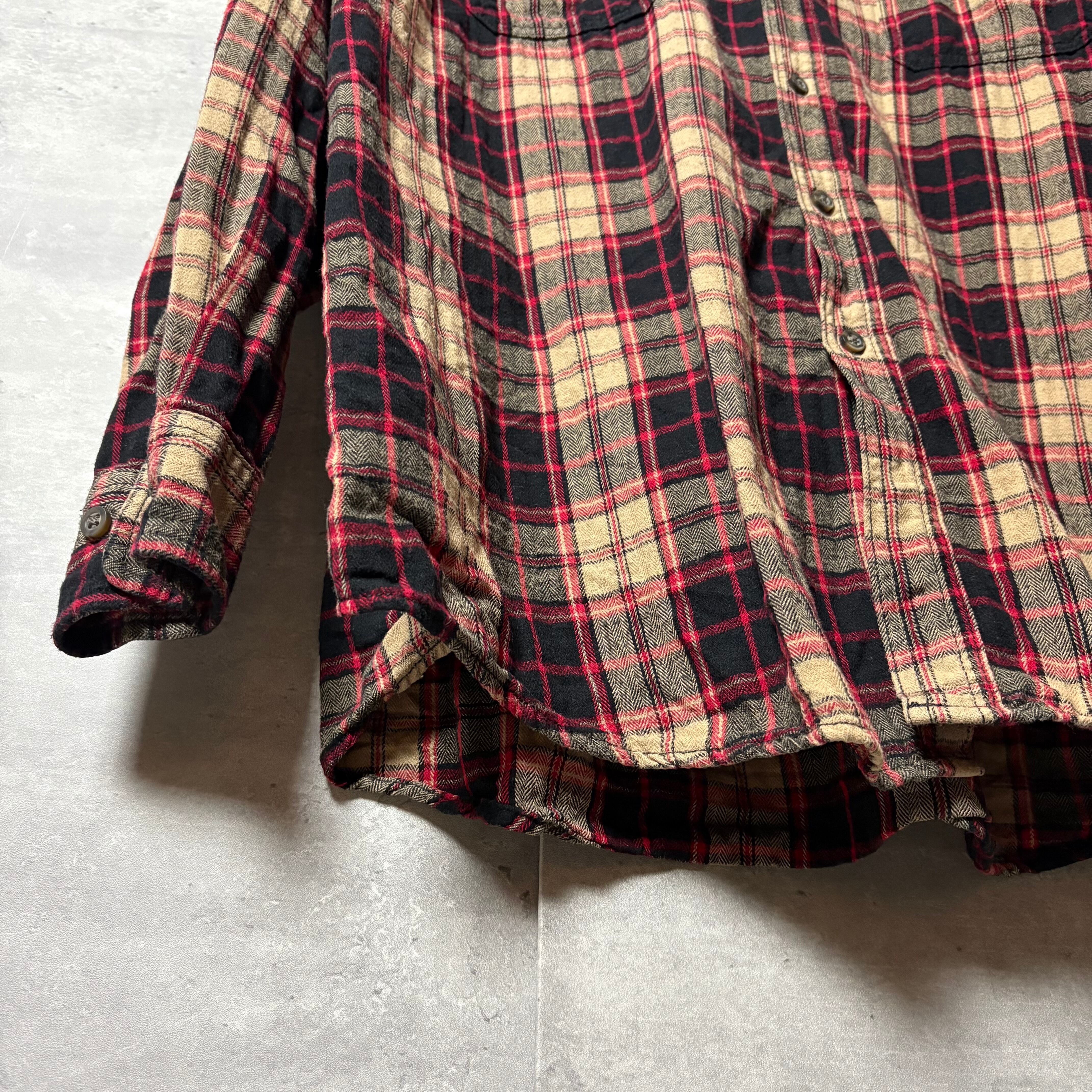 Faded Glory フランネル長袖シャツ チェック柄 XL ベージュ×黒×赤