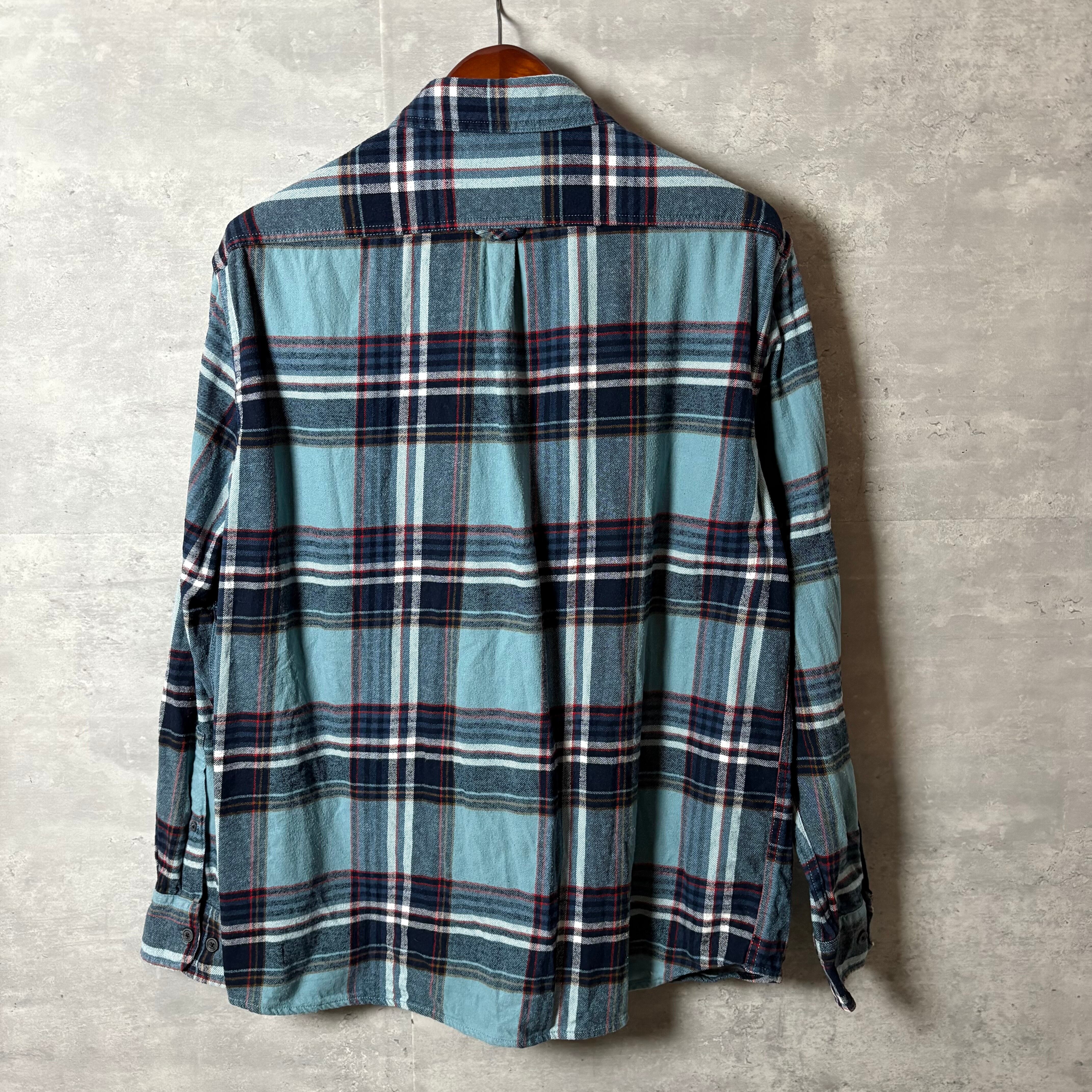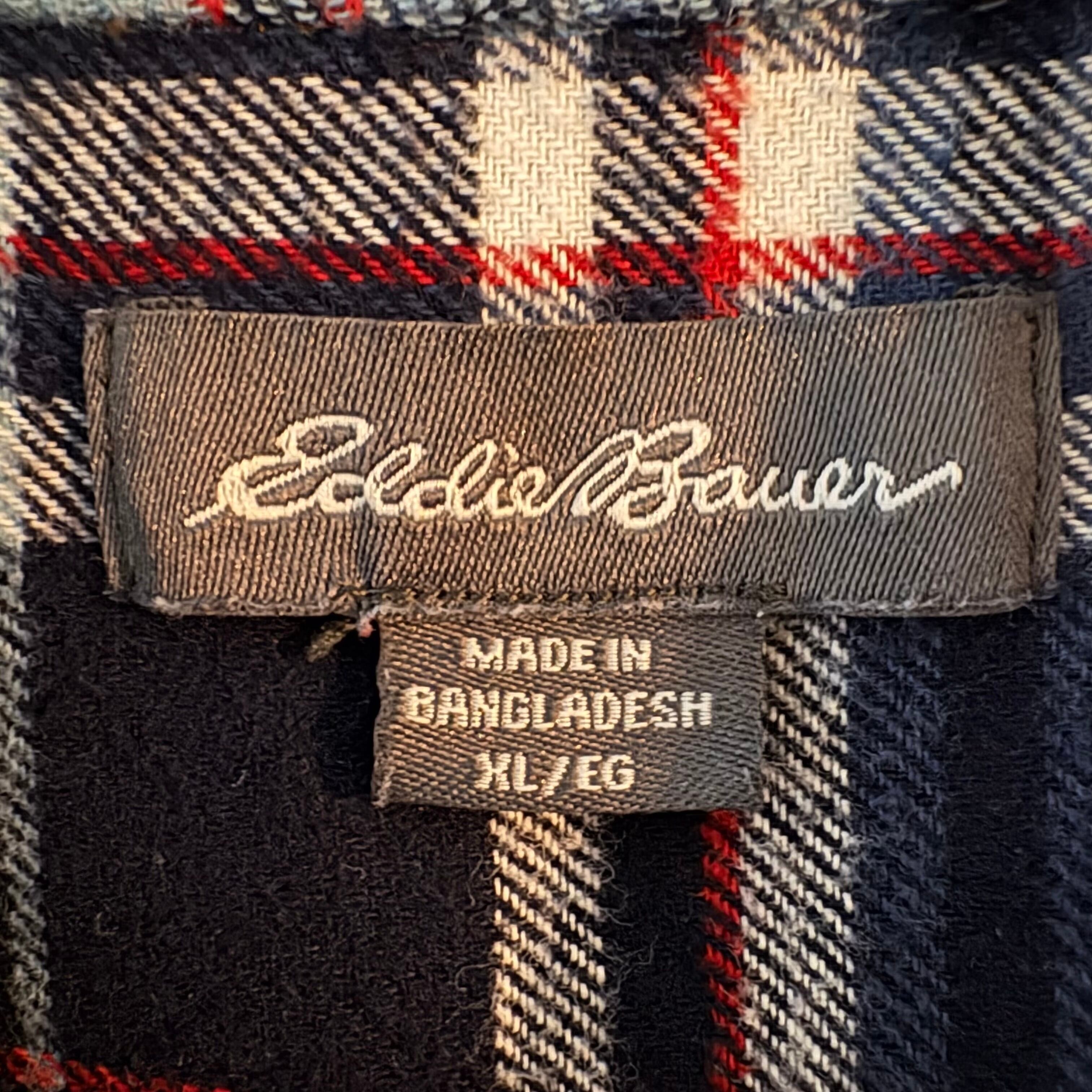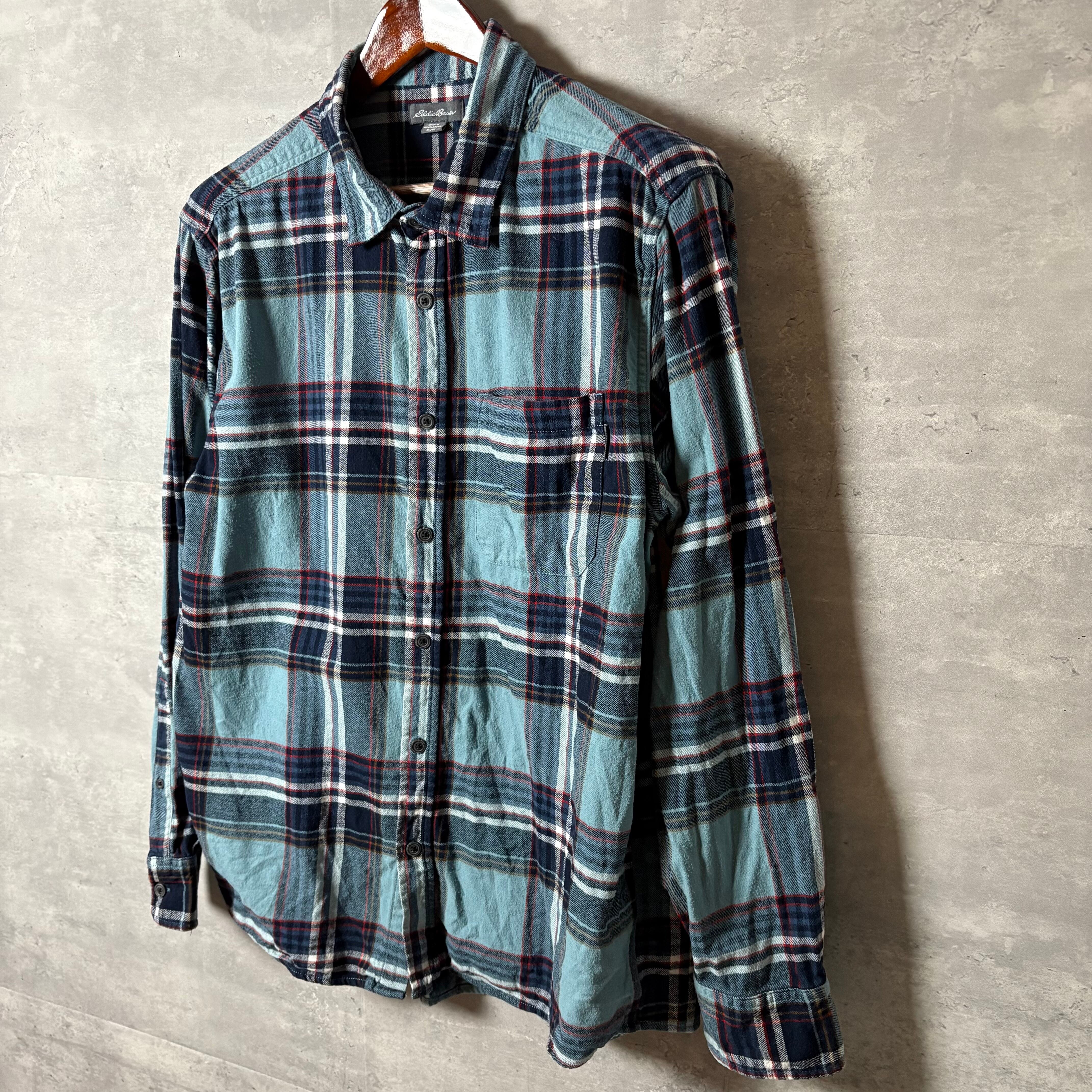 Eddie Bauer フランネルチェックシャツ 長袖 XL ブルー系×ネイビー