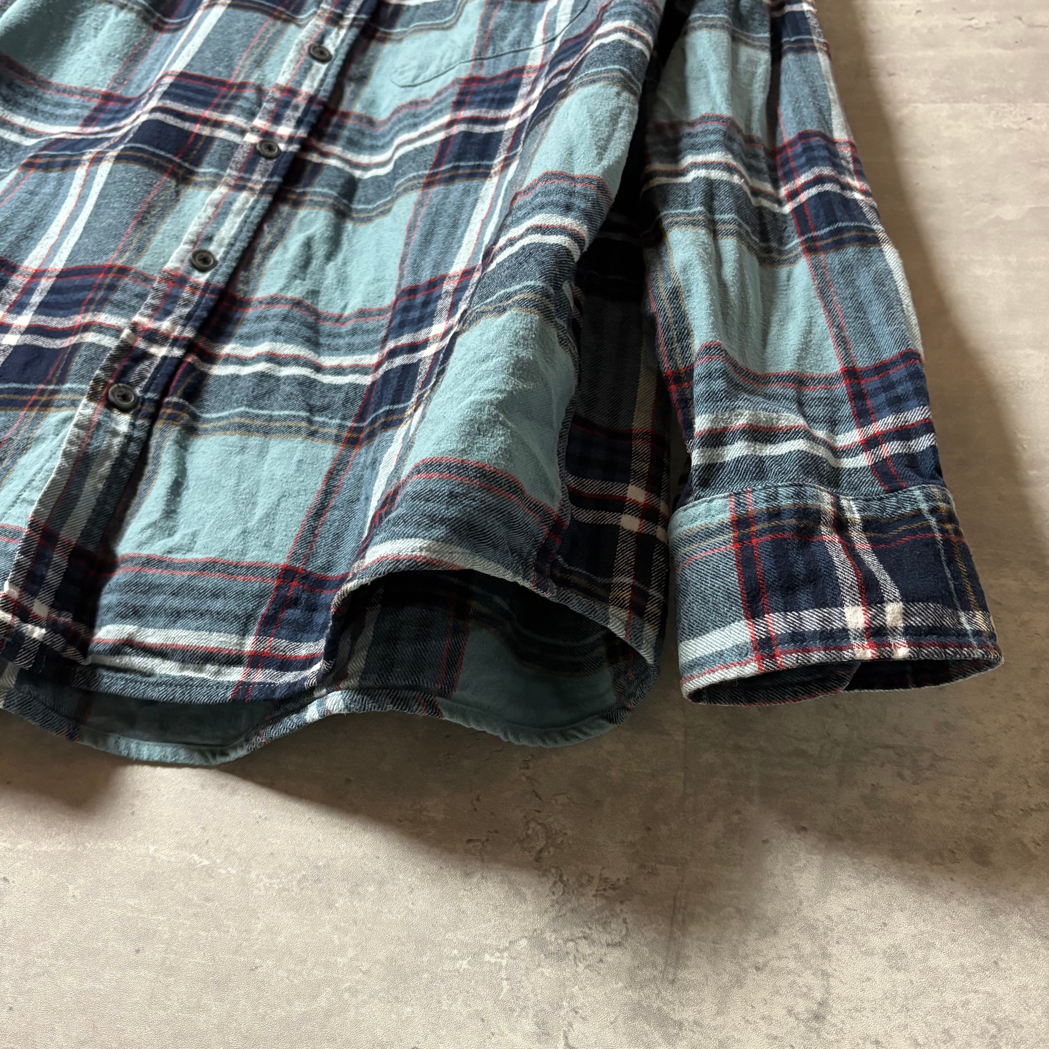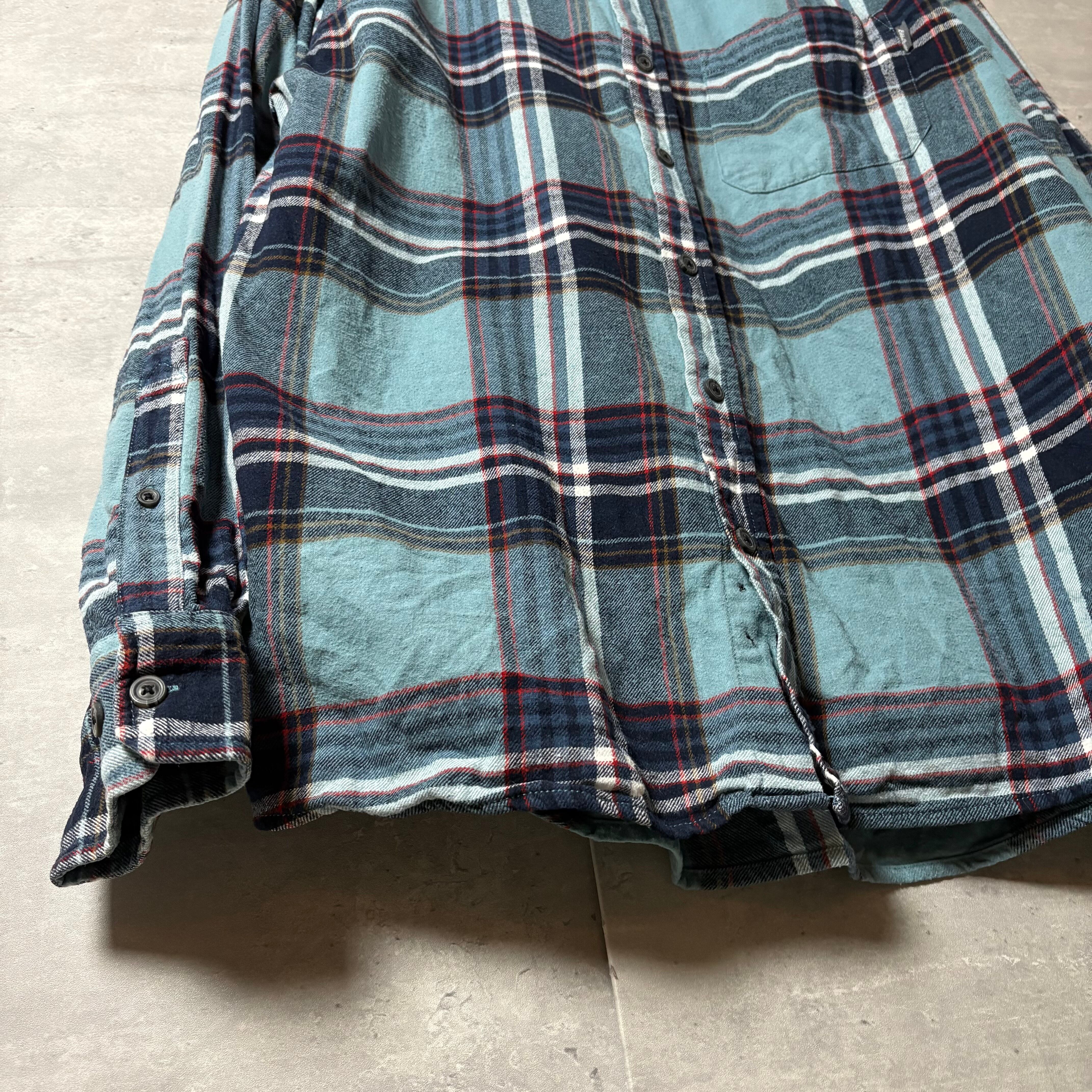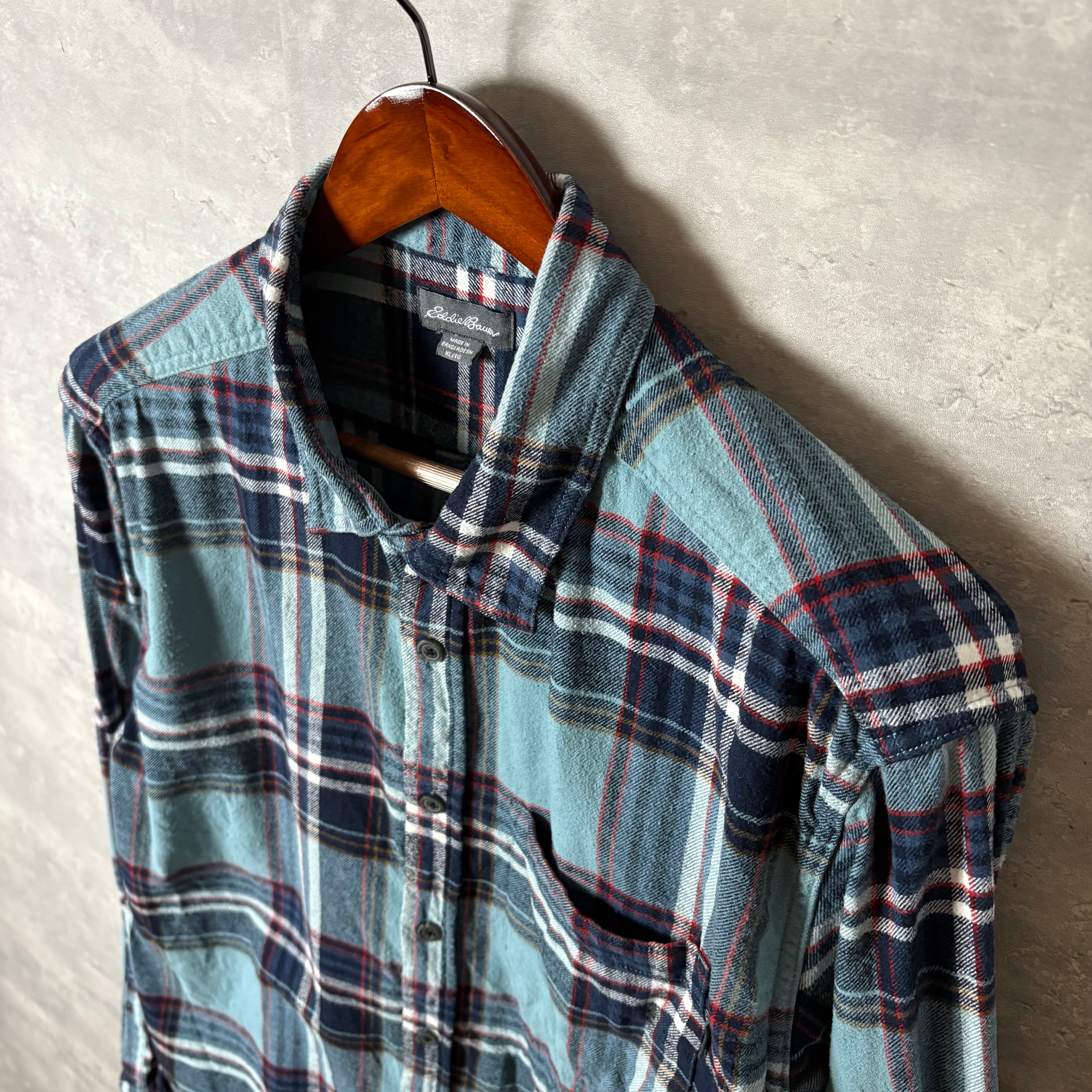 Eddie Bauer フランネルチェックシャツ 長袖 XL ブルー系×ネイビー