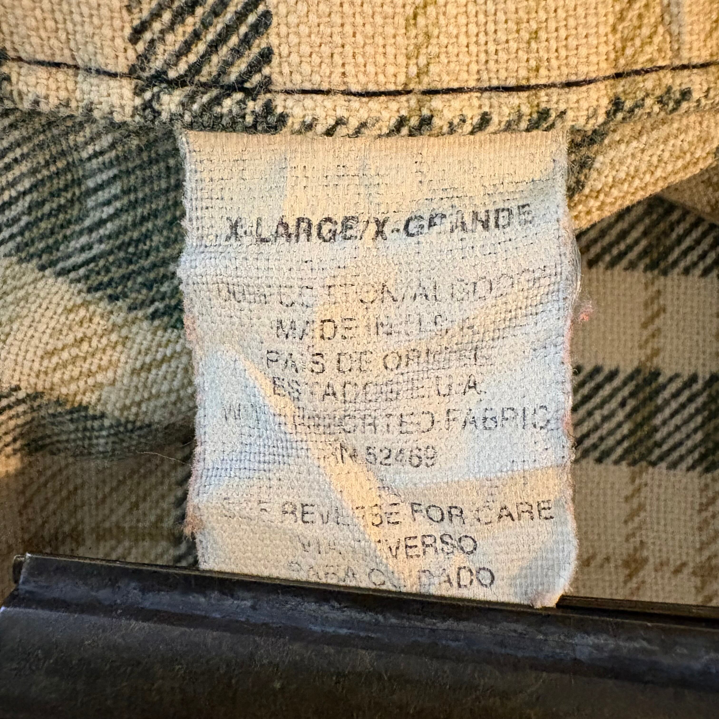 落ち着いたグリーン×ベージュの好配色で、ワーク・アウトドア・アメカジと幅広く活躍。Tシャツの上から羽織るだけで季節感のある古着コーデが完成します。経年の色褪せやスレは古着ならではの味わいとしてお楽しみください。気になる箇所はリペア・リステッチで再生しながら長く着用いただけます。