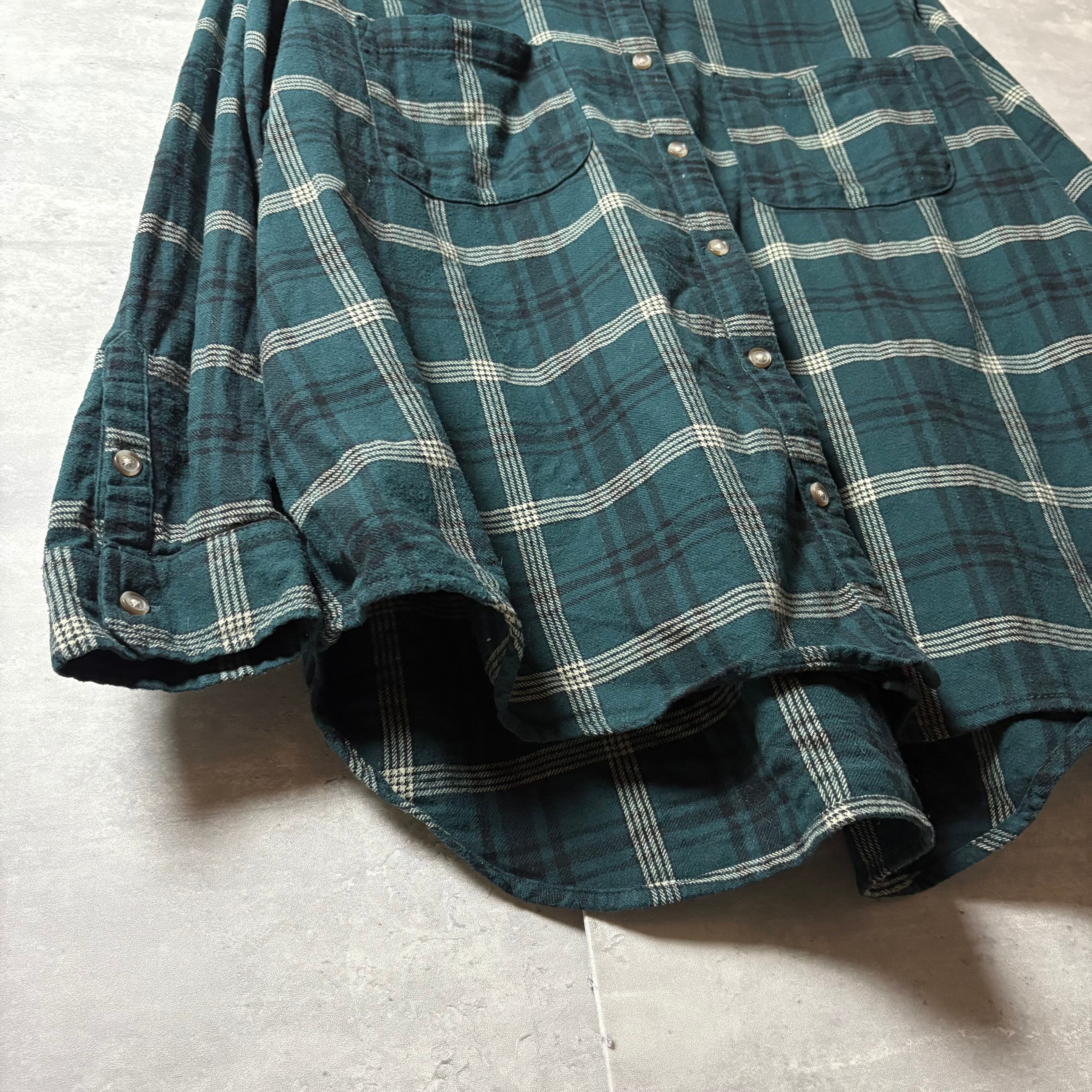 レディース, メンズ可, チェックシャツ, フランネル, ネルシャツ, XL, 緑チェック, カジュアル, 古着, 秋冬