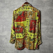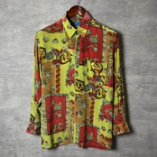 海の生き物をあしらった独特のアート柄が魅力の長袖シャツ。派手な配色で、春夏のアクセントアイテムにぴったり。シンプルなボトムスと合わせて主役コーデが完成します。