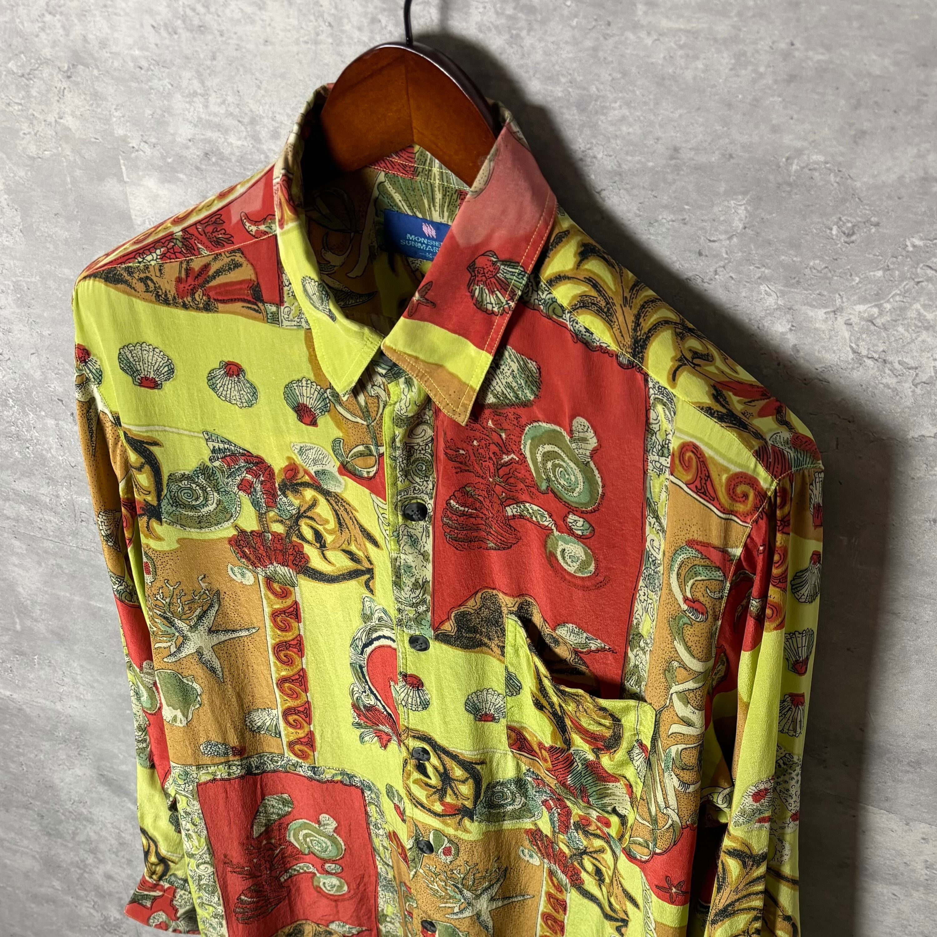 MONSIEUR SUNMARUKA 総柄 シーライフ 長袖シャツ M