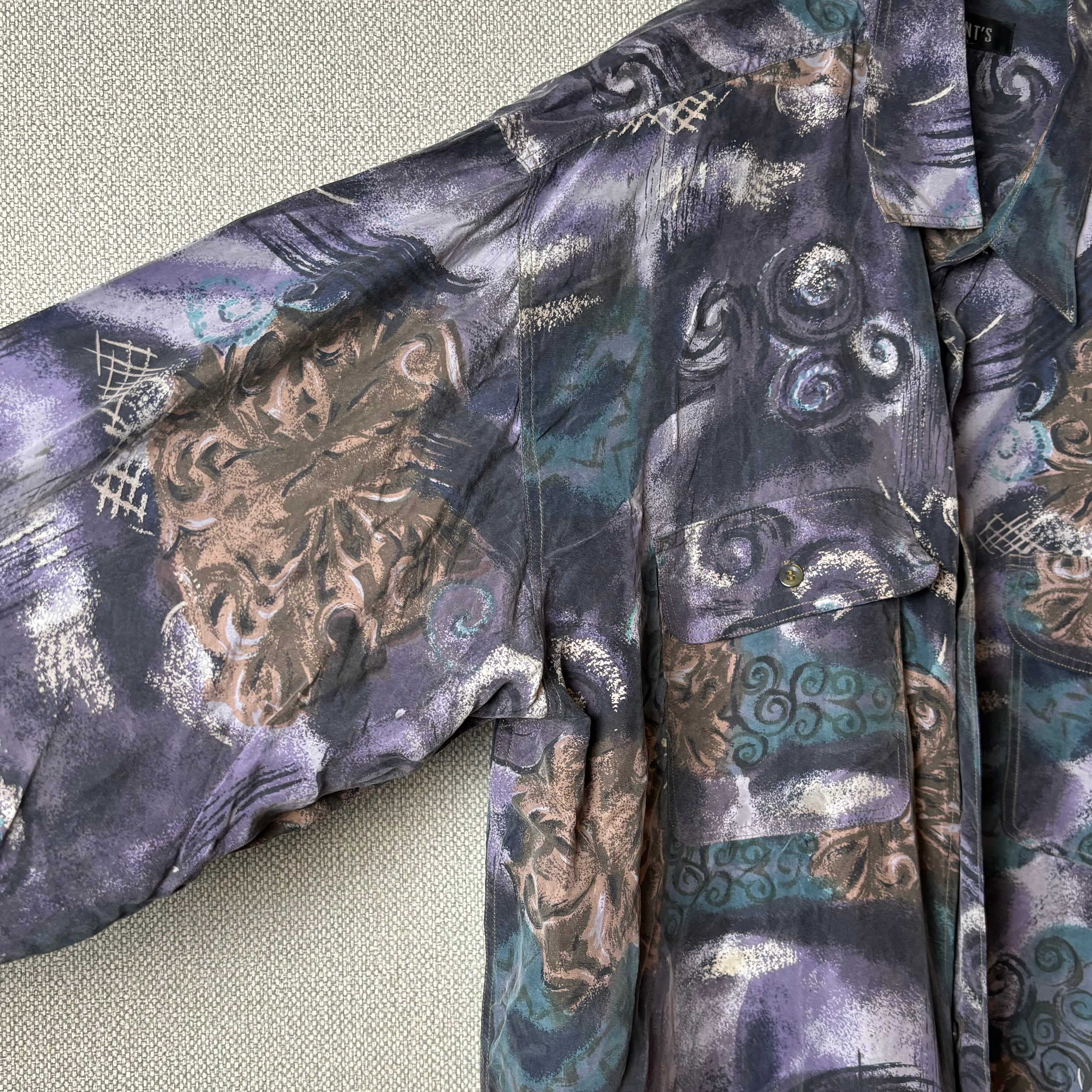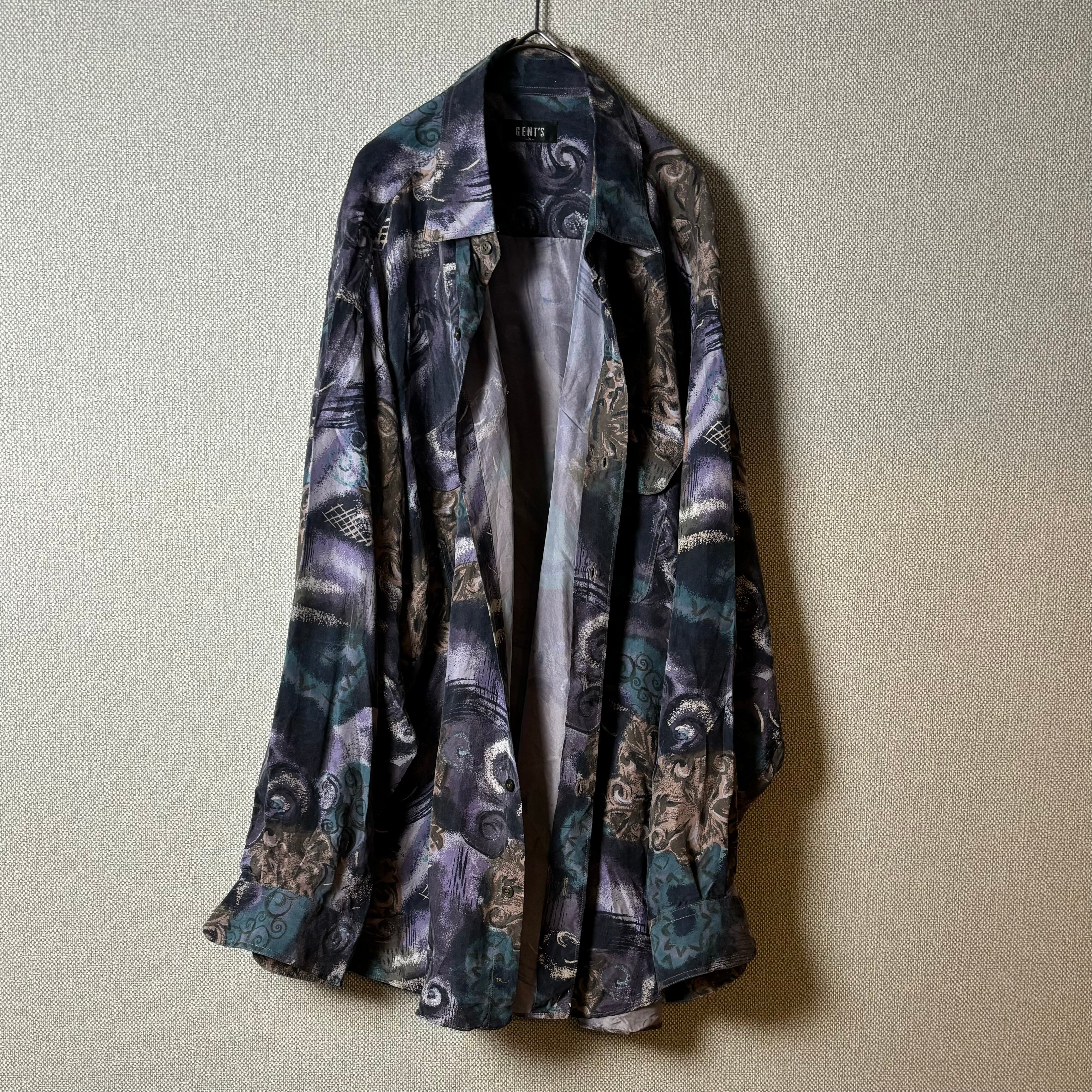 シルク100% 総柄 オーバーサイズ レトロシャツ