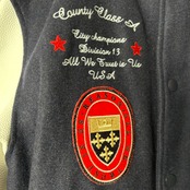 特徴: 両袖と背面に豪華な刺繍ワッペンが施されたスタイリッシュなデザイン。