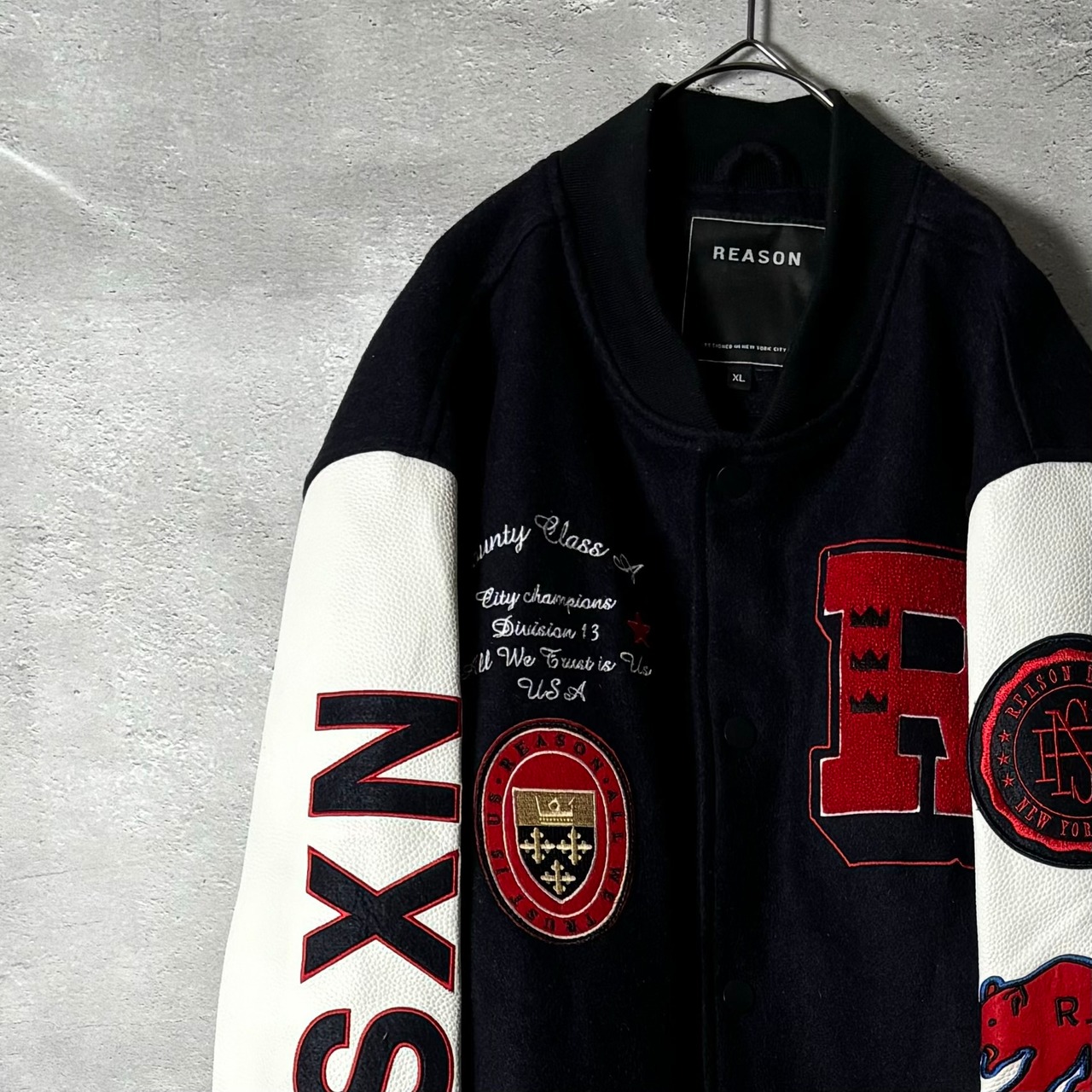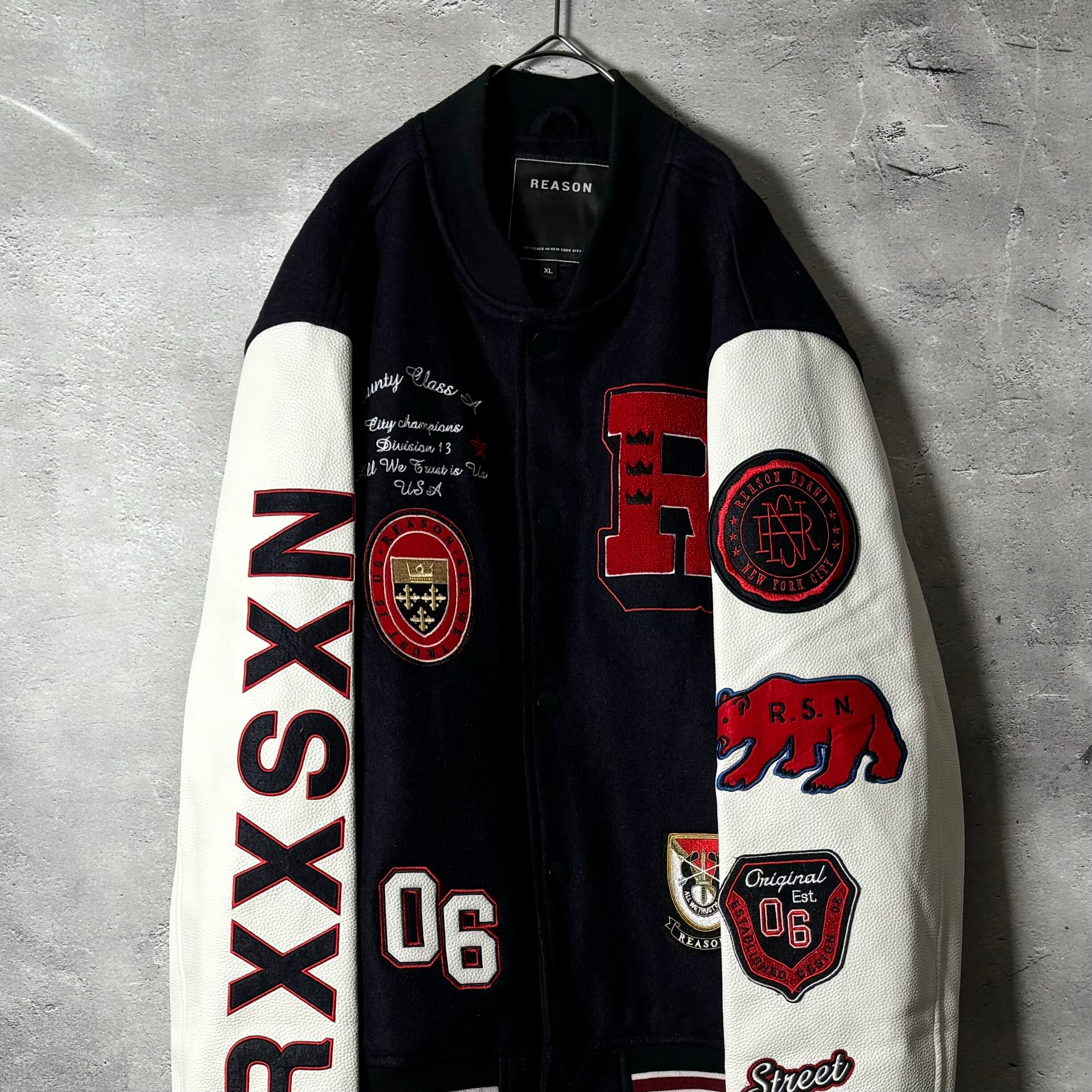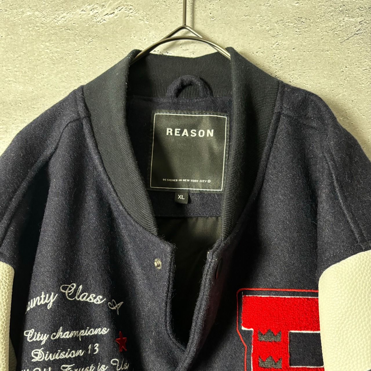 REASON 刺繍入り XL スタジャン ネイビー×ホワイト
