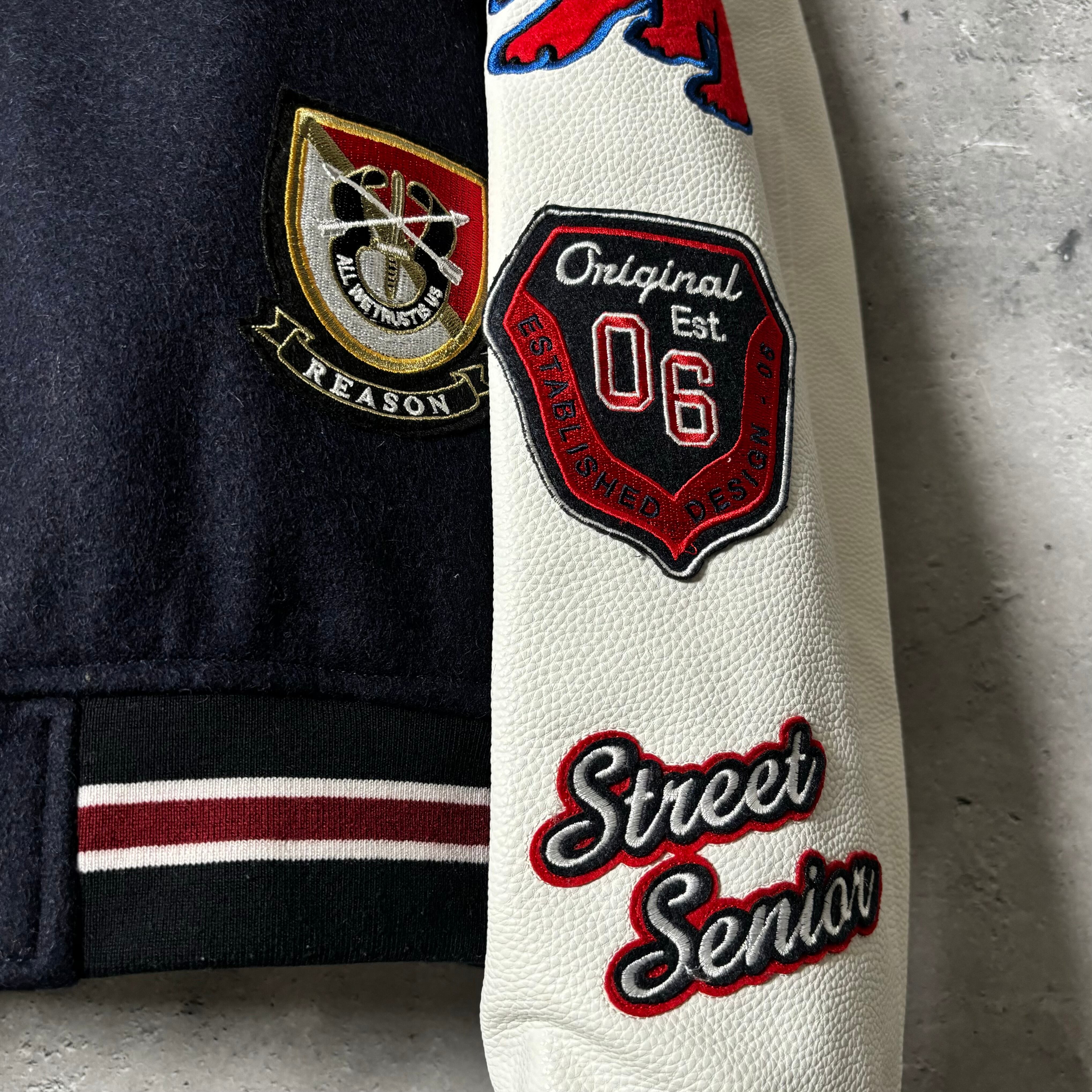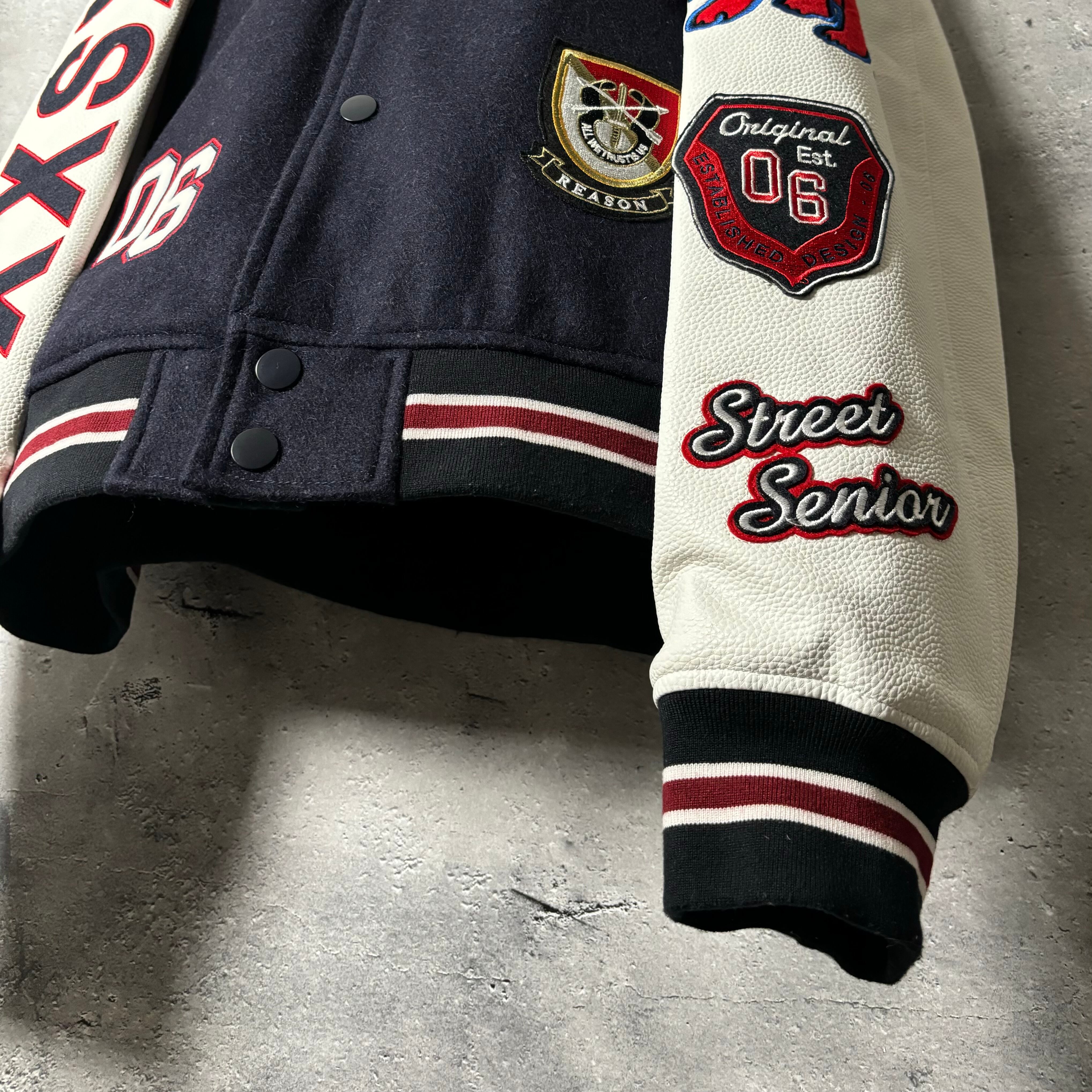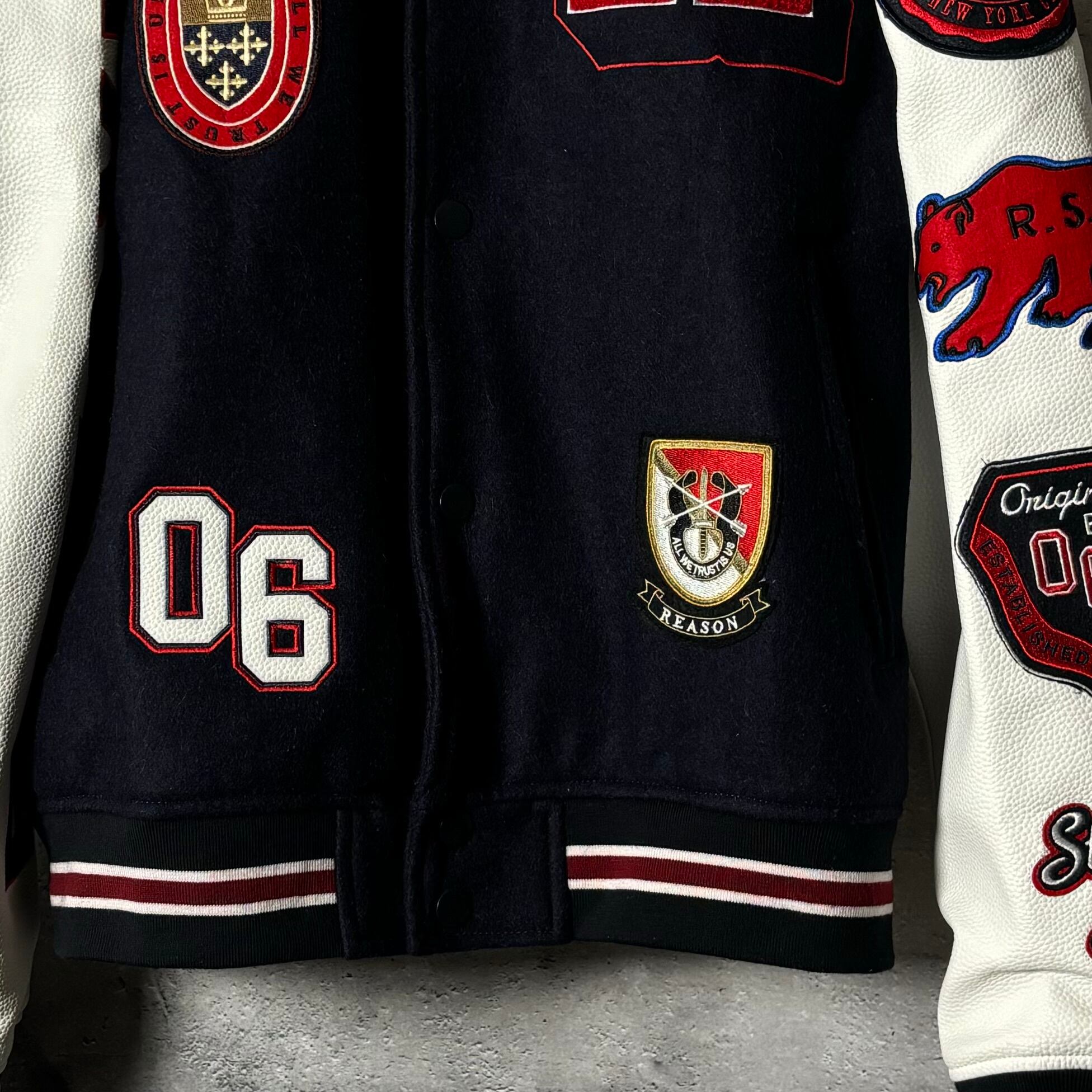 REASON 刺繍入り XL スタジャン ネイビー×ホワイト