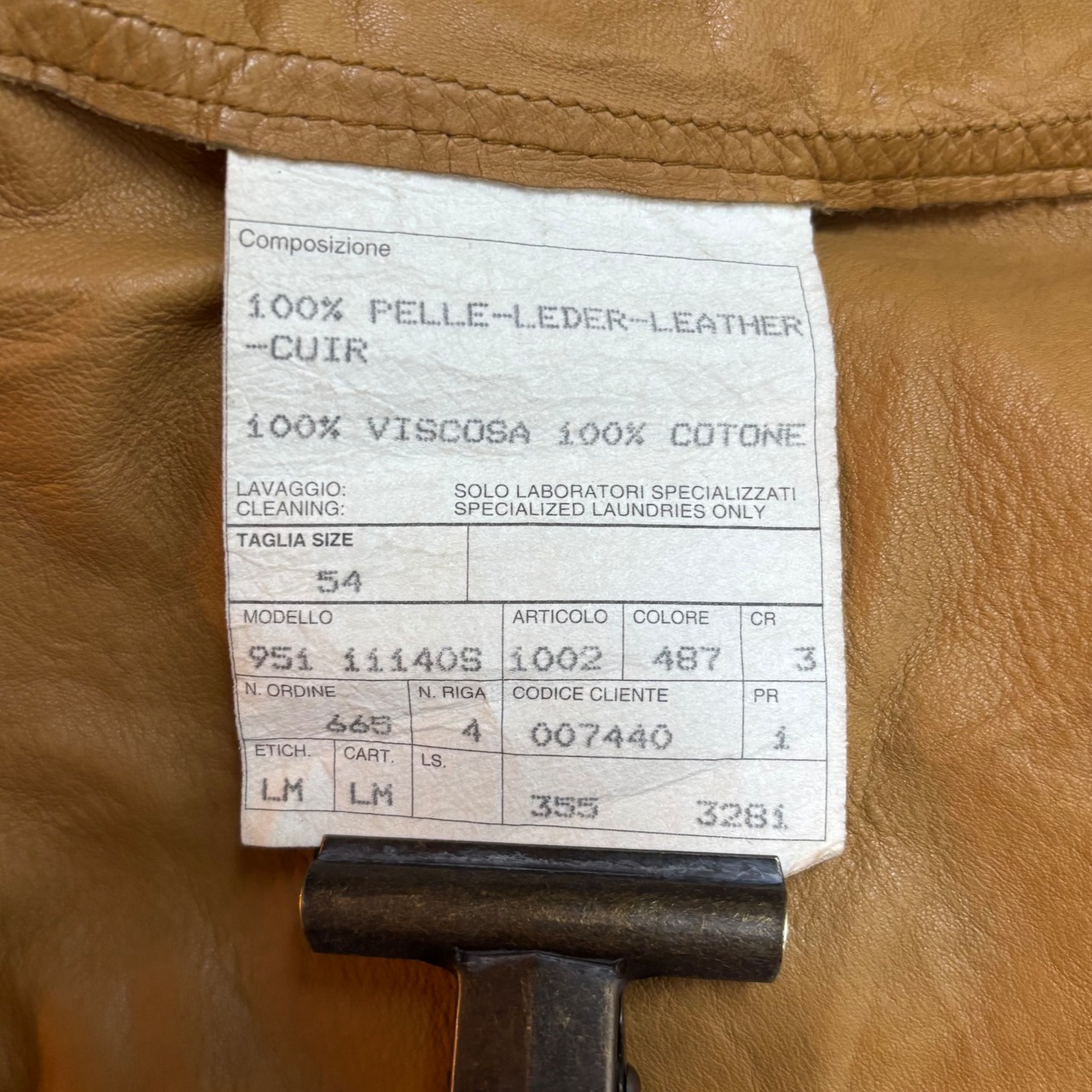 90sテイスト漂うLamattaのイタリア製レザージャケット。スタジャンのような雰囲気と、重厚なレザー素材が組み合わさった一着です。キャメルブラウンの色合いも秀逸で、ワイドパンツやデニム、ミリタリー系との相性も抜群。古着好きにぜひおすすめしたいオールドユーロアイテムです。