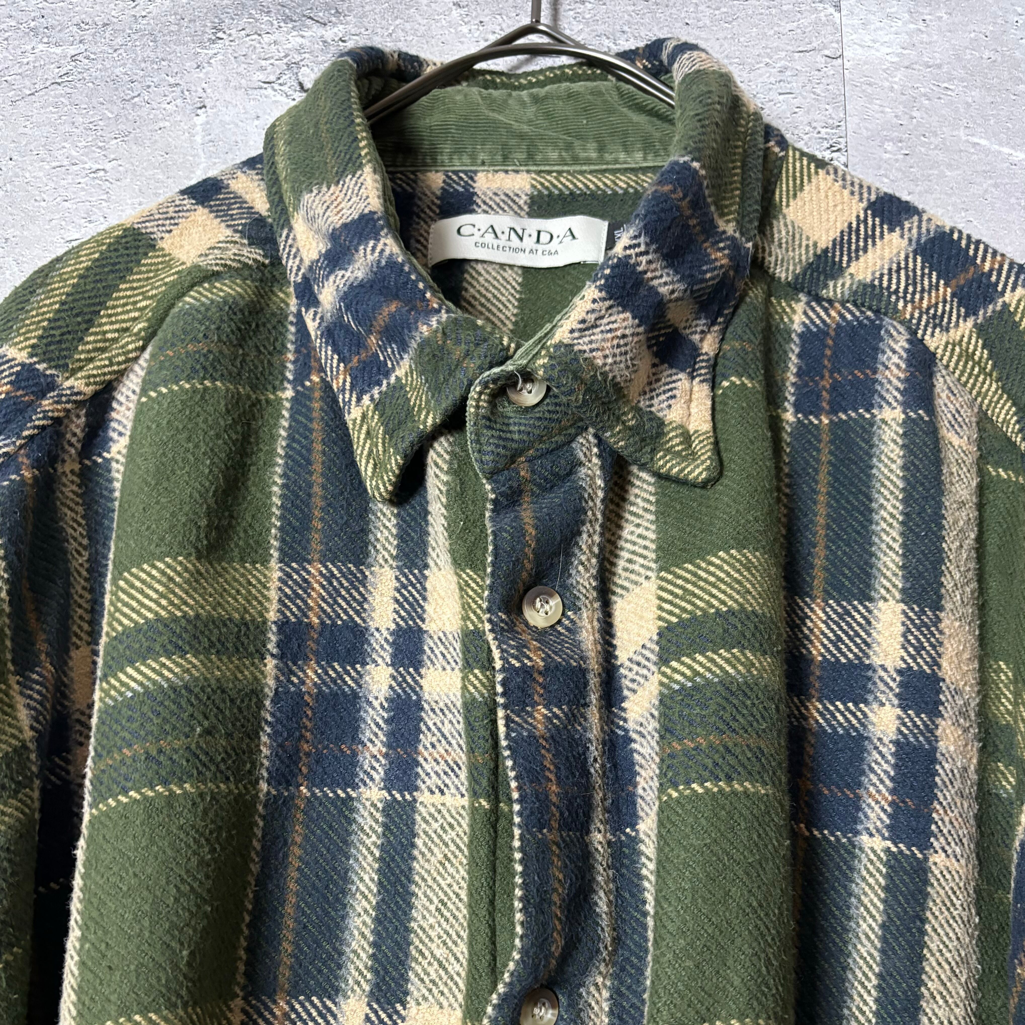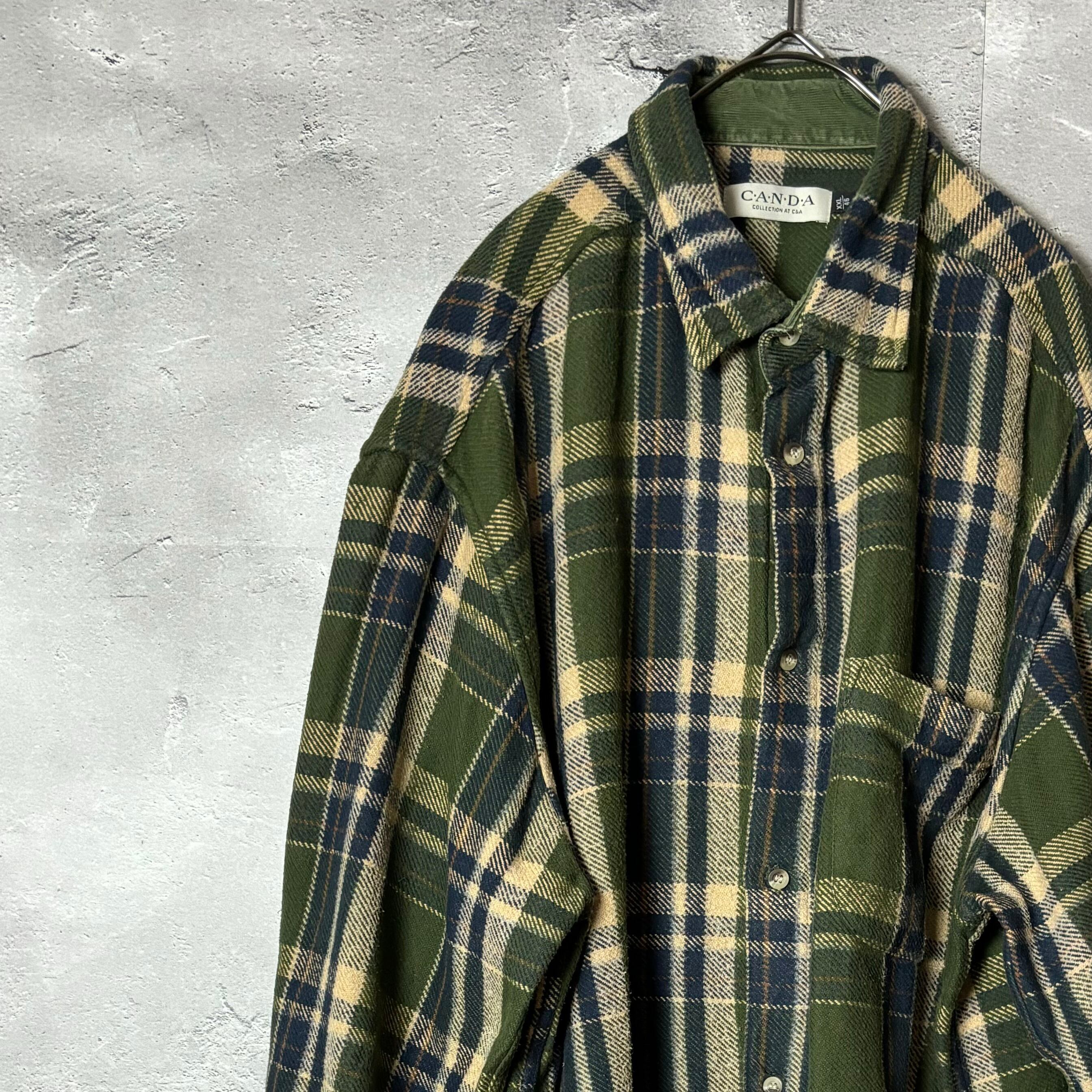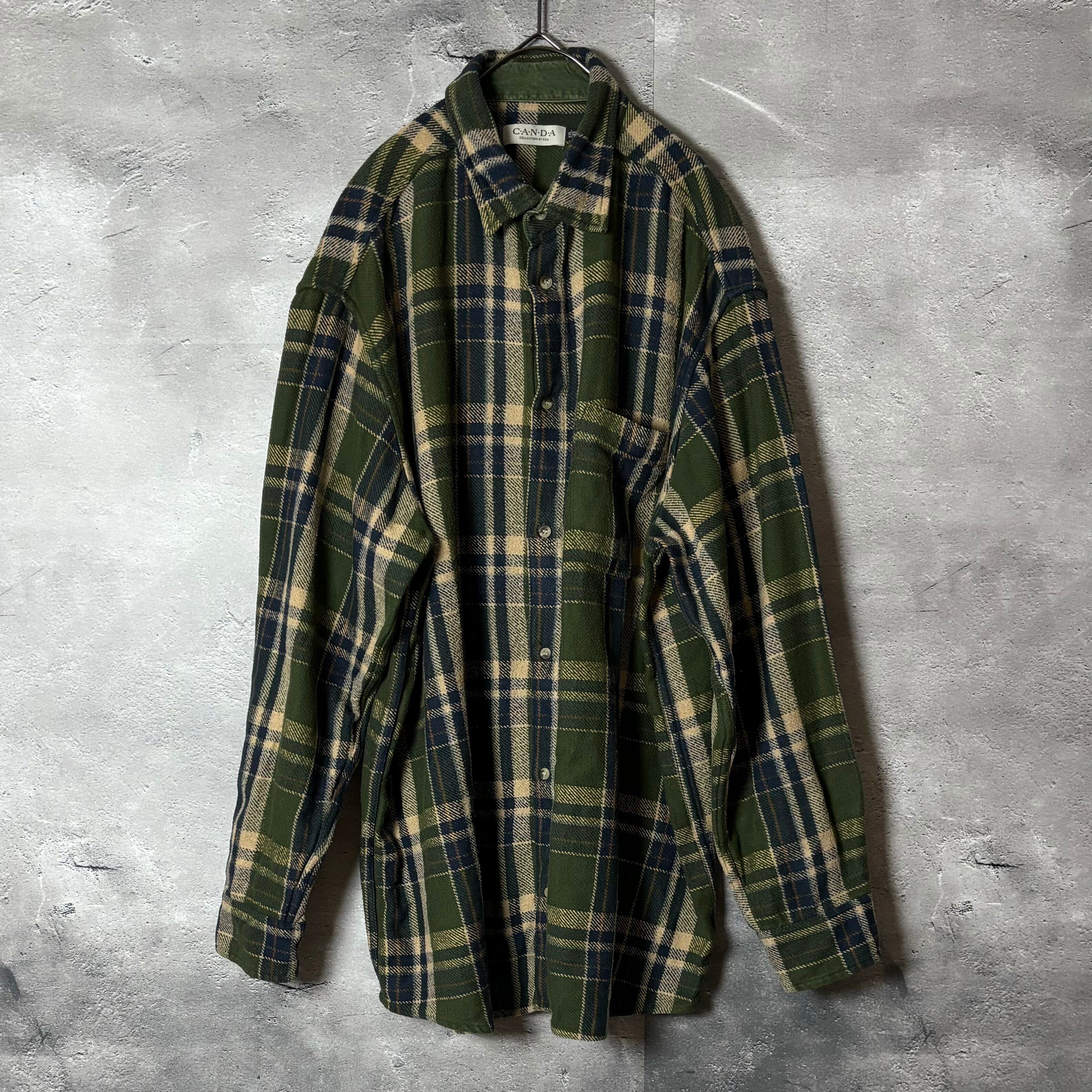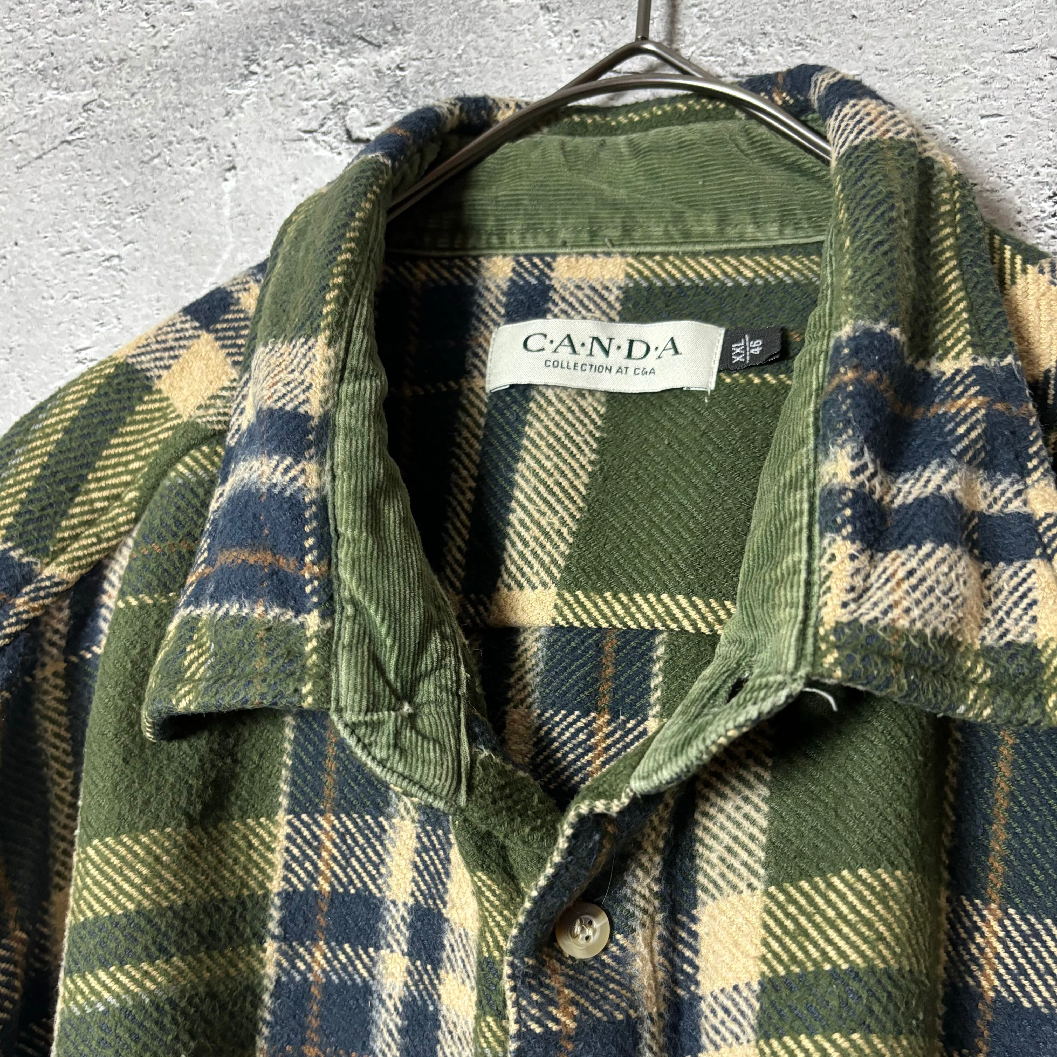 C&A, ヴィンテージ, 長袖, チェック柄, XXL, グリーン, コットン, カジュアル, アウトドア, バイク, ツーリング