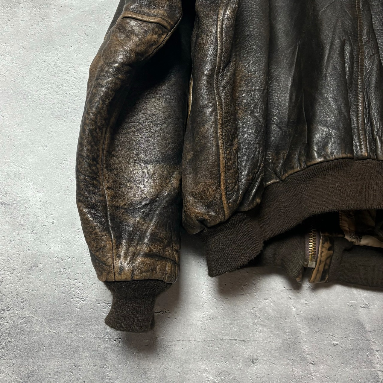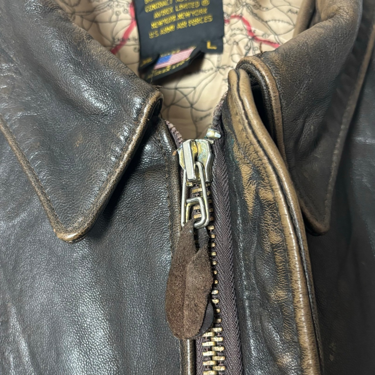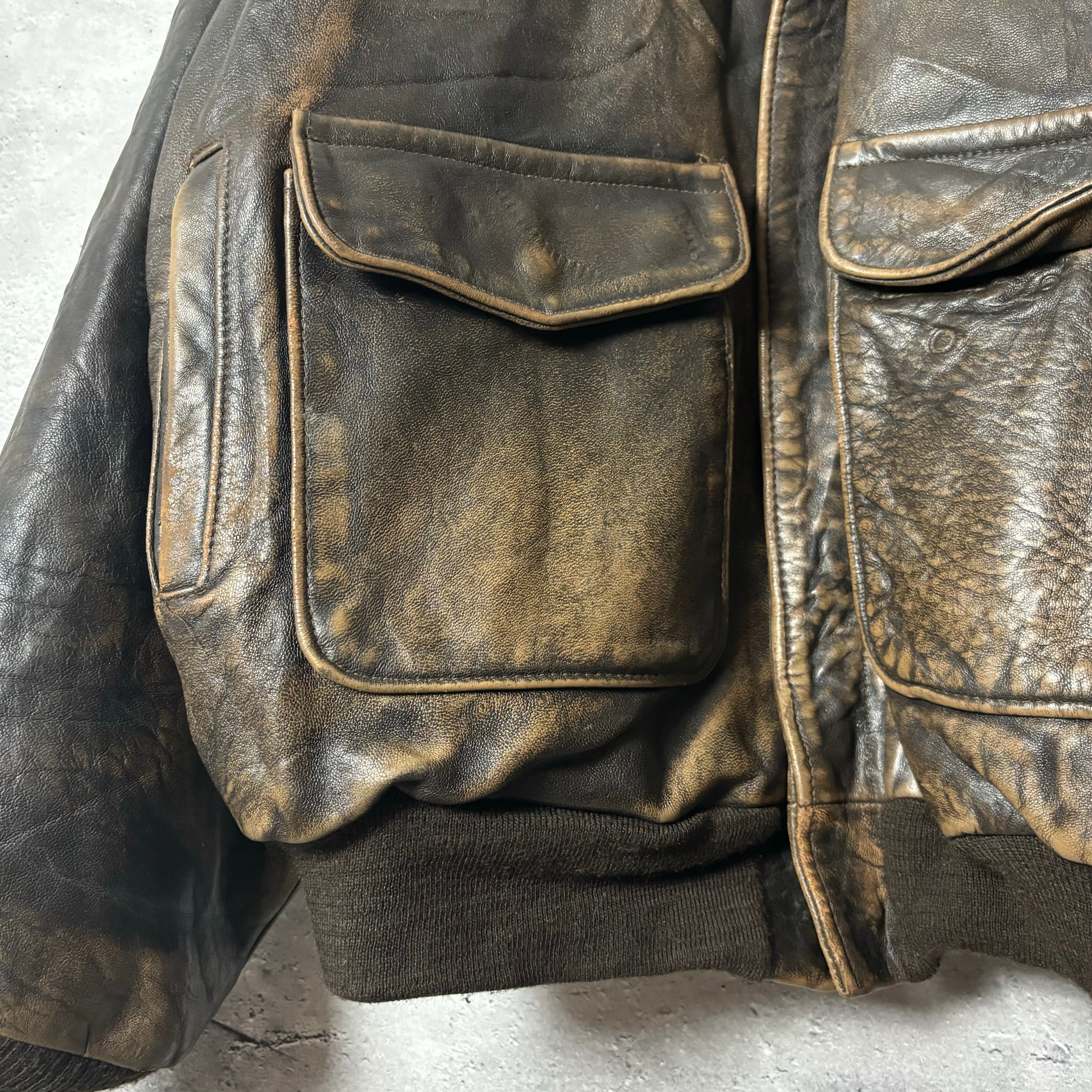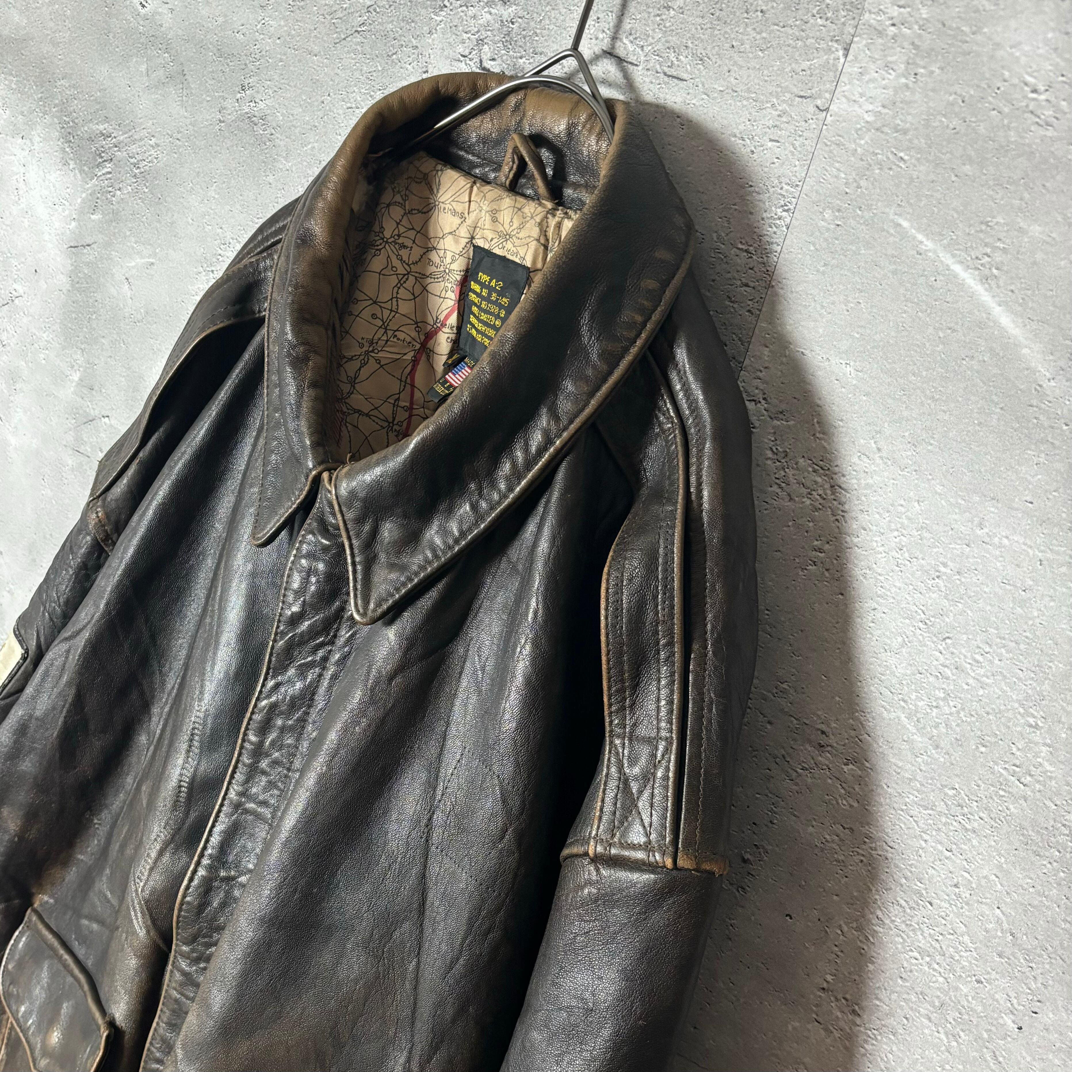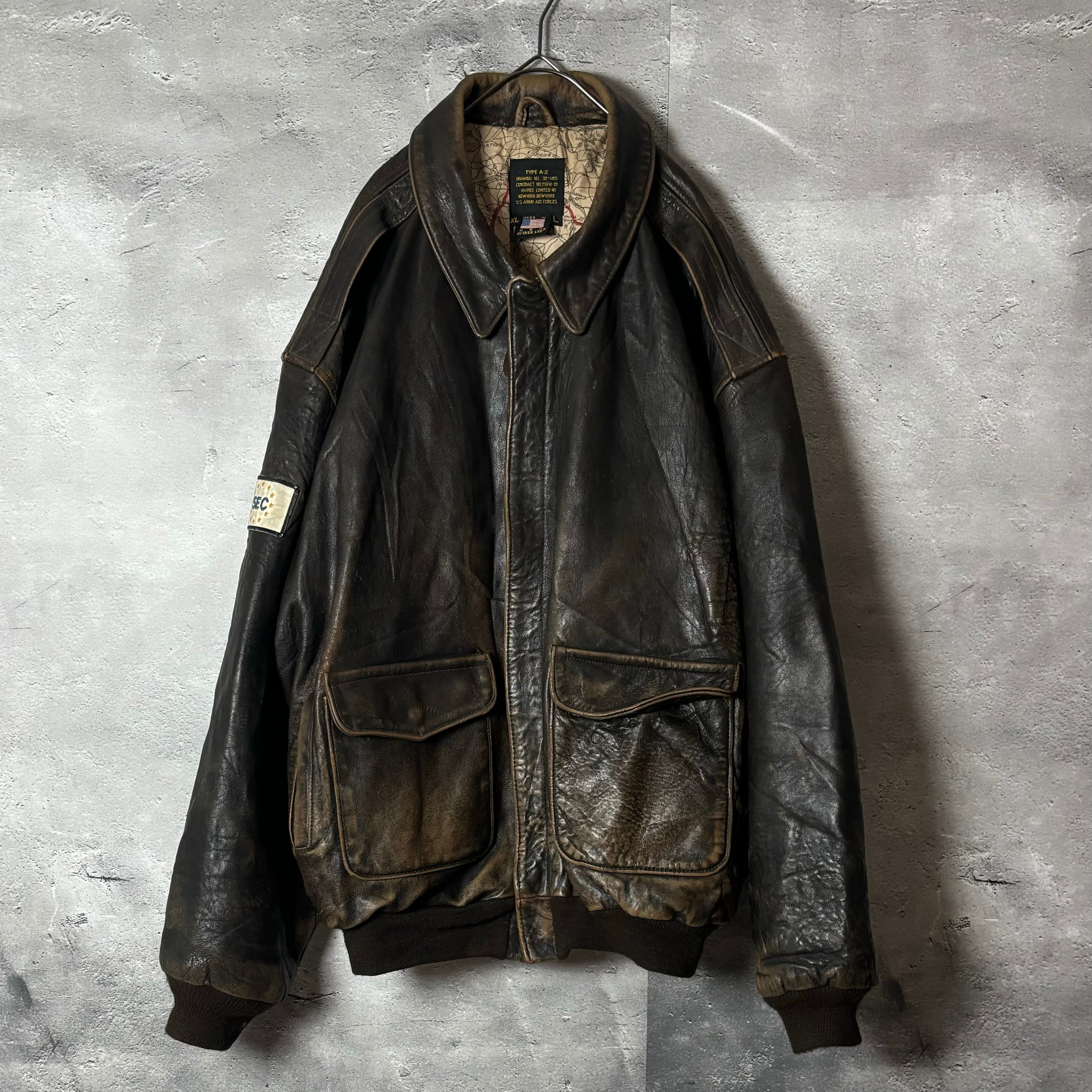 AVIREX, A-2, レザージャケット, ミリタリー, ヴィンテージ, 長袖, XLサイズ, バイク, メンズファッション, アメリカンカジュアル, 秋冬アウター, 地図柄, ジッパー付き, 裏地破れ