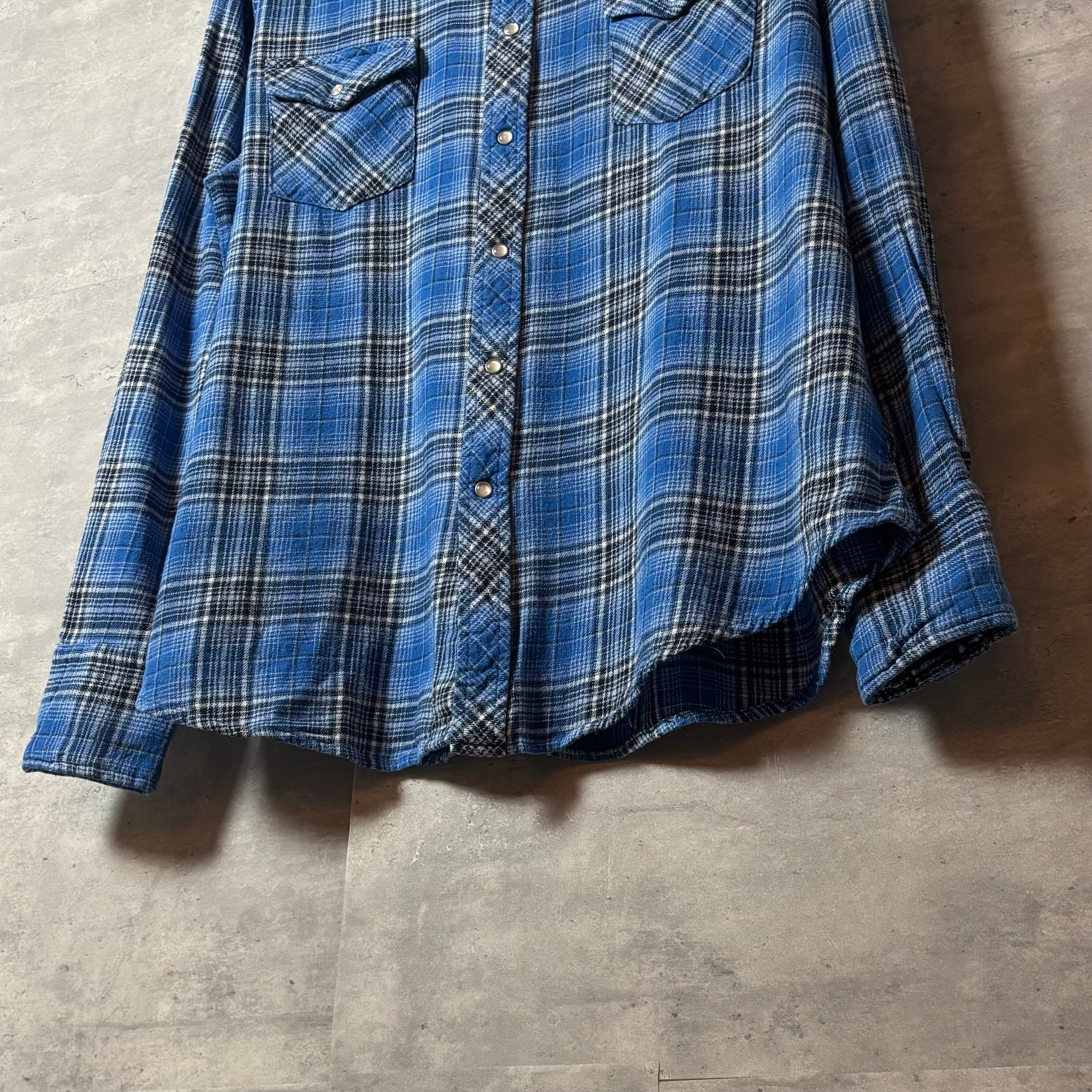 Wrangler チェック柄 ウエスタンシャツ XL 青系