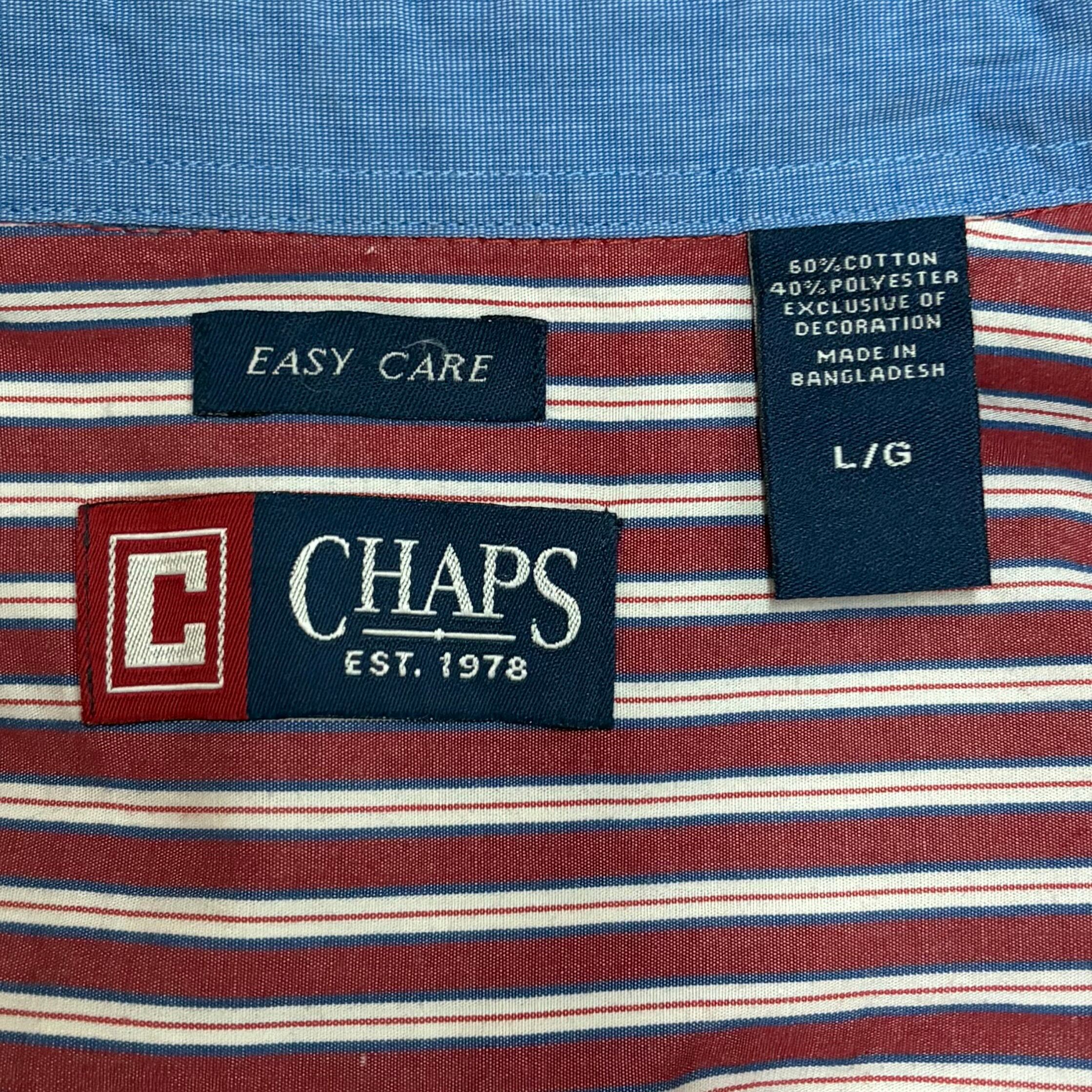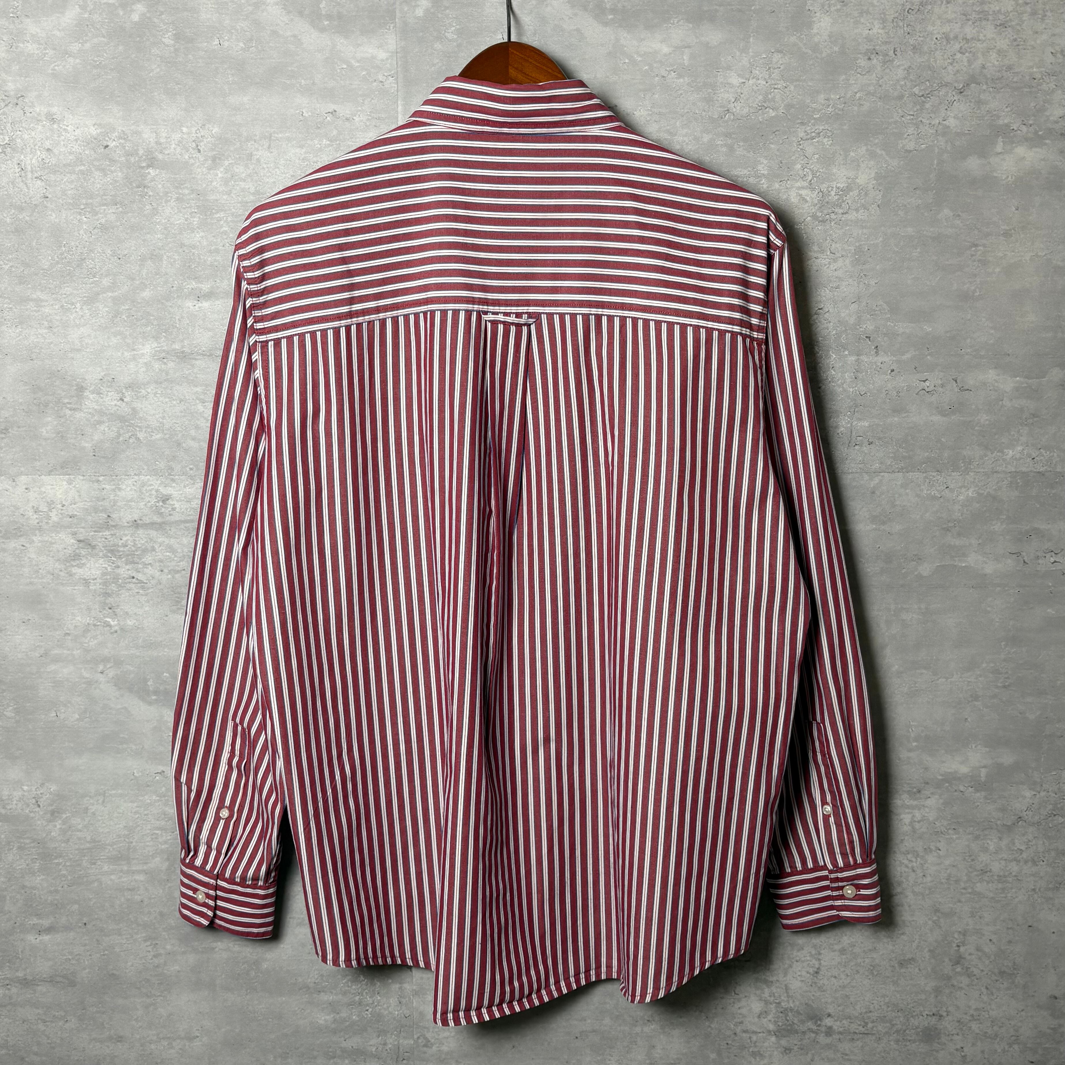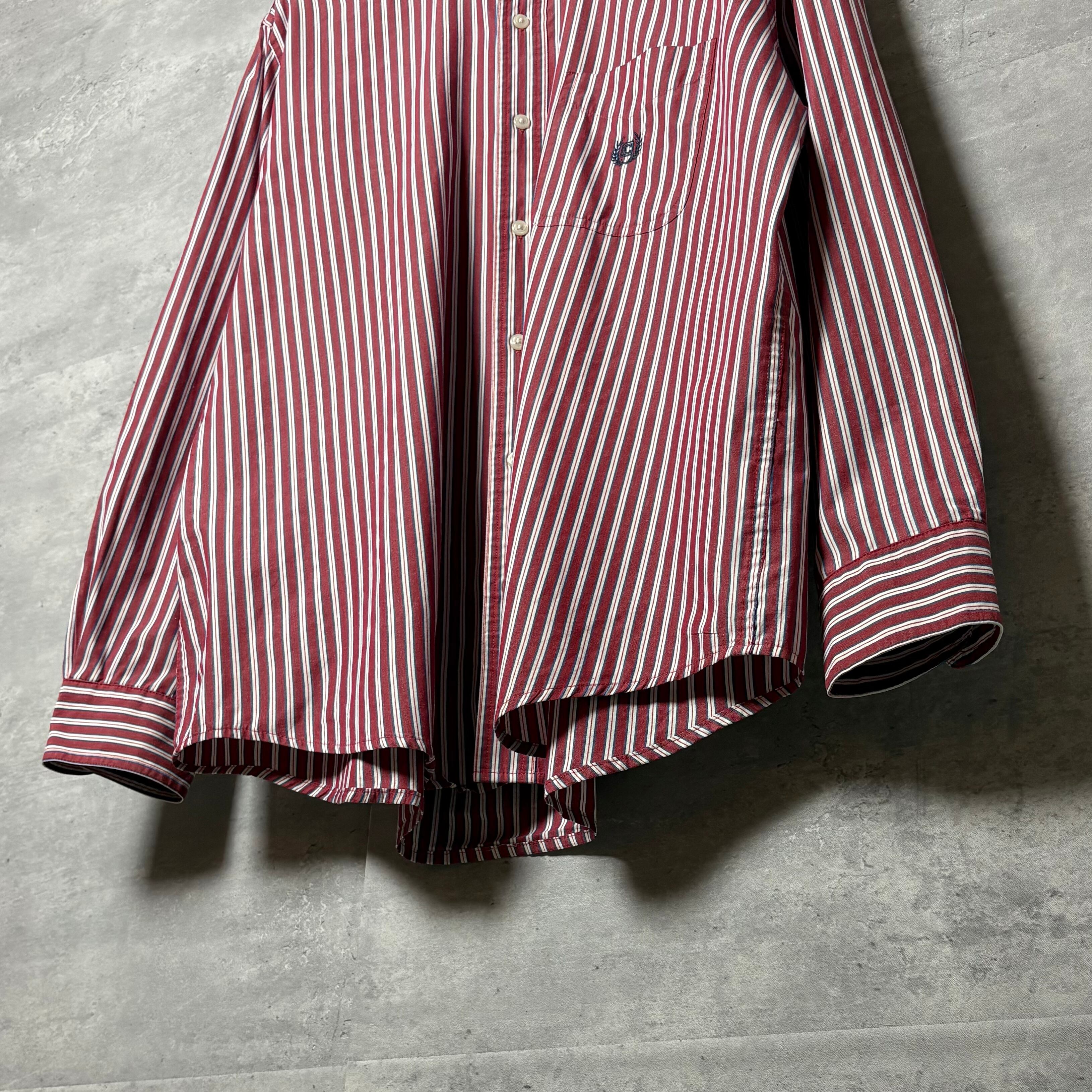 Chaps ボタンダウンシャツ ストライプ柄 長袖 レッド×ホワイト L