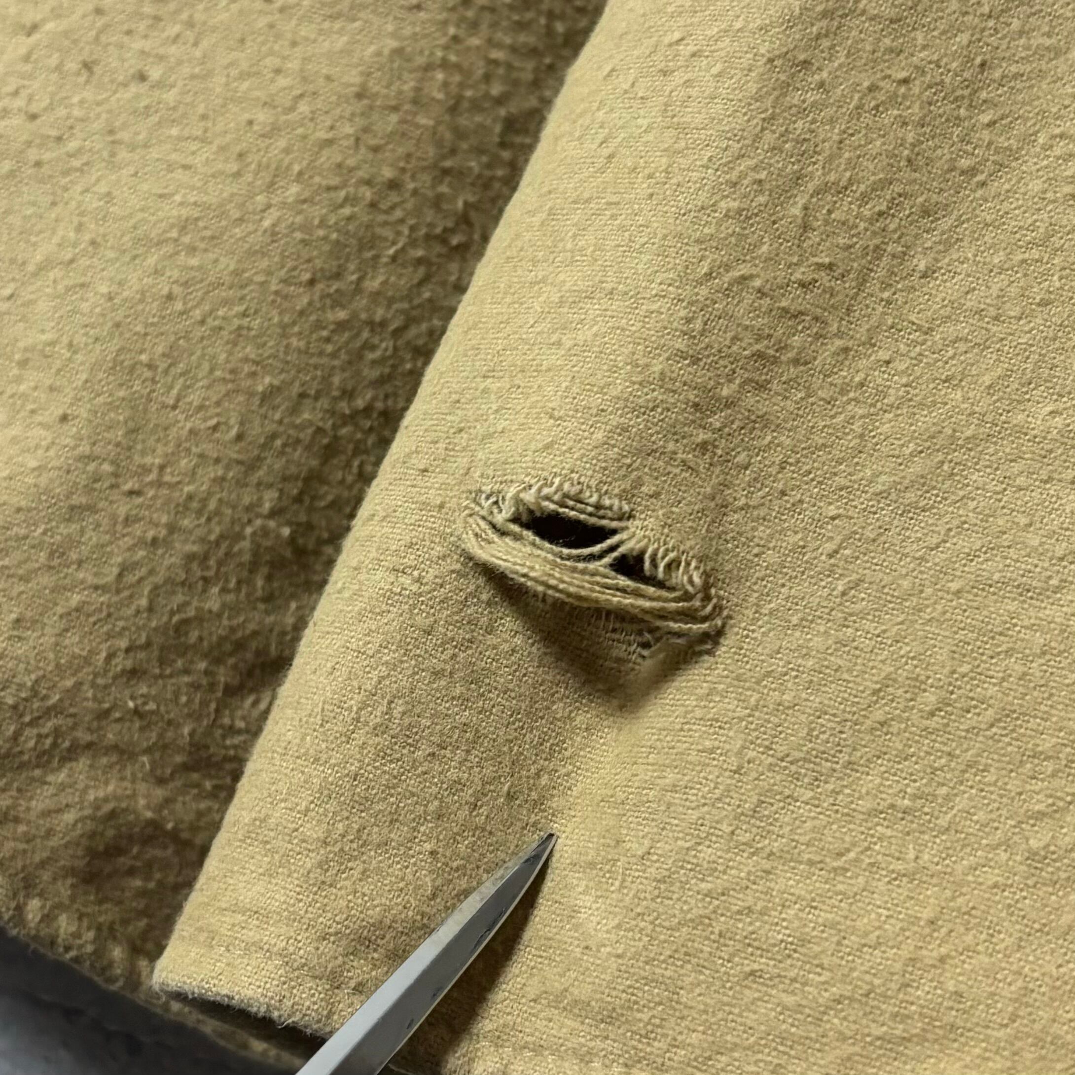 背面裾部分に破れがございます(写真参照)。その他目立つダメージや汚れはなく、古着特有の使用感があります。ヴィンテージ品の特性をご理解の上でご検討ください。