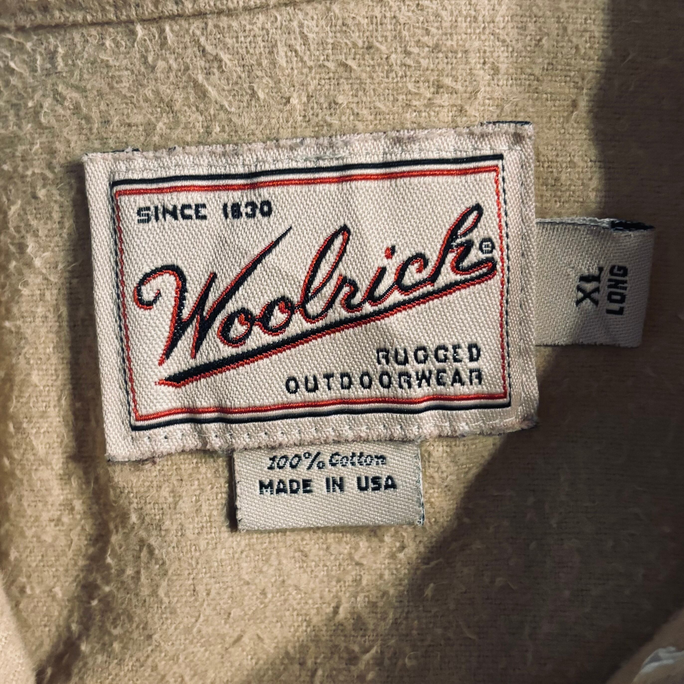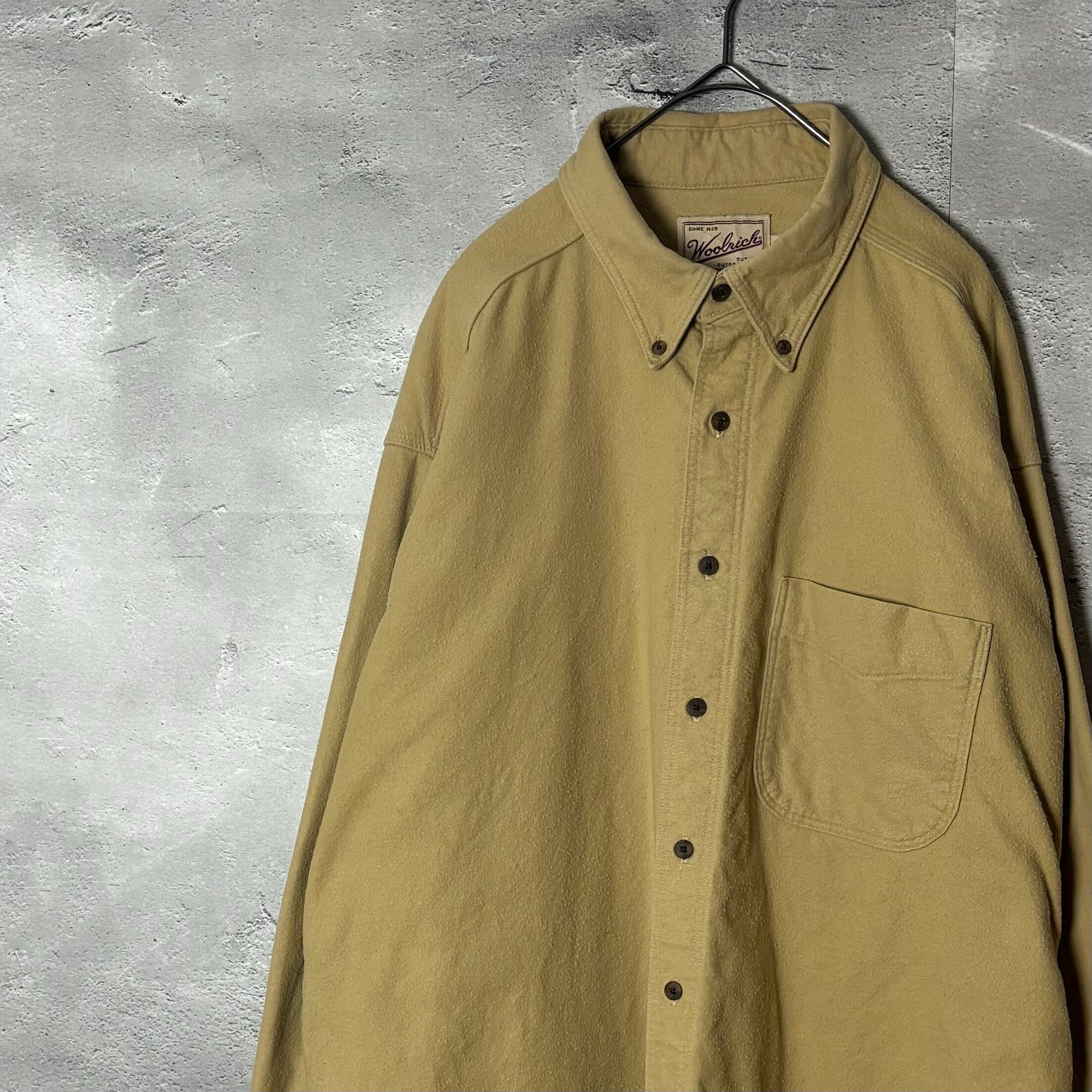 90s, ヴィンテージ, Woolrich, USA製, 起毛コットンシャツ, 厚手シャツ, ベージュ, メンズXLサイズ, アウトドア, 秋冬向け, 古着, ユーズド