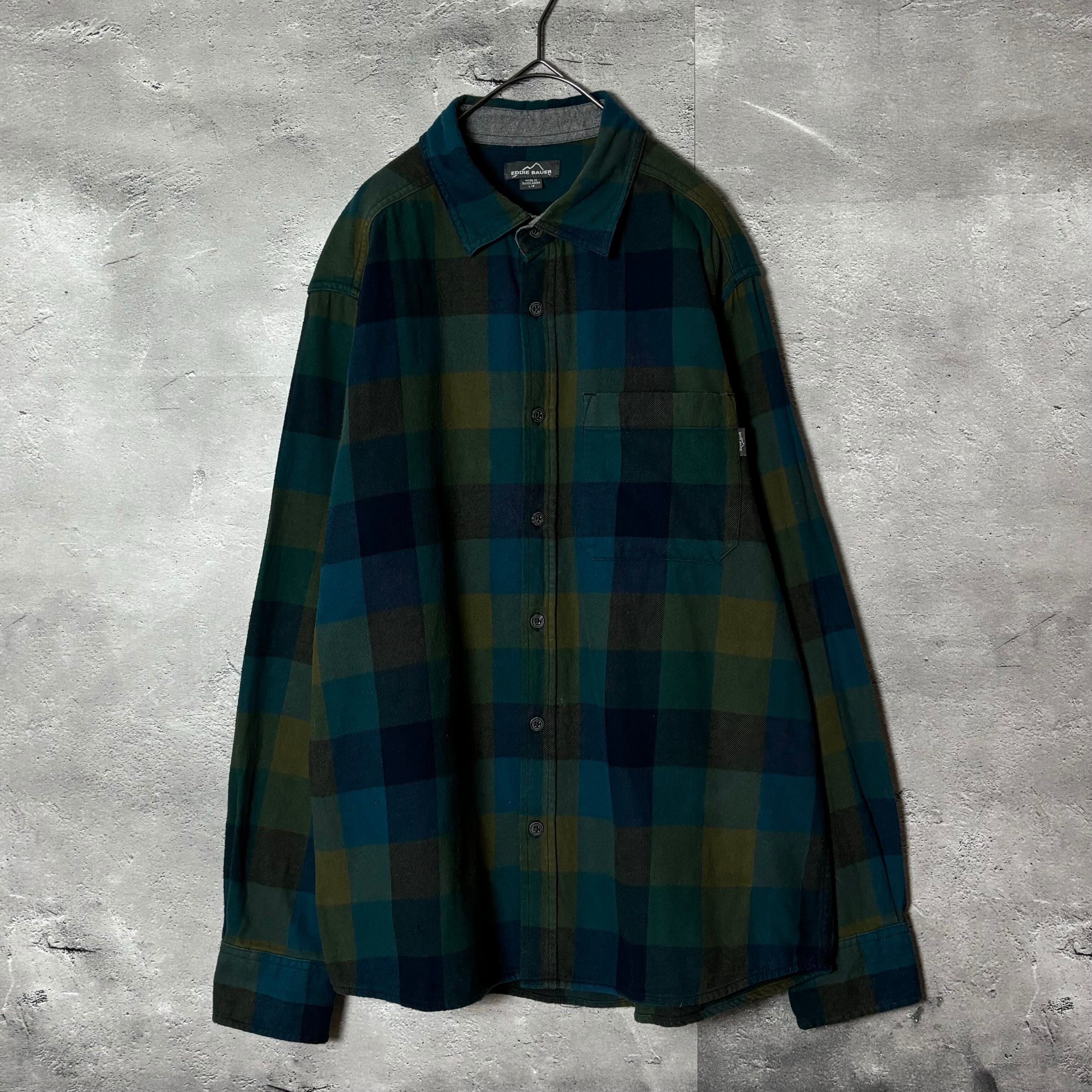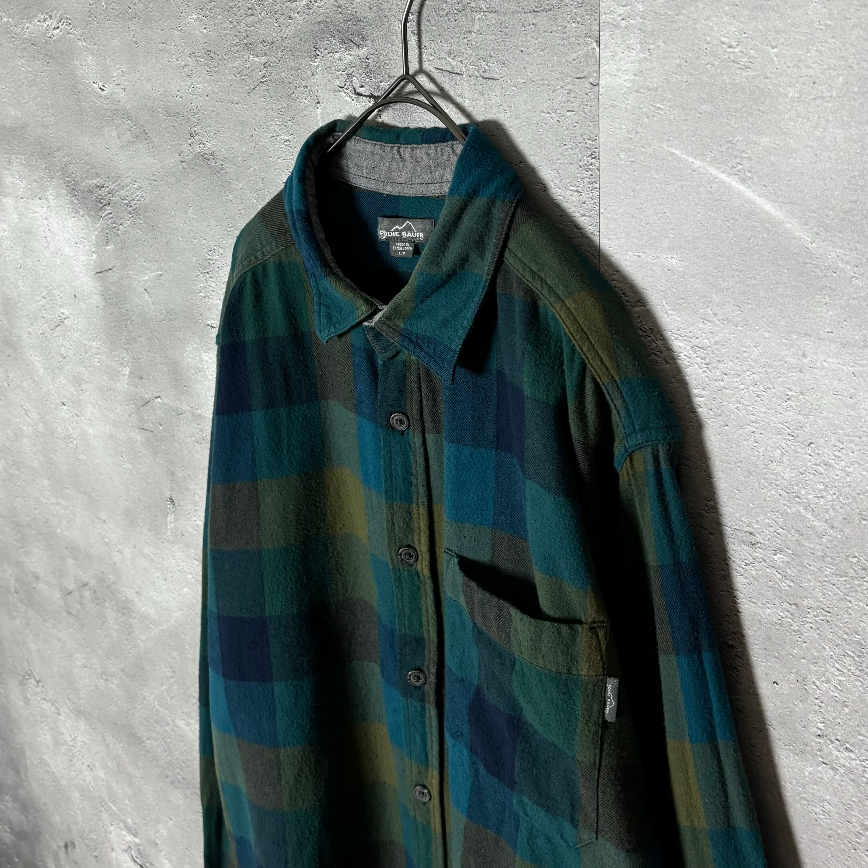 Eddie Bauer ネルシャツ チェック グリーン×ネイビー L