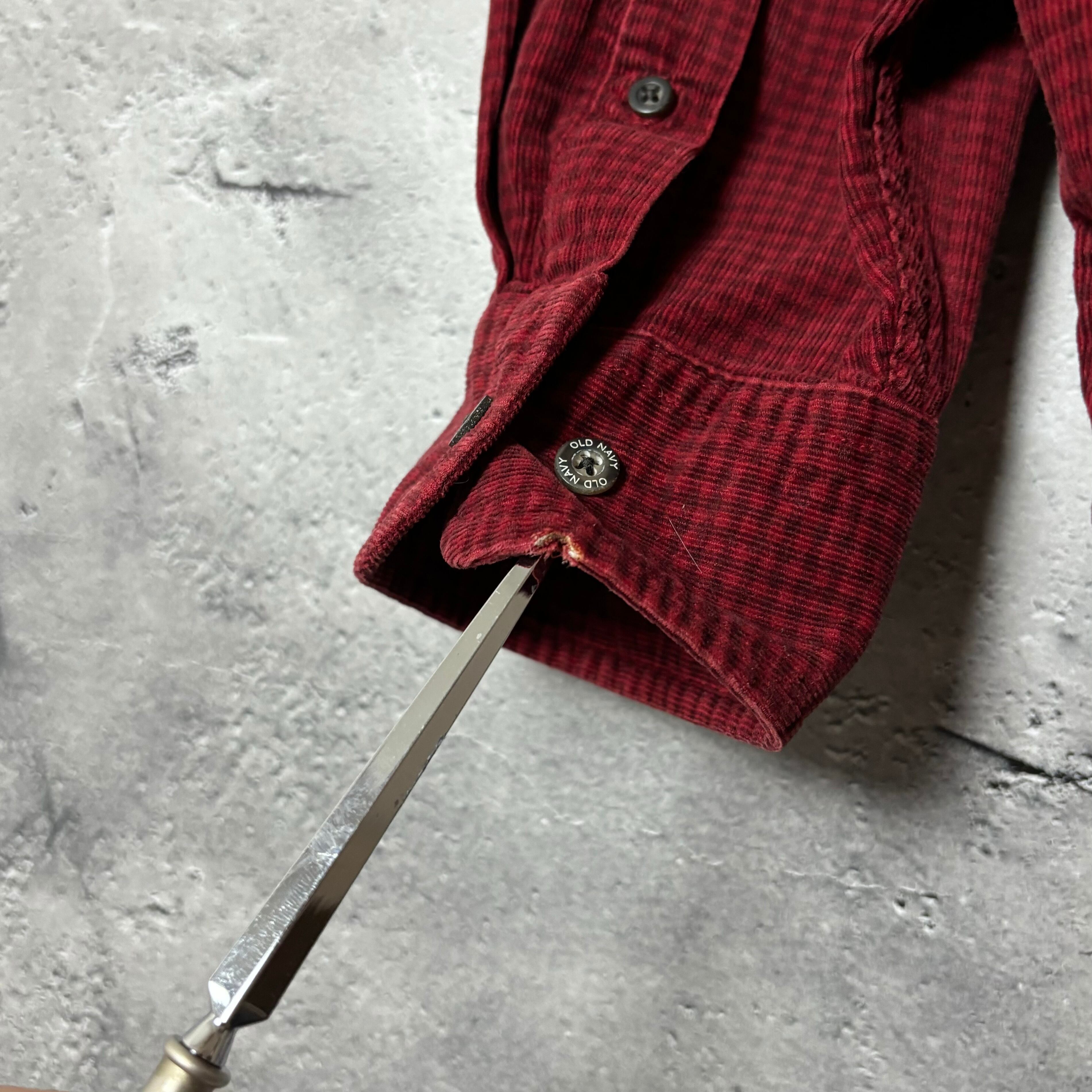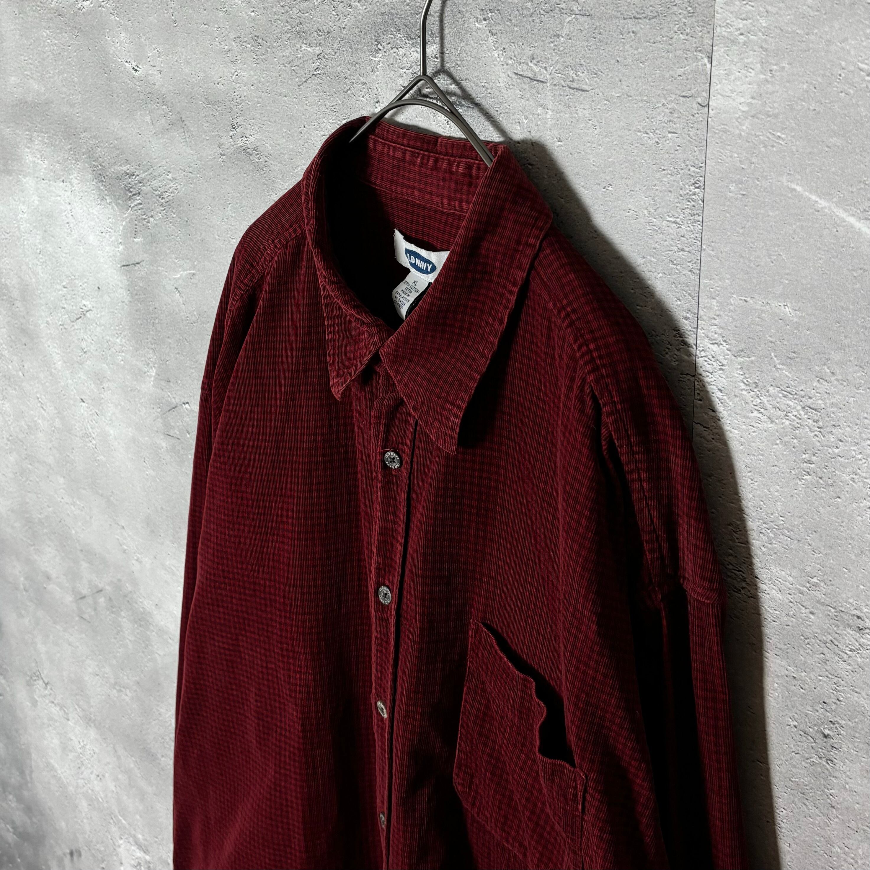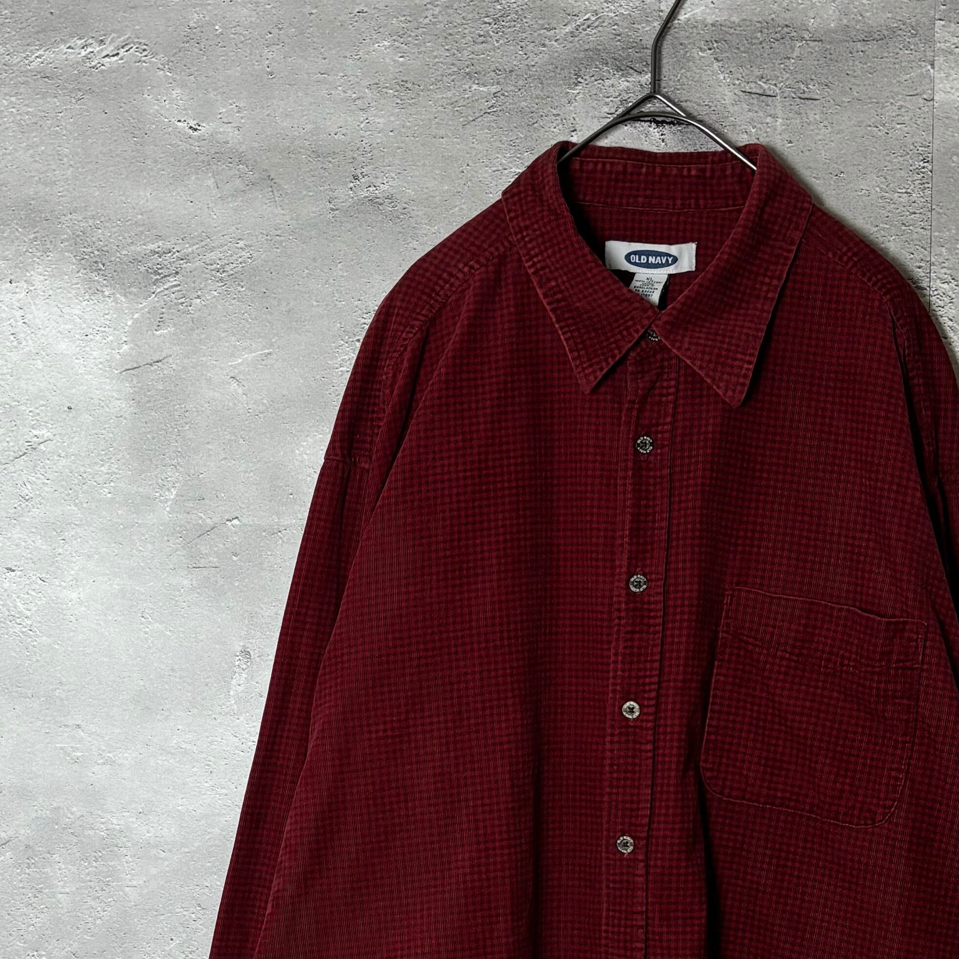 OLD NAVY コーデュロイシャツ 細チェック 赤 XL