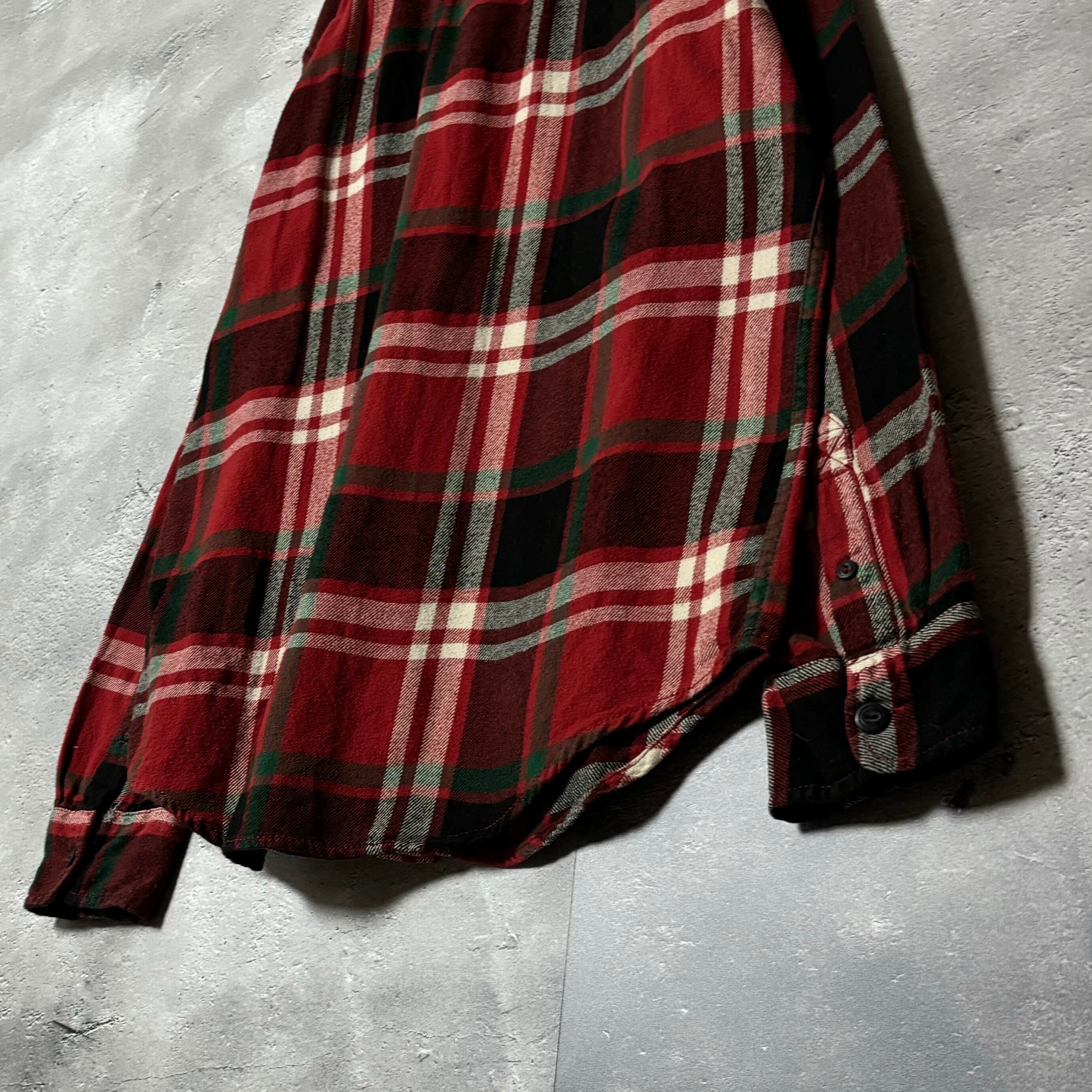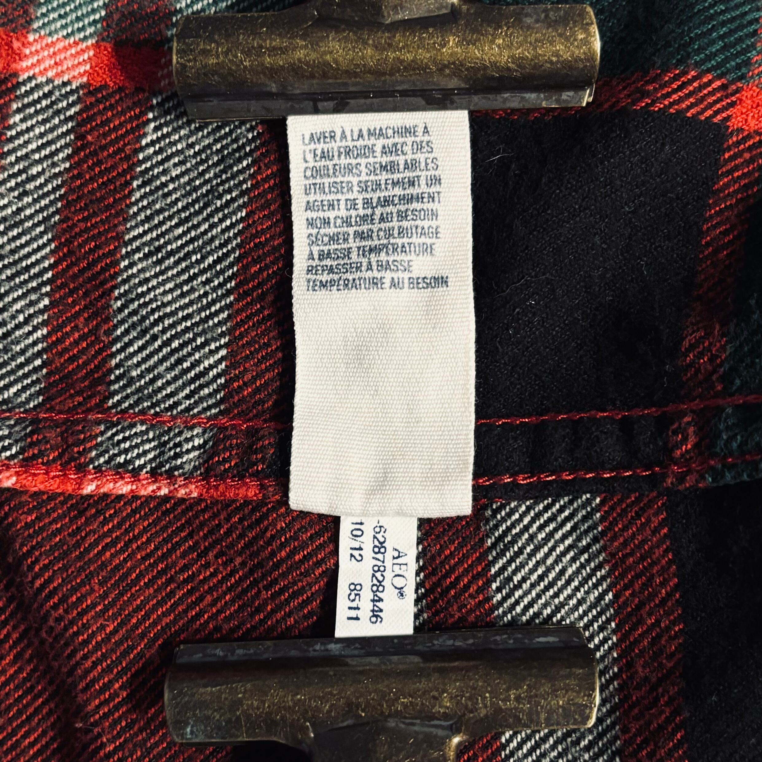 American Eagleのクラシックチェックネルシャツは、秋冬にぴったりの柔らかい着心地が魅力です。レッドを基調としたチェック柄がコーディネートのアクセントとなり、カジュアルなスタイルやアウトドアシーンにも活躍します。タグ表記はSサイズですが、実寸を基にサイズ感をご確認ください。