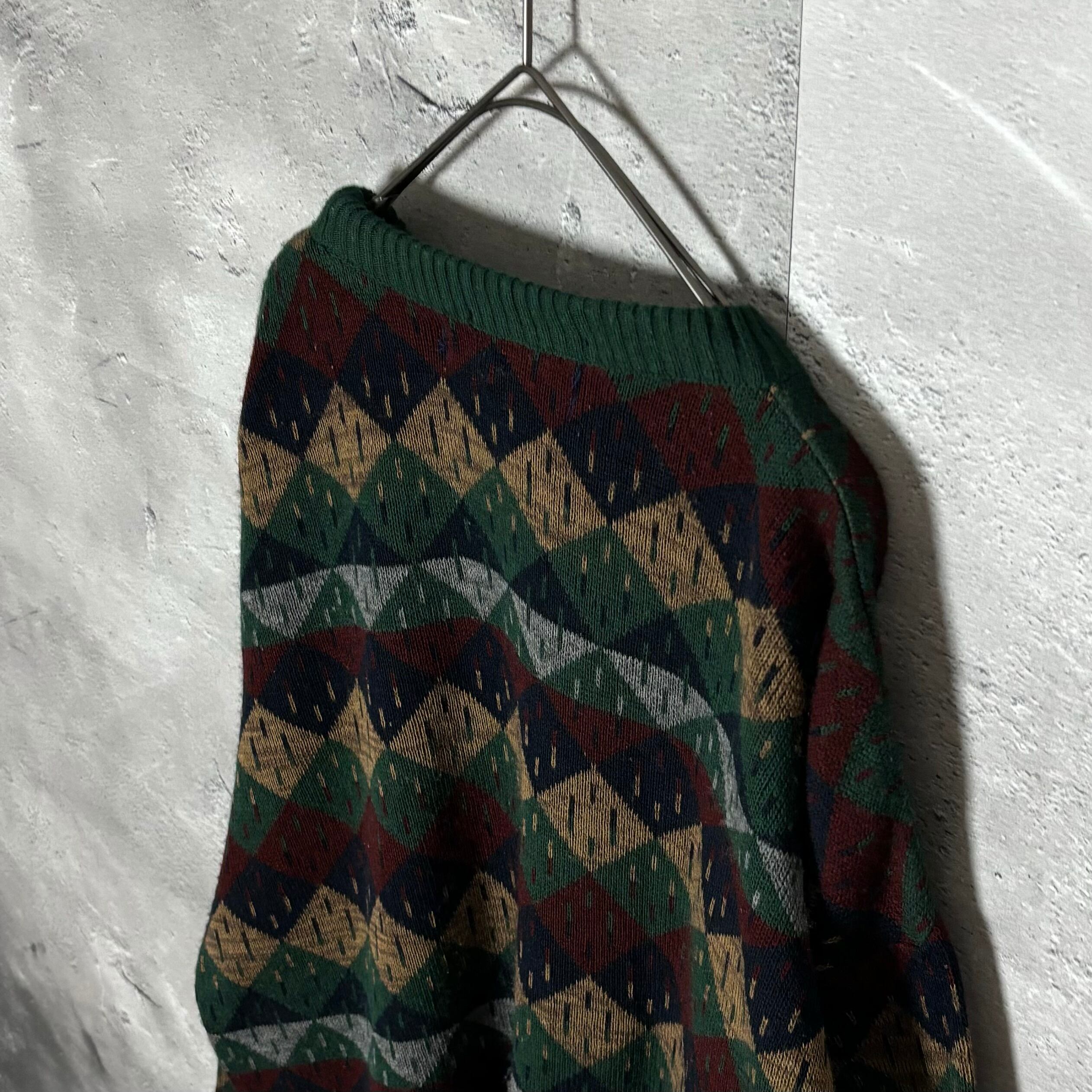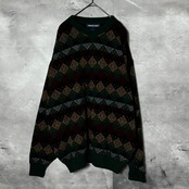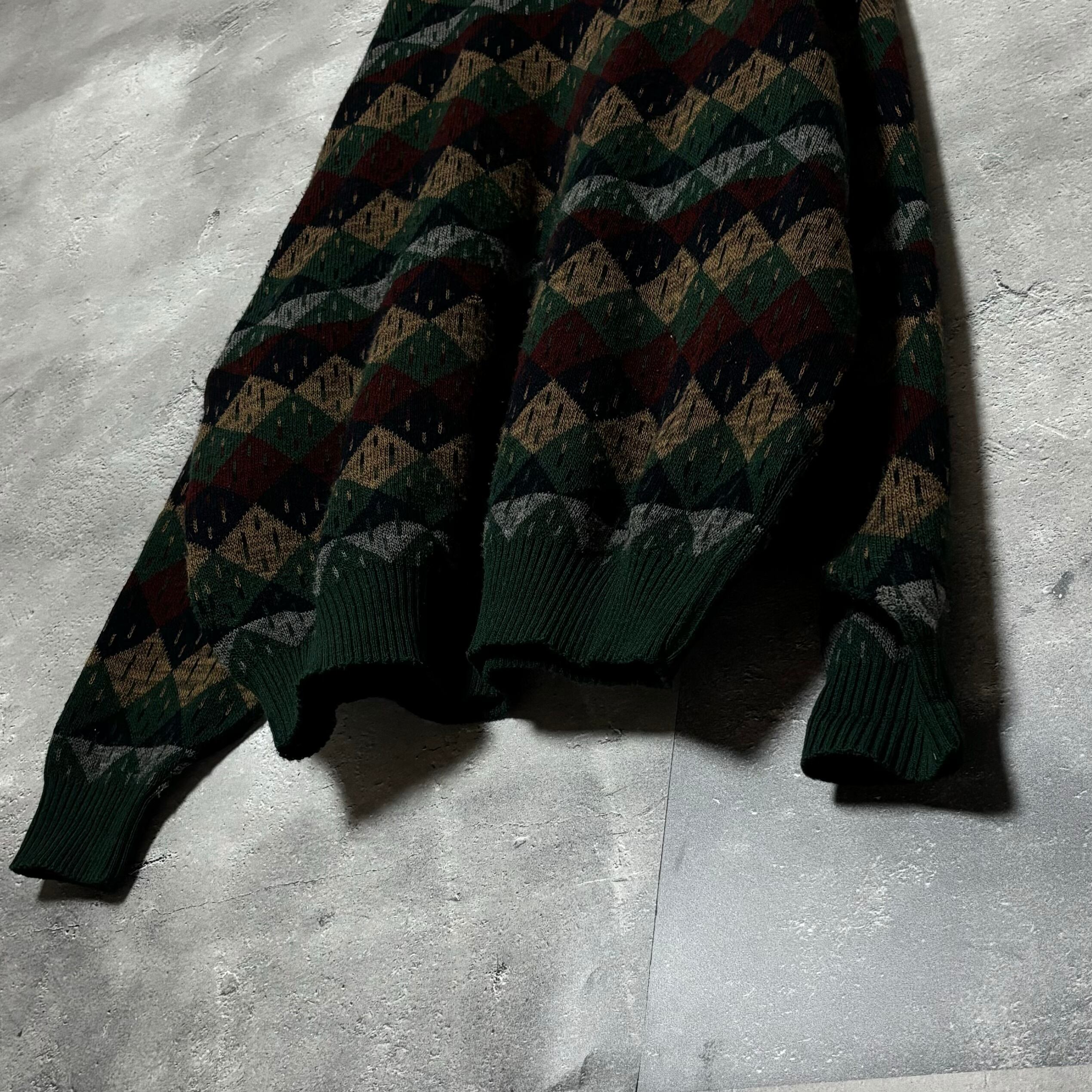 VAN HEUSEN アーガイル柄 クルーネックニット グリーン XL